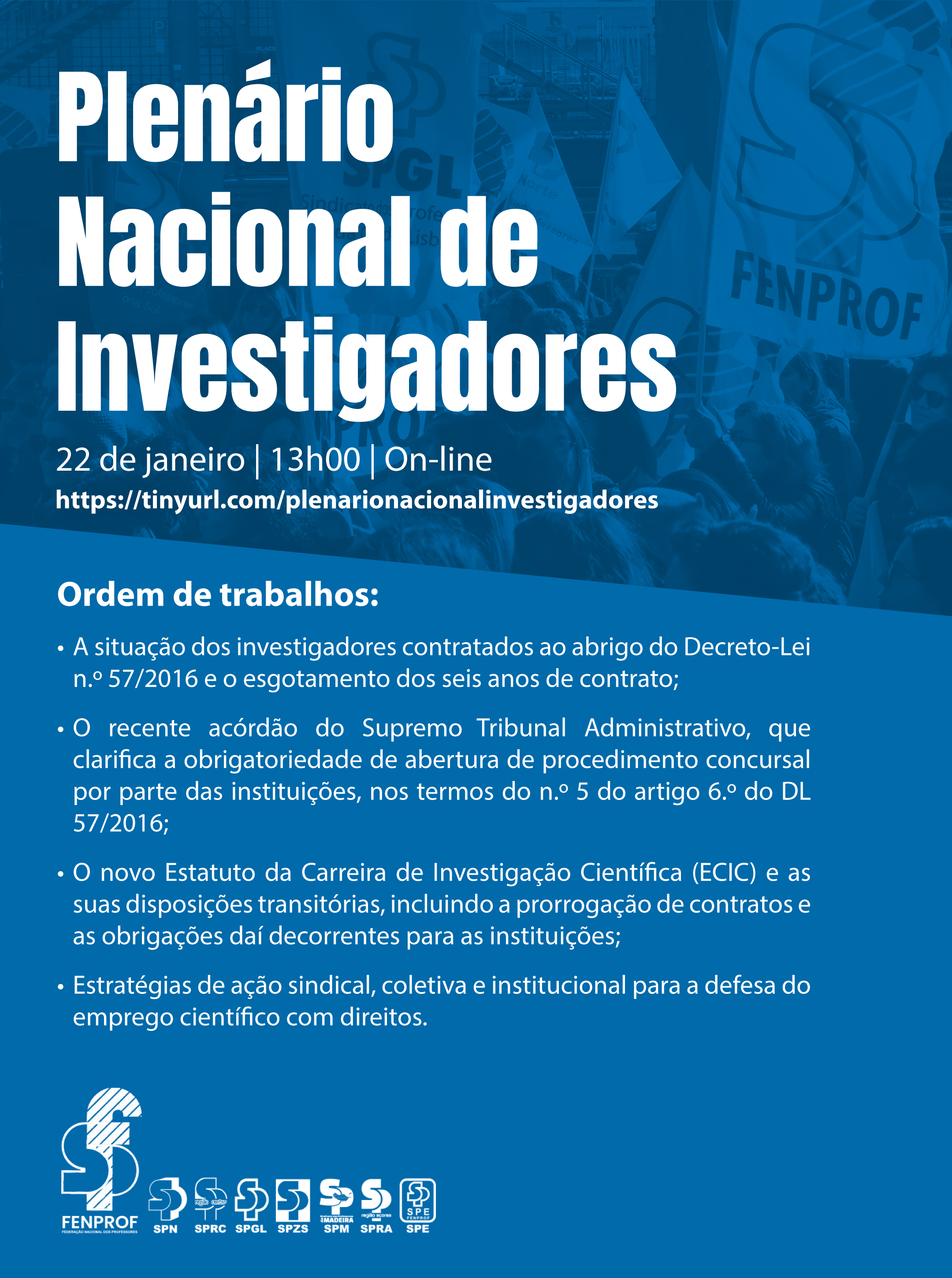 Vê aqui como aceder ao plenário nacional online de investigadores, agendado para esta quinta-feira às 13 horas e participa!