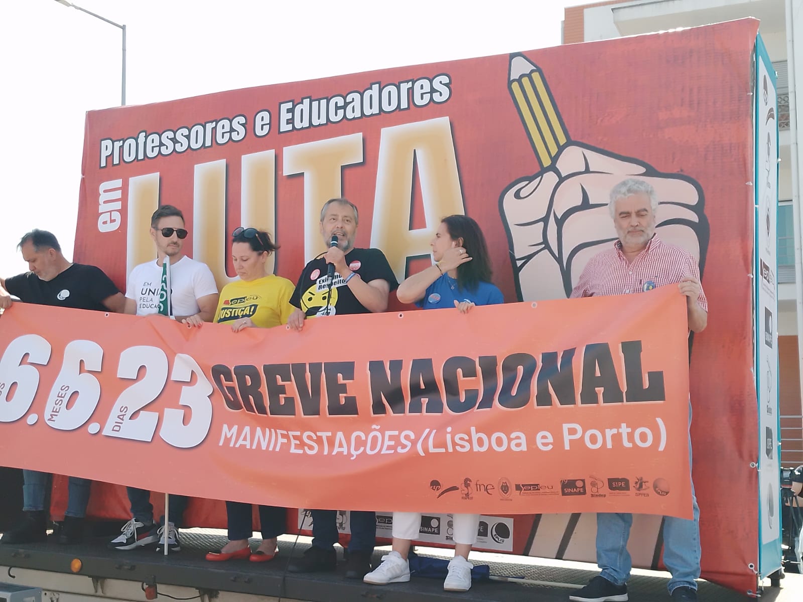 A primeira paragem da manhã foi na Escola Secundária de Santa Comba Dão, onde Mário Nogueira fez um balanço dos primeiros três dias desta viagem que leva a luta dos professores de Norte a Sul do país e culminará a 6 de junho (6/6/23) com uma grande greve nacional e duas manifestações no Porto e em Lisboa.
