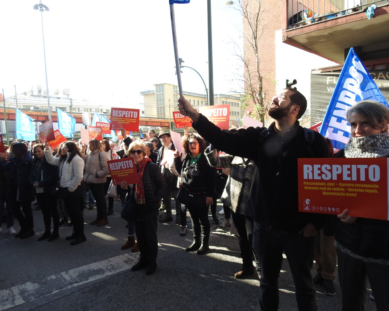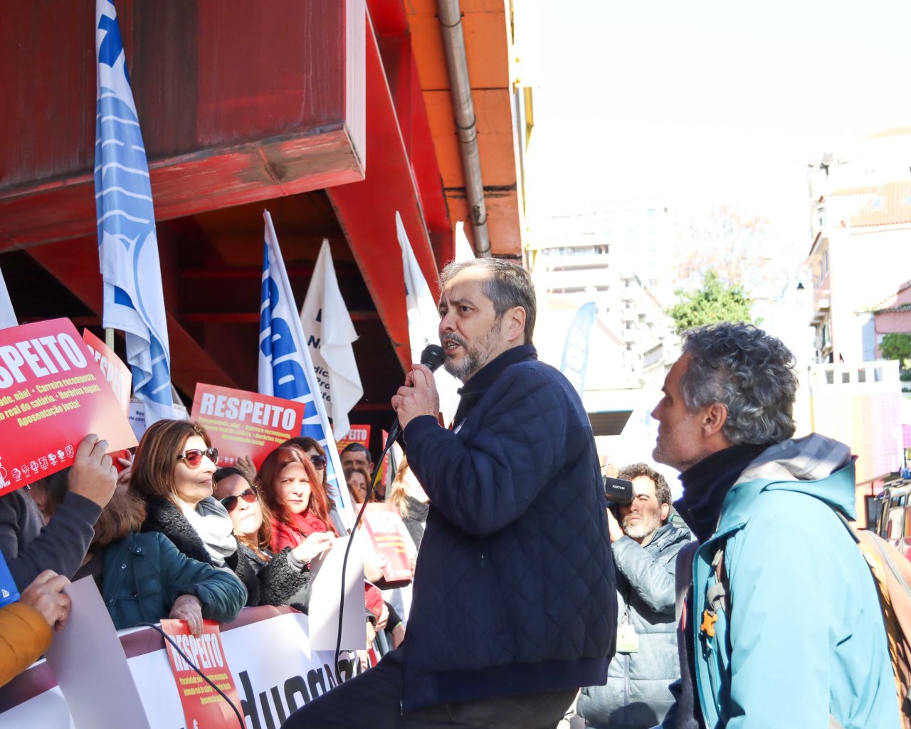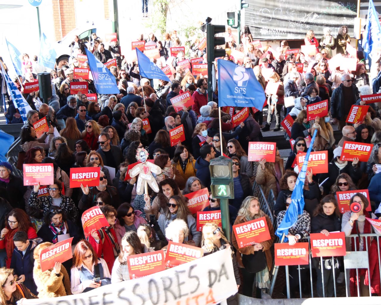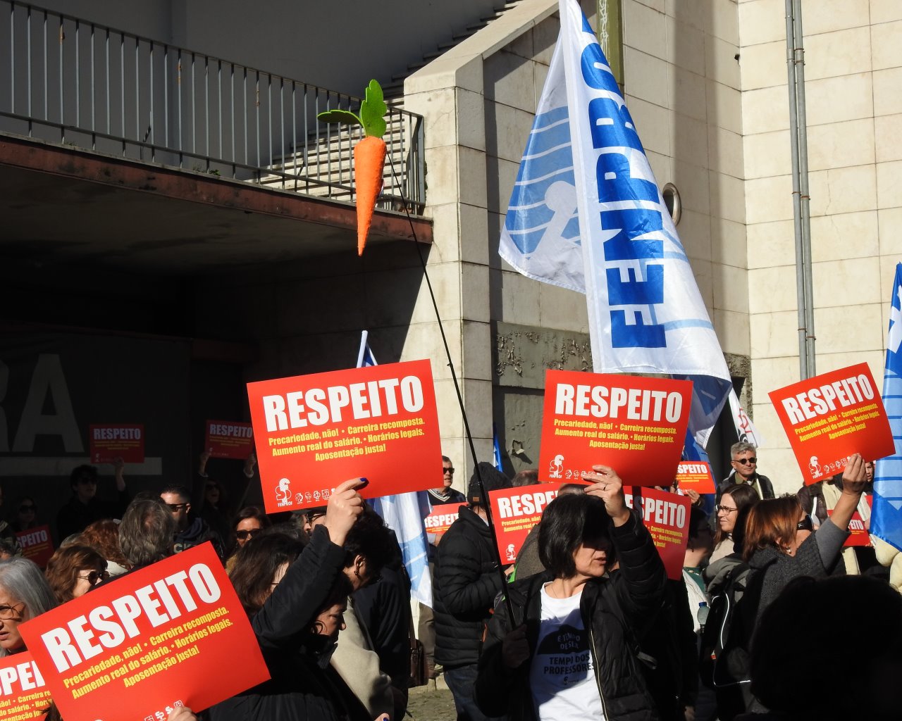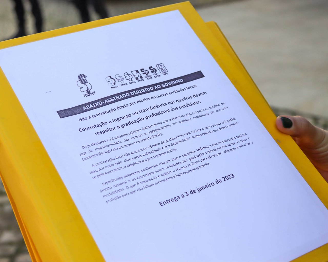 No primeiro dia de aulas do segundo período do ano letivo 2022/23, a FENPROF entregou no Ministério da Educação 45 mil assinaturas de professores e educadores contra a contratação direta por diretores ou outras entidades locais. Cá fora, na avenida Infante Santo, cerca de um milhar de professores e educadores exigiram respeito. Respeito pela carreira. Respeito pelos horários e condições de trabalho. Respeito pelo tempo de serviço prestado. Respeito pelos alunos. Respeito pela Escola Pública.