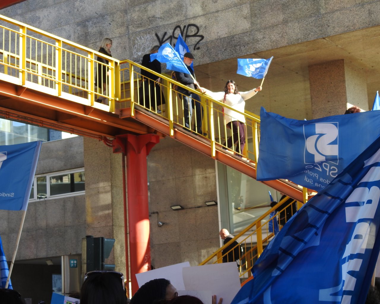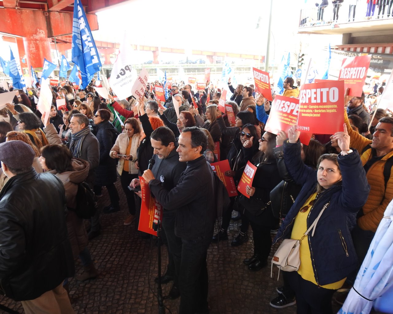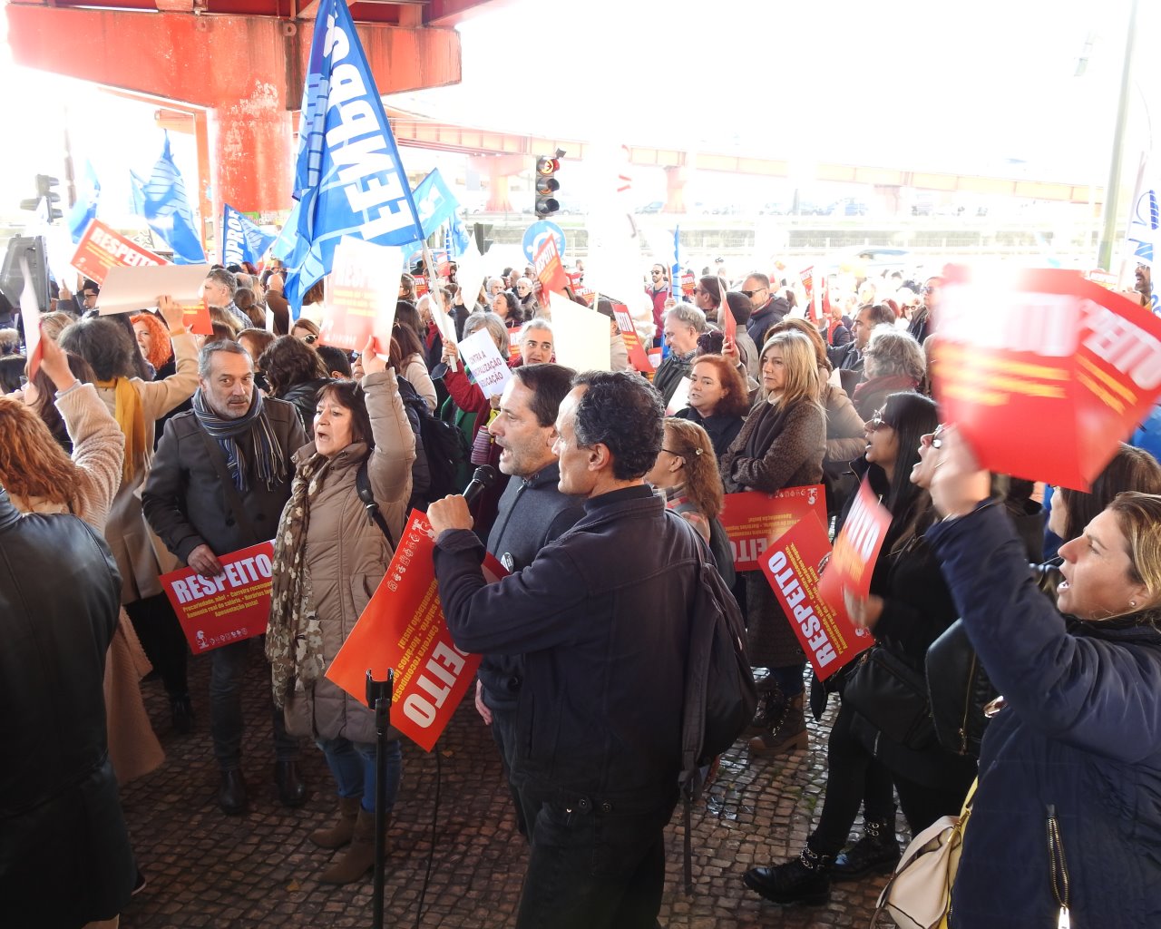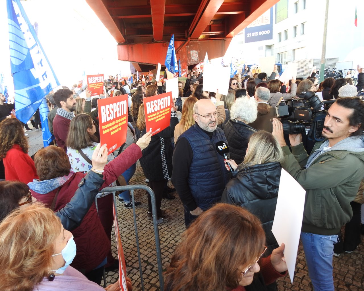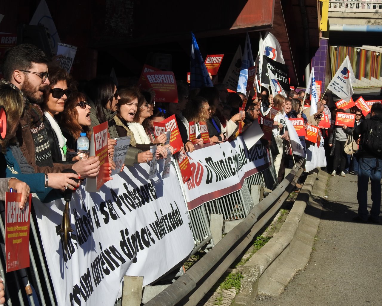 No primeiro dia de aulas do segundo período do ano letivo 2022/23, a FENPROF entregou no Ministério da Educação 45 mil assinaturas de professores e educadores contra a contratação direta por diretores ou outras entidades locais. Cá fora, na avenida Infante Santo, cerca de um milhar de professores e educadores exigiram respeito. Respeito pela carreira. Respeito pelos horários e condições de trabalho. Respeito pelo tempo de serviço prestado. Respeito pelos alunos. Respeito pela Escola Pública.