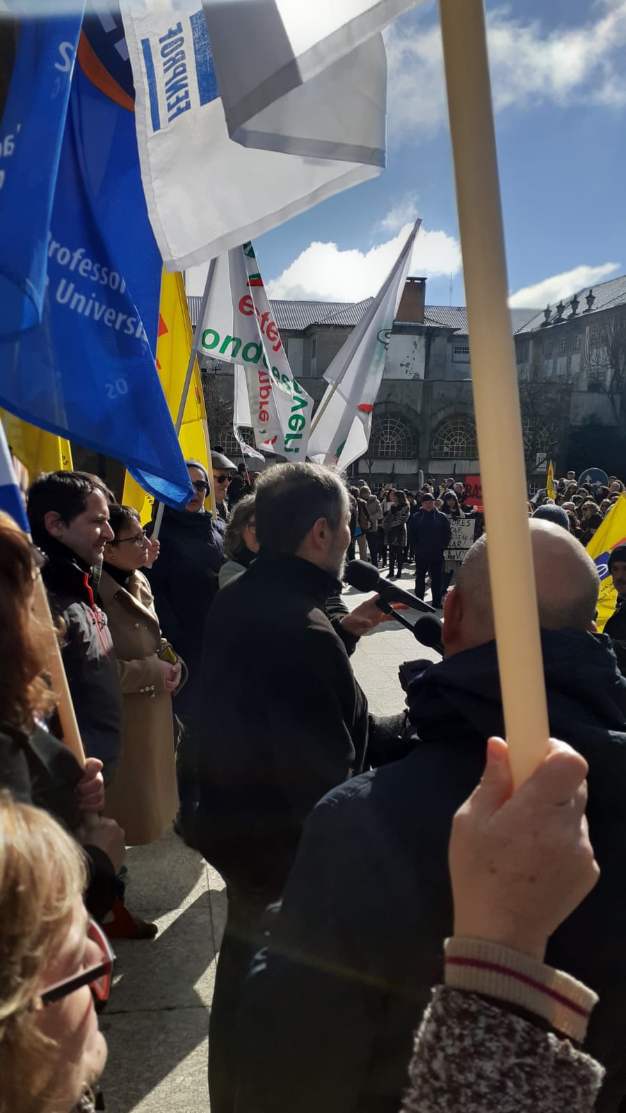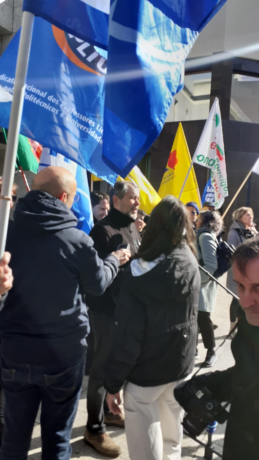 Mário Nogueira, Secretário-geral da FENPROF, representou a FENPROF e, para além de assinalar a importância que a FENPROF tem tido neste processo de luta e negocial, intervindo em todos os planos, reivindicativos e negociais, dirigiu uma forte crítica à cronista da Antela 1, Helena Garrido, que, desprovida de bom senso e de seriedade decidiu acusar a FENPROF pelas dificuldades por que passam os professores e a escola pública, ilibando, dessa forma, sucessivos governos, partidos e outras organizações que têm contribuído para a situação profissional difícil dos docentes e para a desvalorização que tem sido feita da sua profissão e da escola pública.