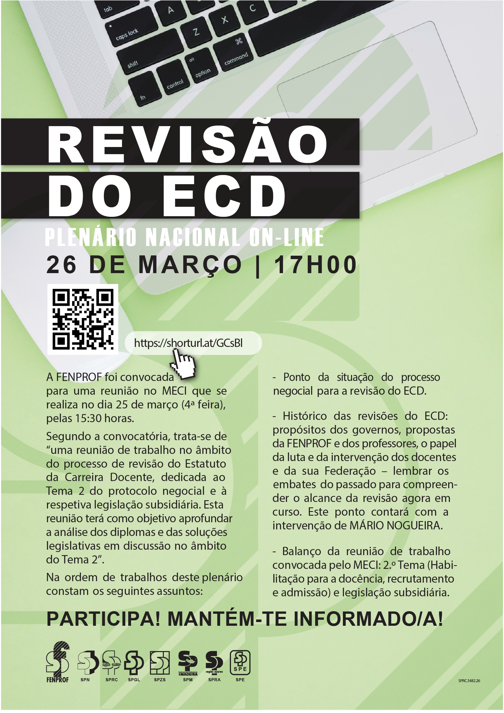 Após a reunião de 25 de março com o Ministério da Educação, Ciência e Inovação (MECI) sobre o tema 2 da revisão do ECD: “Habilitação para a docência, recrutamento e admissão”, a FENPROF irá realizar mais um plenário de esclarecimento aos professores e educadores.