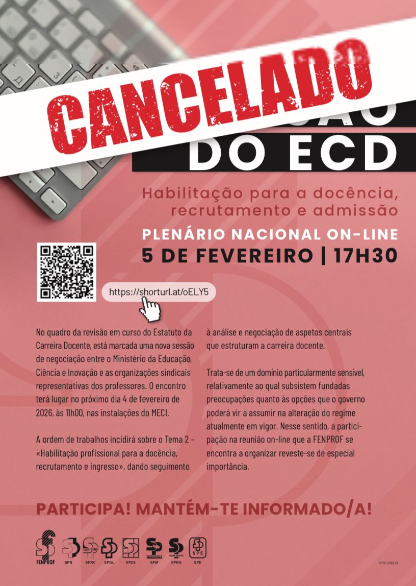 No quadro da revisão em curso do Estatuto da Carreira Docente, está marcada uma nova sessão de negociação entre o Ministério da Educação, Ciência e Inovação e as organizações sindicais representativas dos professores. O encontro terá lugar no próximo dia 4 de fevereiro de 2026, às 11h00, nas instalações do MECI.