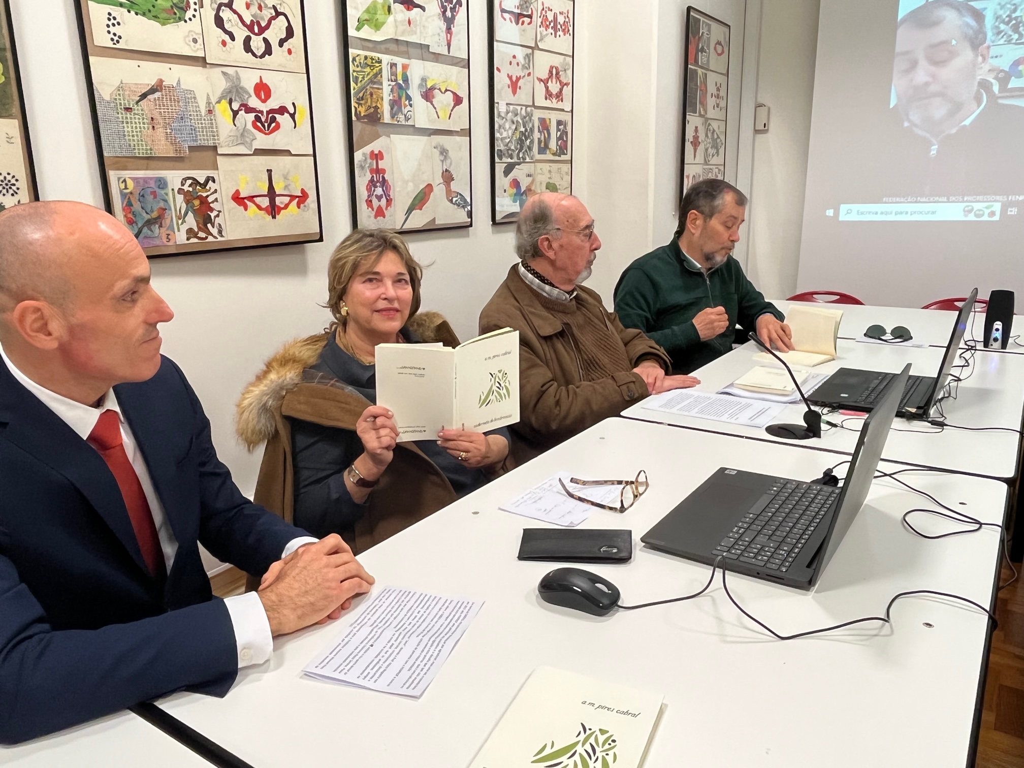 “caderneta de lembranças” de a. m. pires cabral foi a obra premiada do Concurso Literário da FENPROF/SABSEG 2022. A sessão foi realizada com o autor à distância, por dificuldades do próprio em deslocar-se a Lisboa.