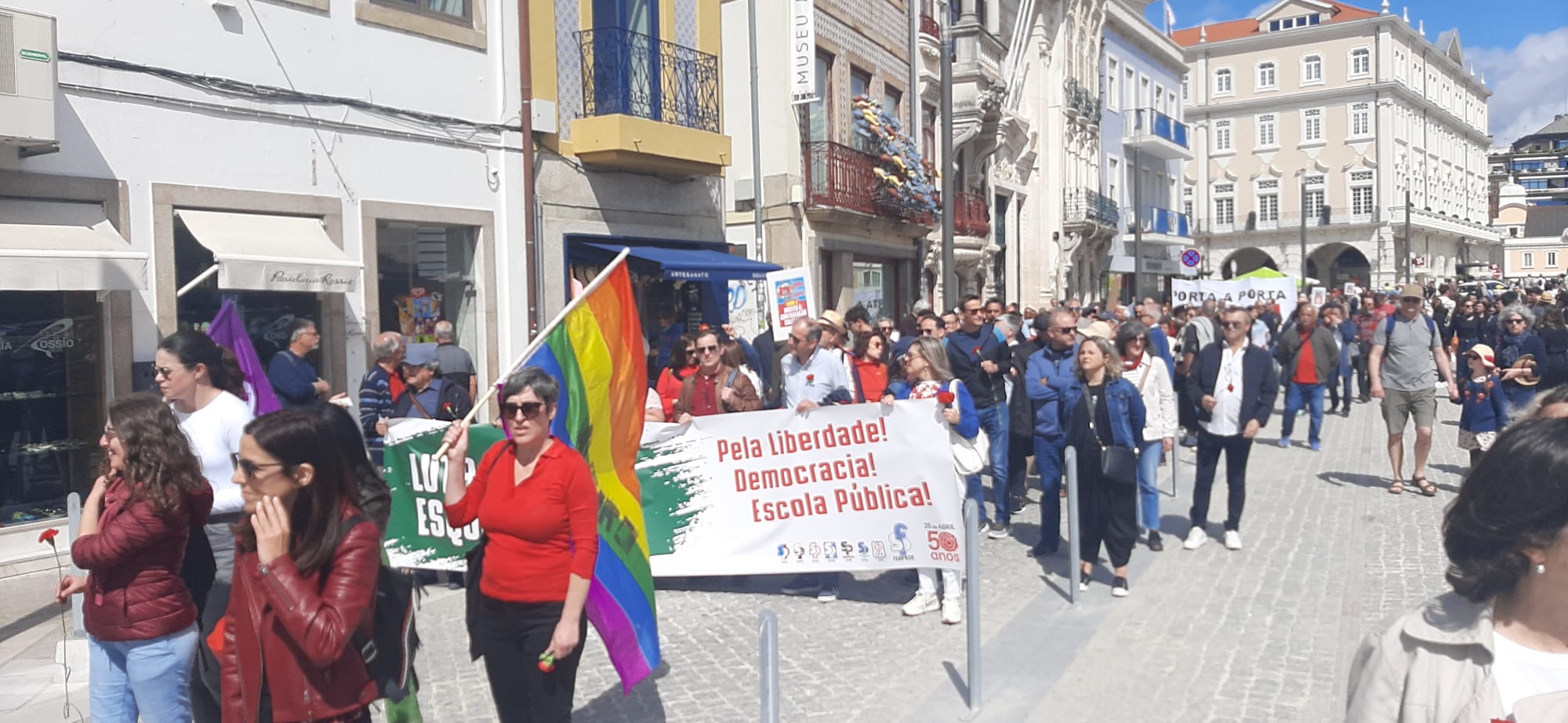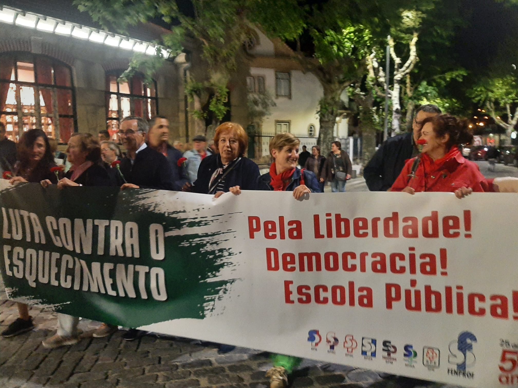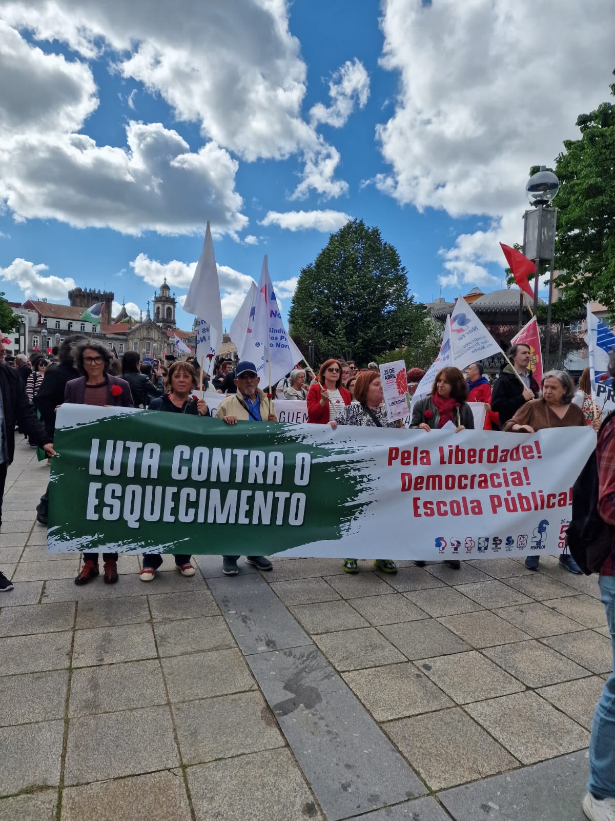 As escolas, como as ruas, encheram-se de cravos e alegria. Os professores ensinaram aos seus alunos o que foi e continua a ser Abril. Nas ruas houve gente como há muito não havia, a deixar uma certeza “Não passarão!”.