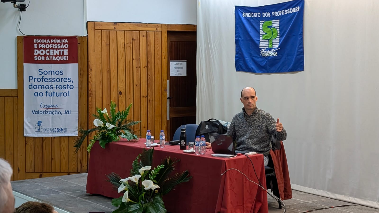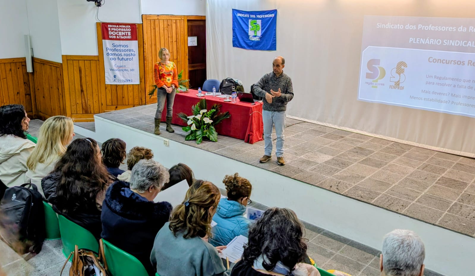 A Caravana Nacional “Somos Professores. Damos rosto ao futuro! Exigimos valorização, já!” passou também pelo concelho mais ocidental da Europa, a ilha das Flores, onde se realizou o último plenário regional e da caravana nacional pela Região Autónoma dos Açores, no Auditório Cândida Almeida da EBS das Flores.