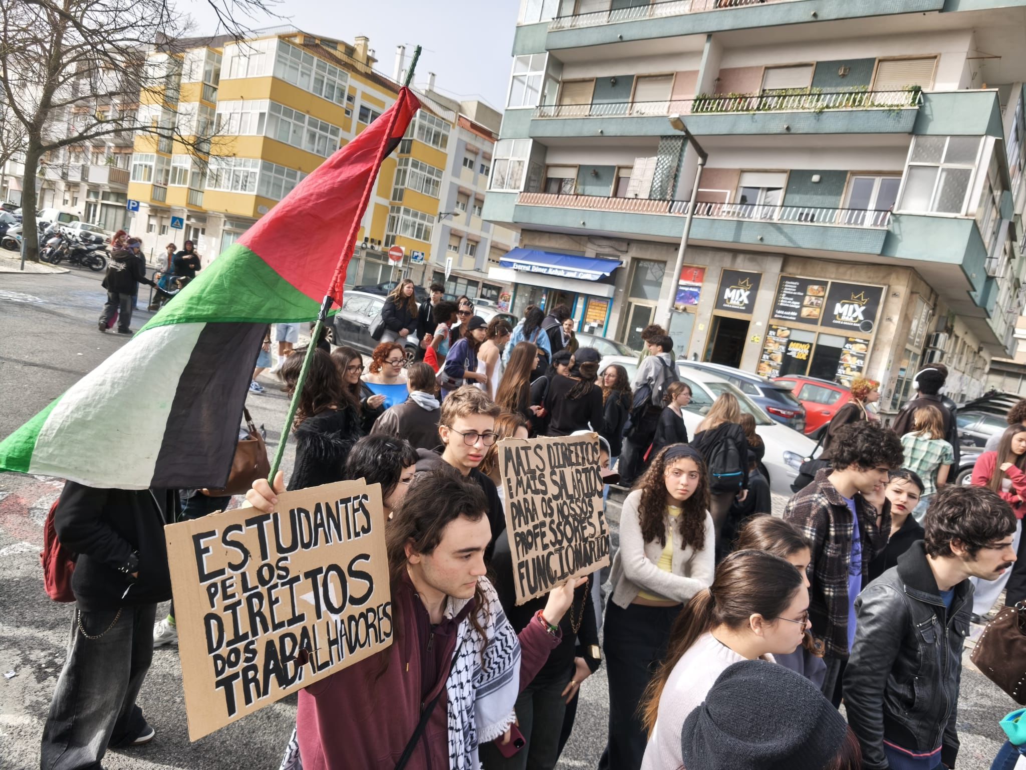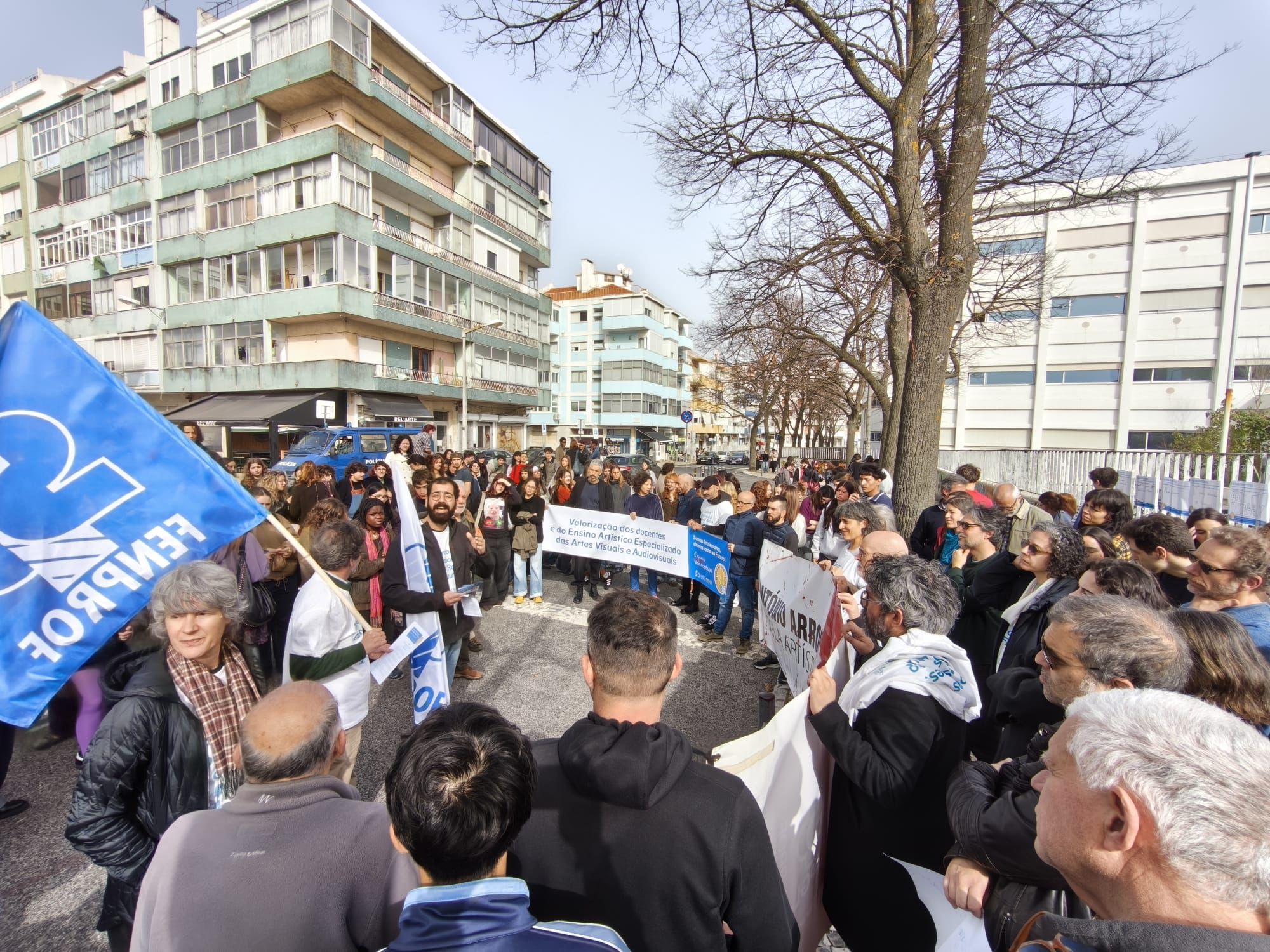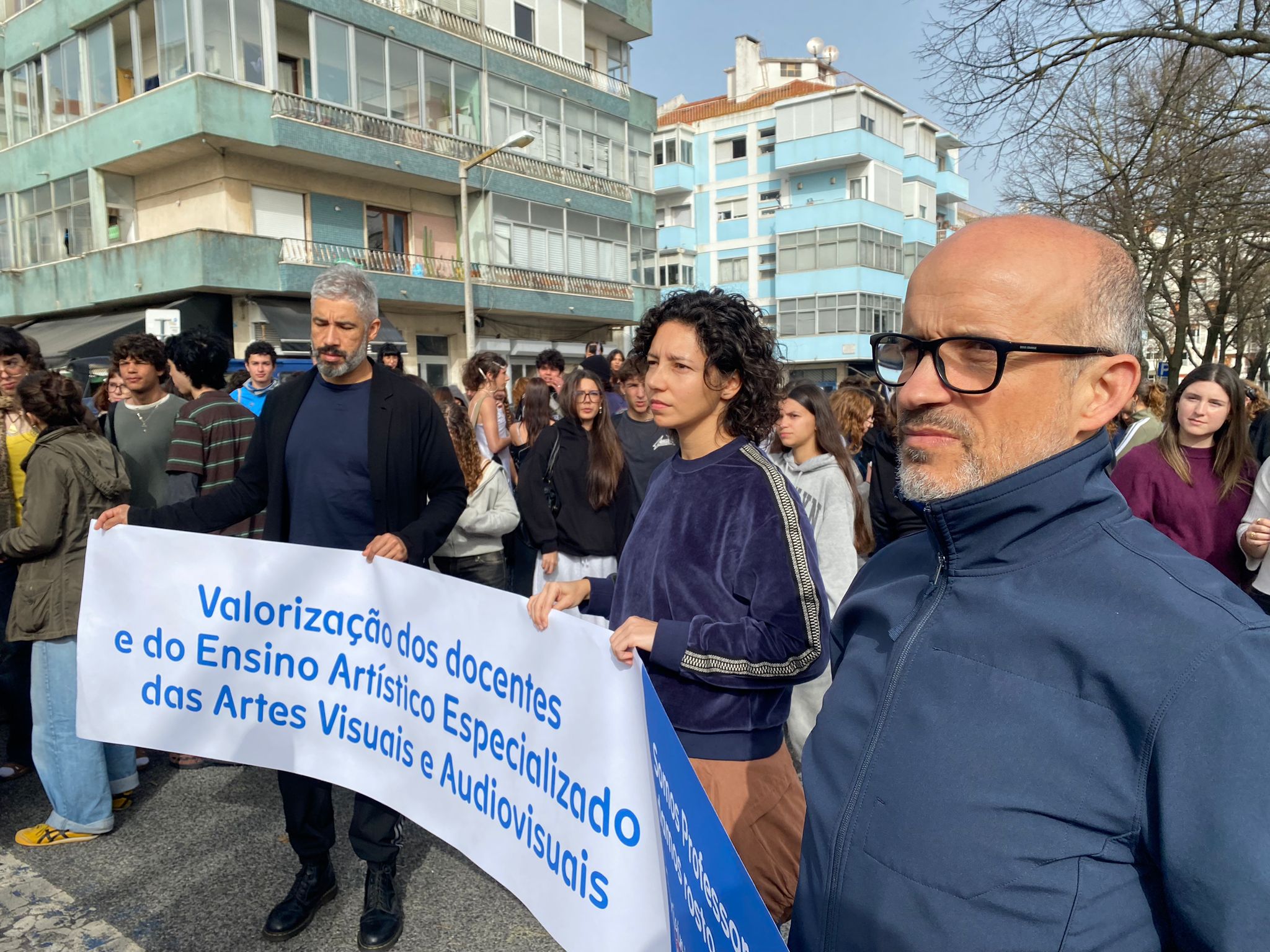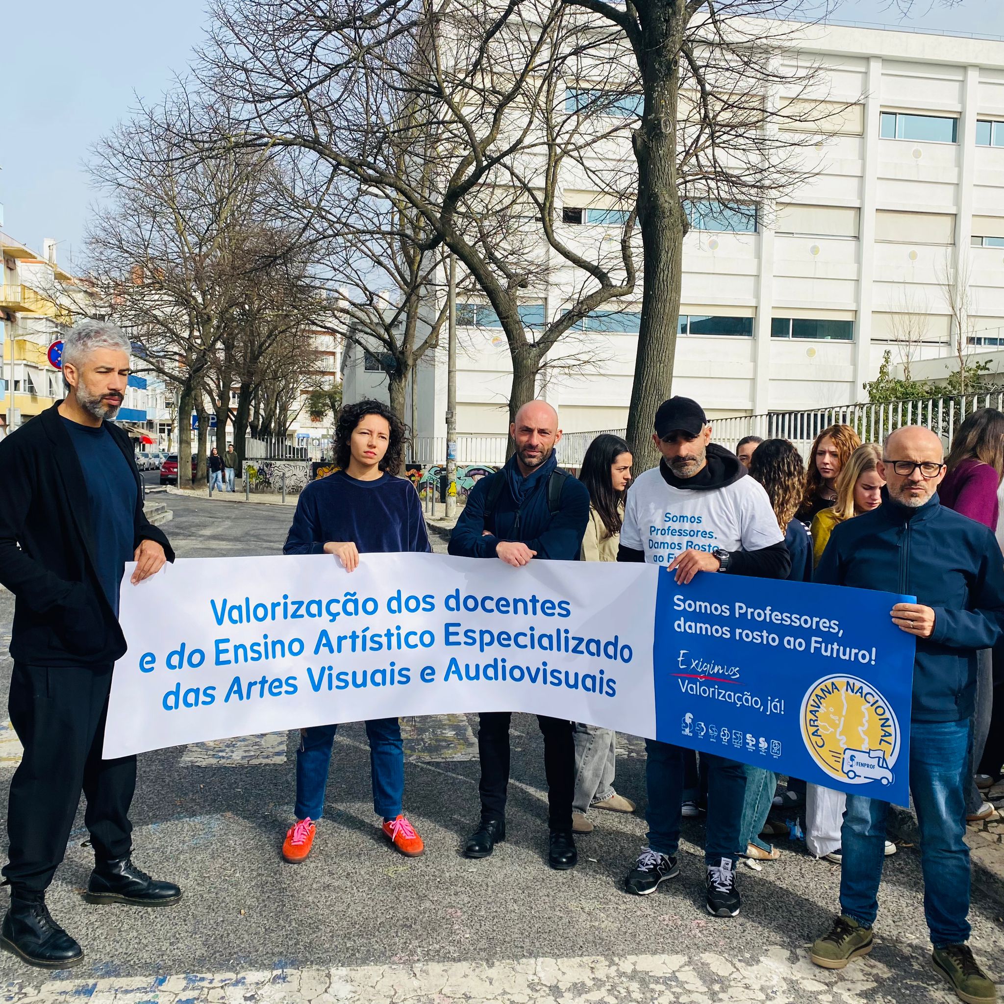 A Caravana passou também pela Escola Artística António Arroio, em Lisboa, onde os estudantes se juntaram aos professores numa concentração à porta da escola.
