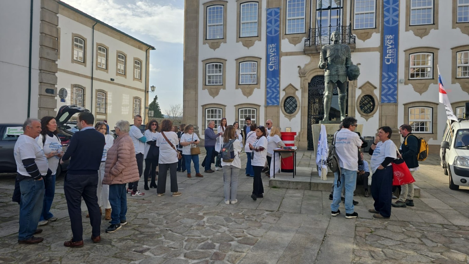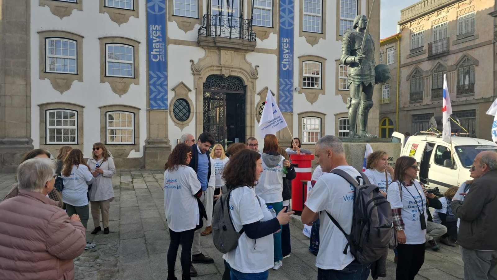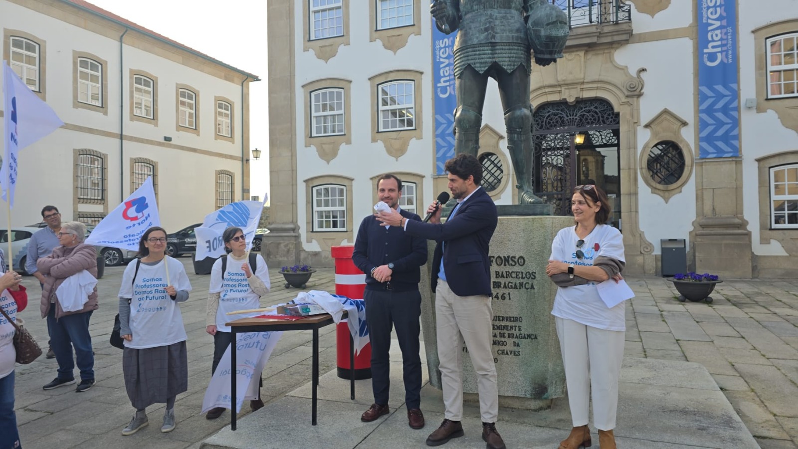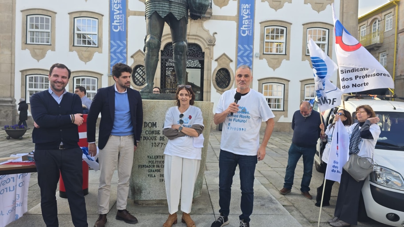 À tarde, a Caravana passou por Chaves, onde o Secretário-geral da FENPROF Francisco Gonçalves e alguns dirigentes do SPN reuniram com o Vice-Presidente da Câmara Municipal de Chaves e com o Presidente da Junta de Freguesia de Santa Maria Maior.