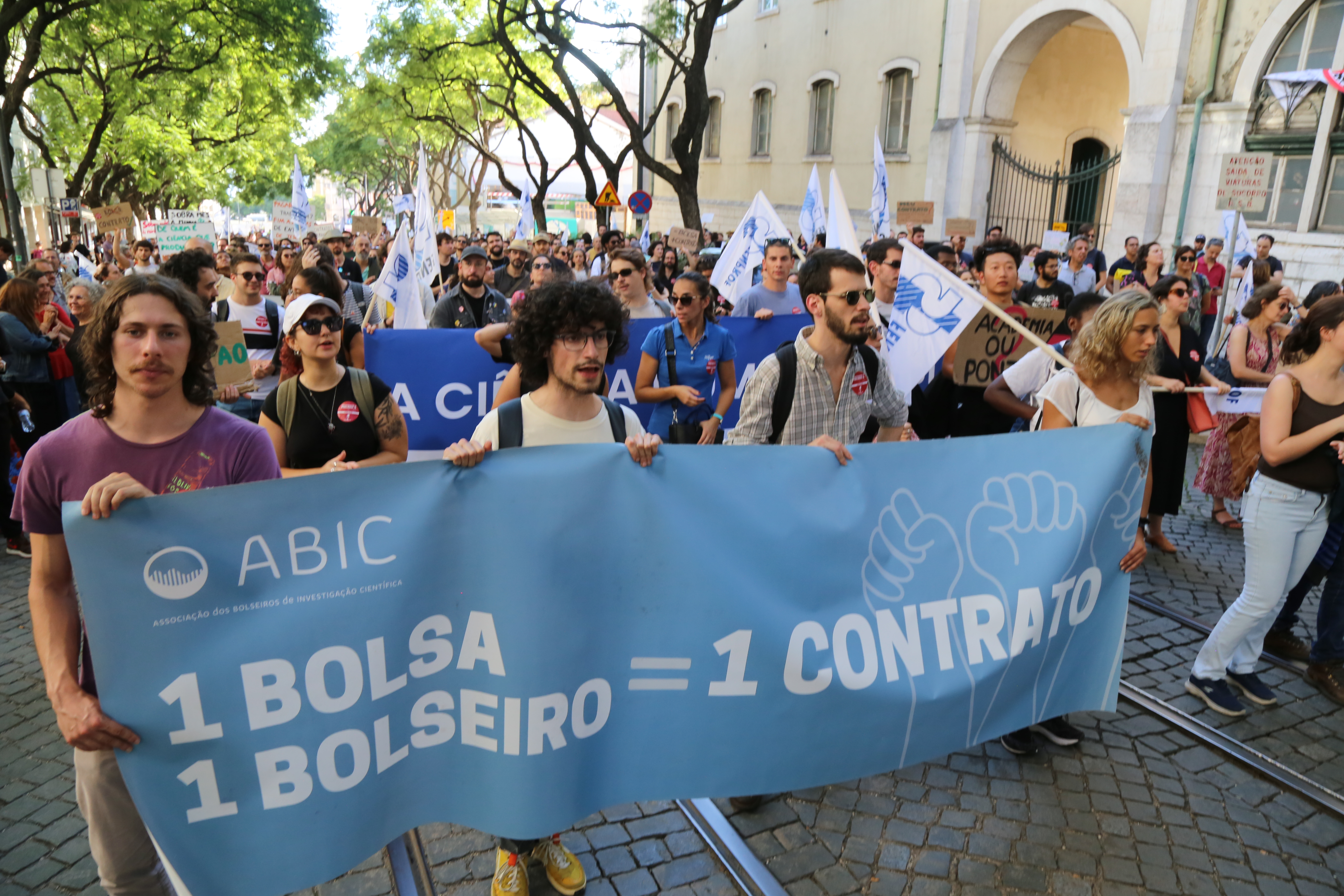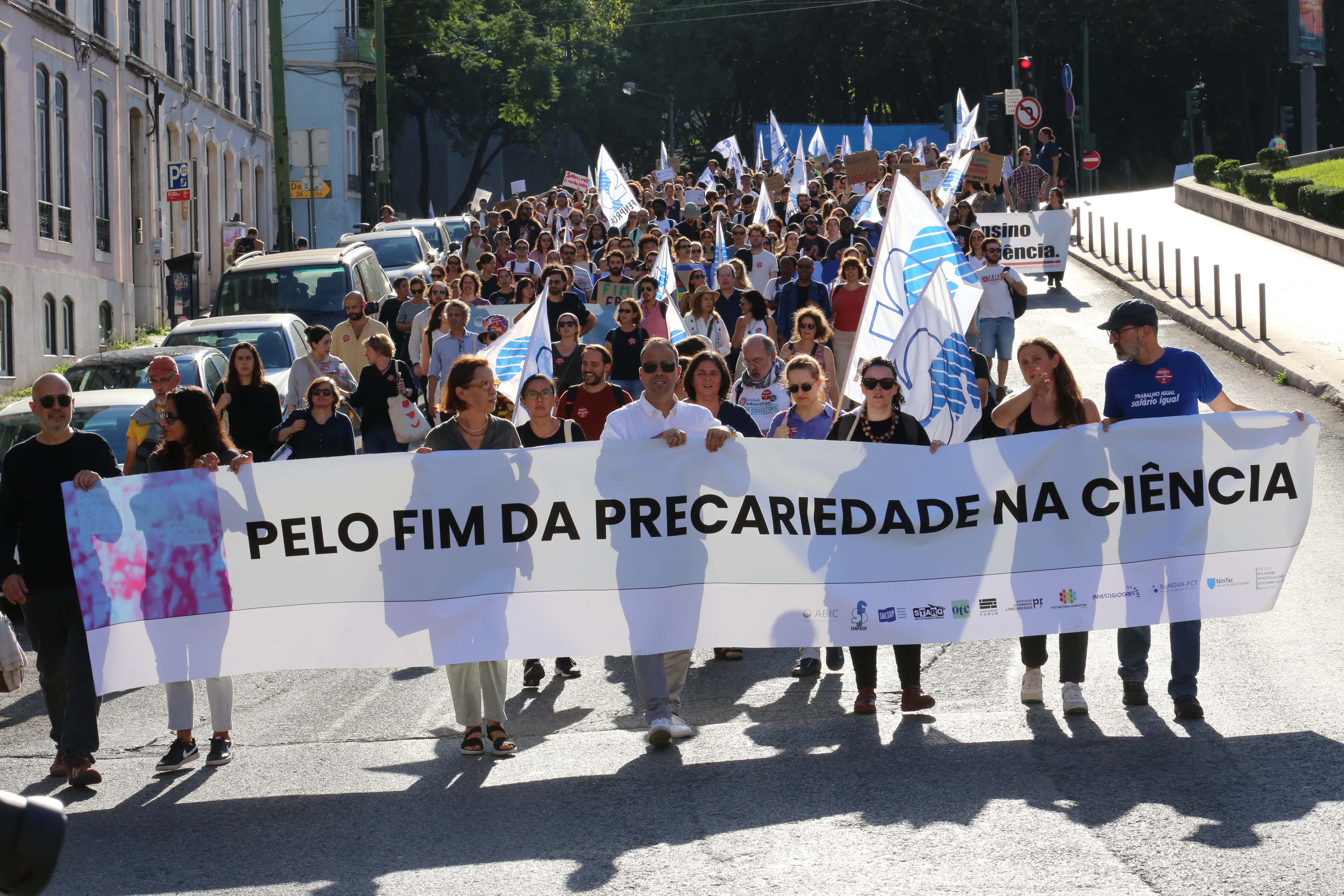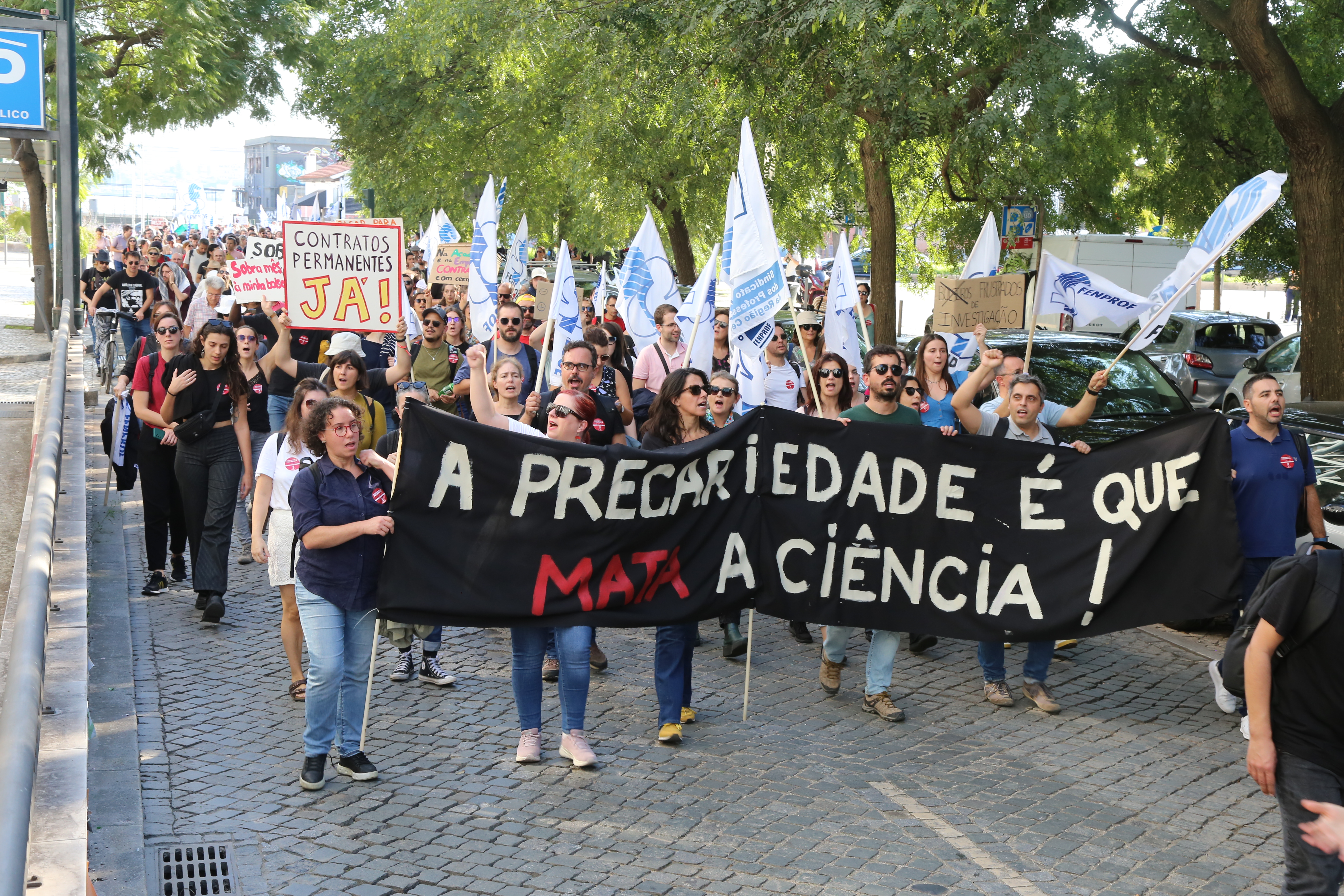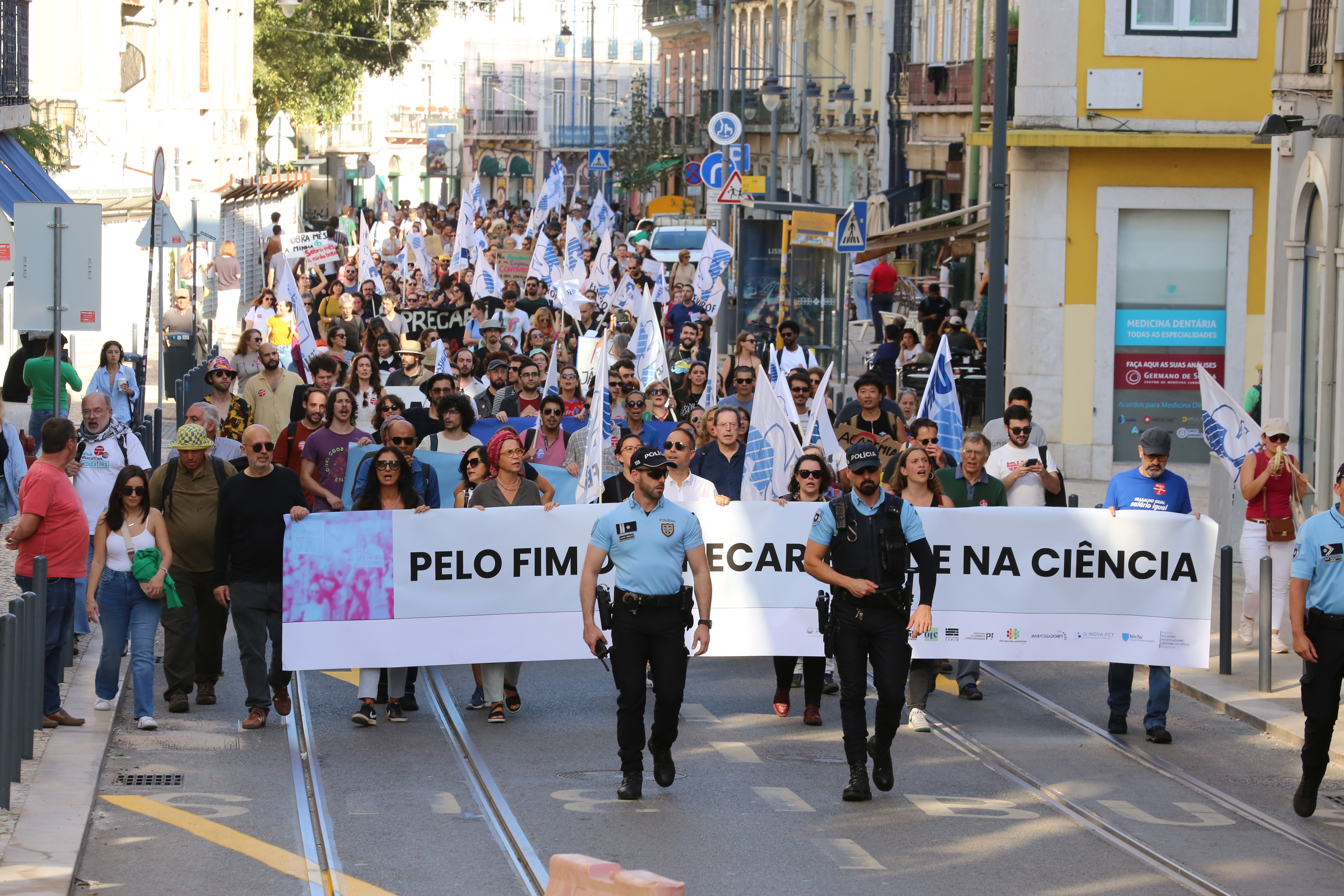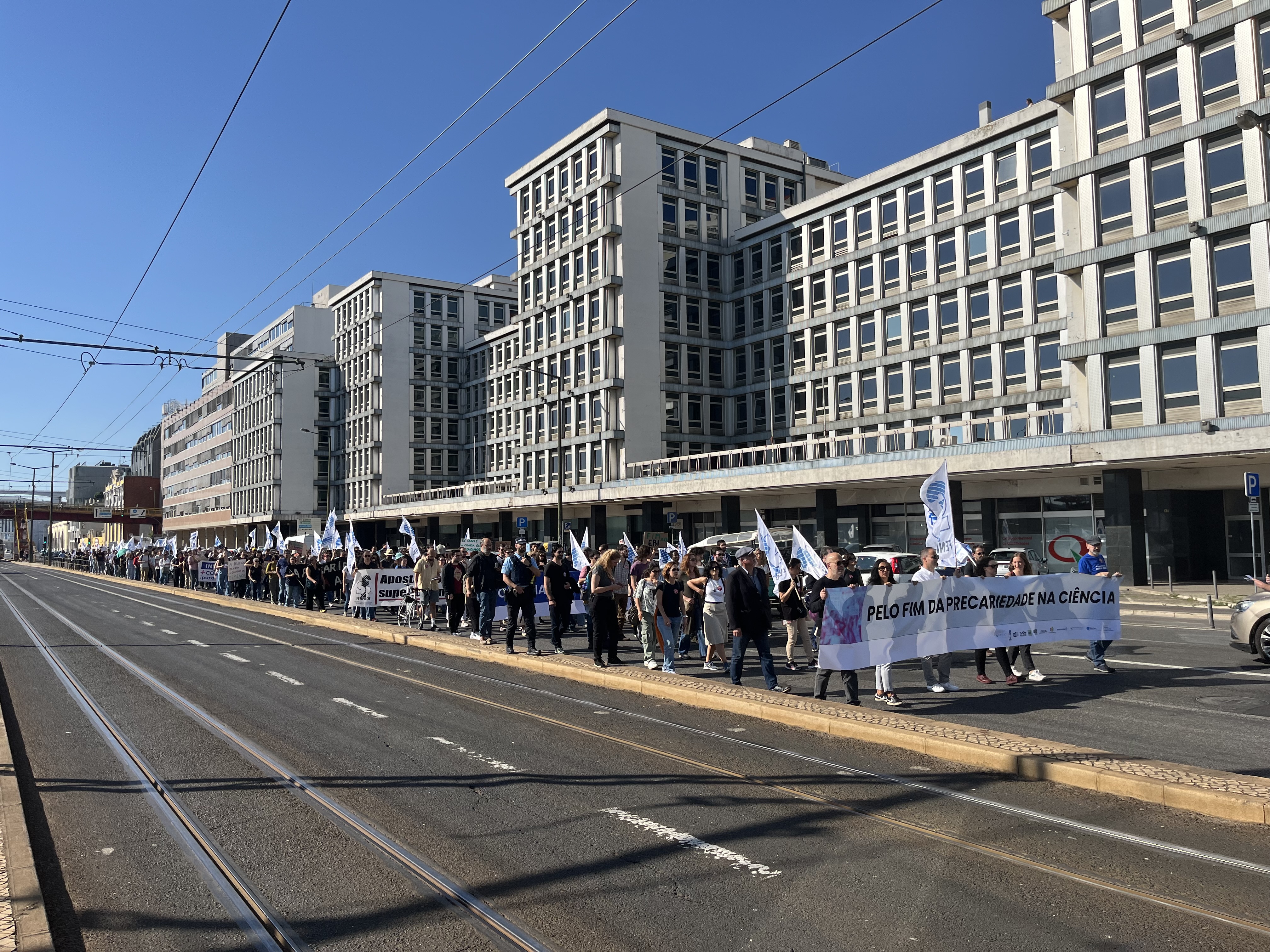 Cerca de um milhar de trabalhadores científicos desfilaram esta quarta-feira pela Avenida 24 de Julho, em Lisboa, até à Assembleia da República para exigir o fim da precariedade na Ciência e um efetivo reforço do investimento no Ensino Superior e na Ciência já no Orçamento do Estado para 2025.