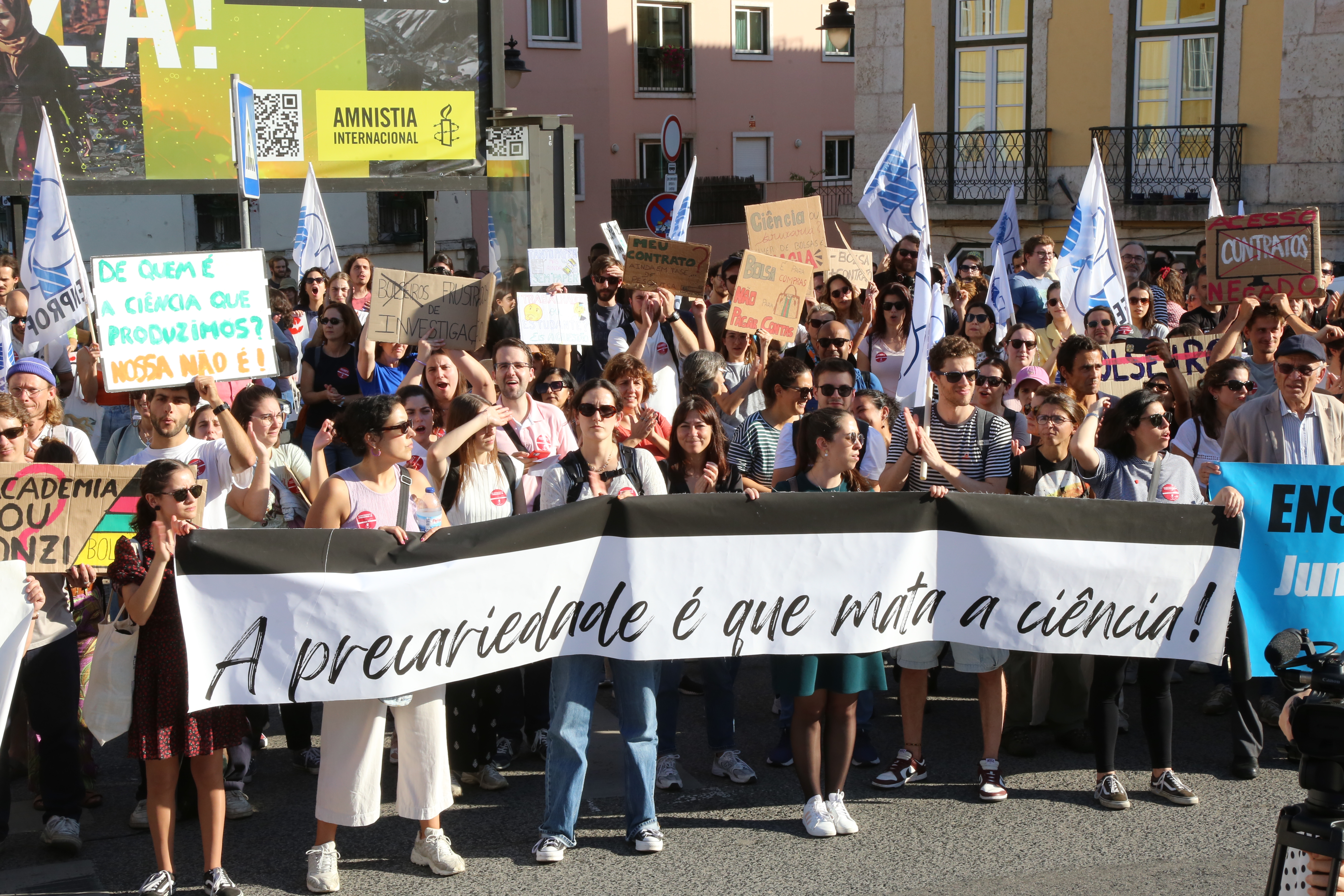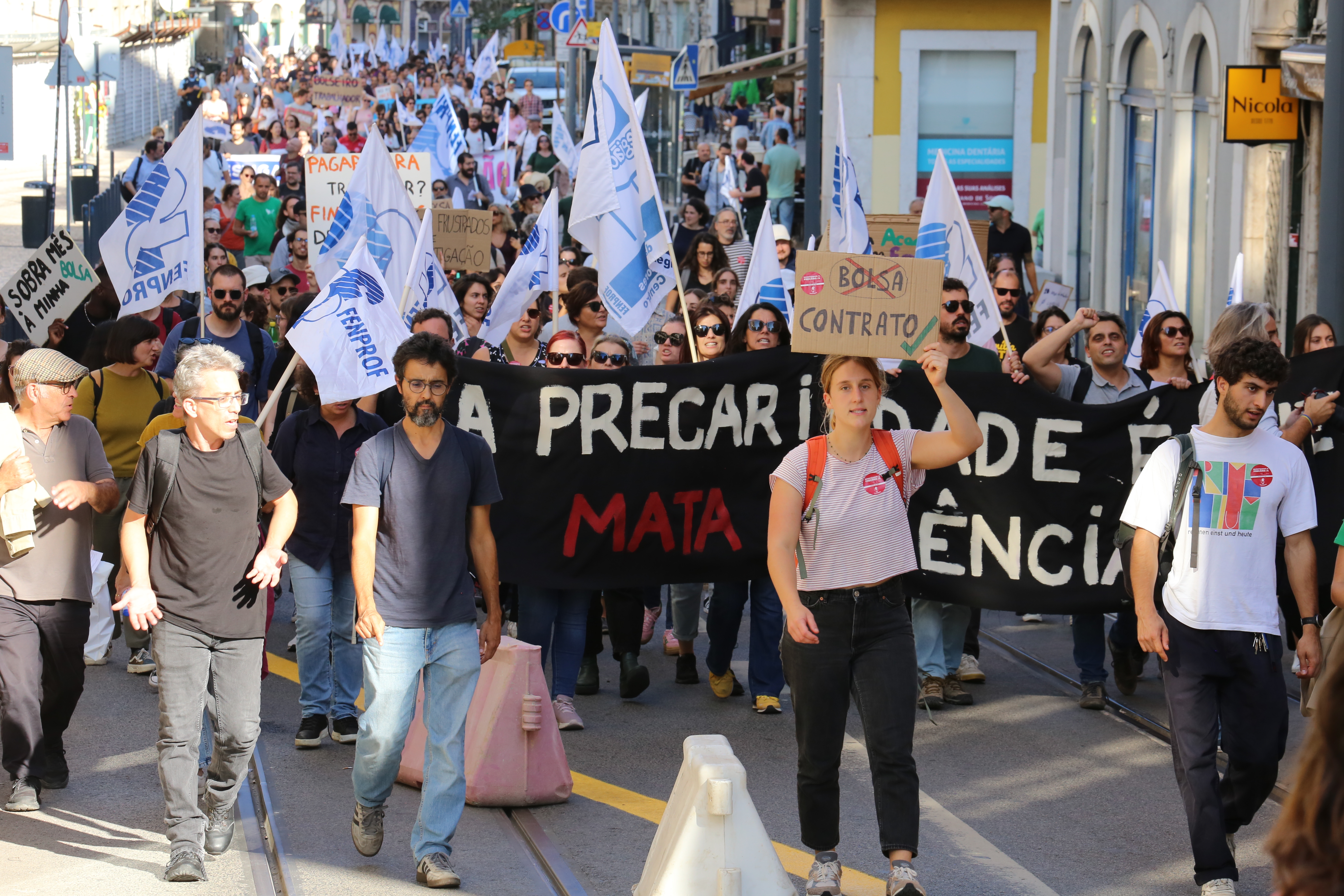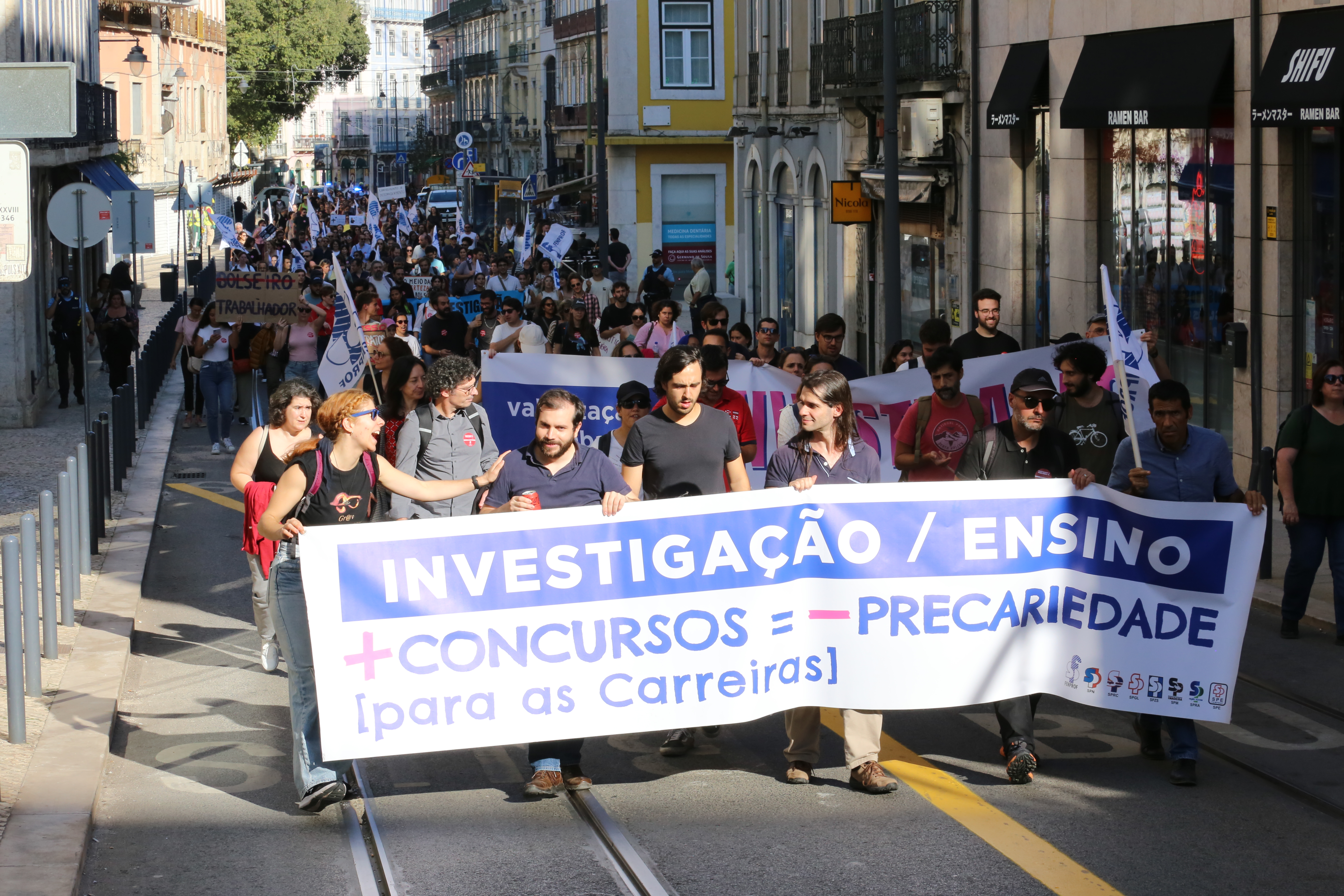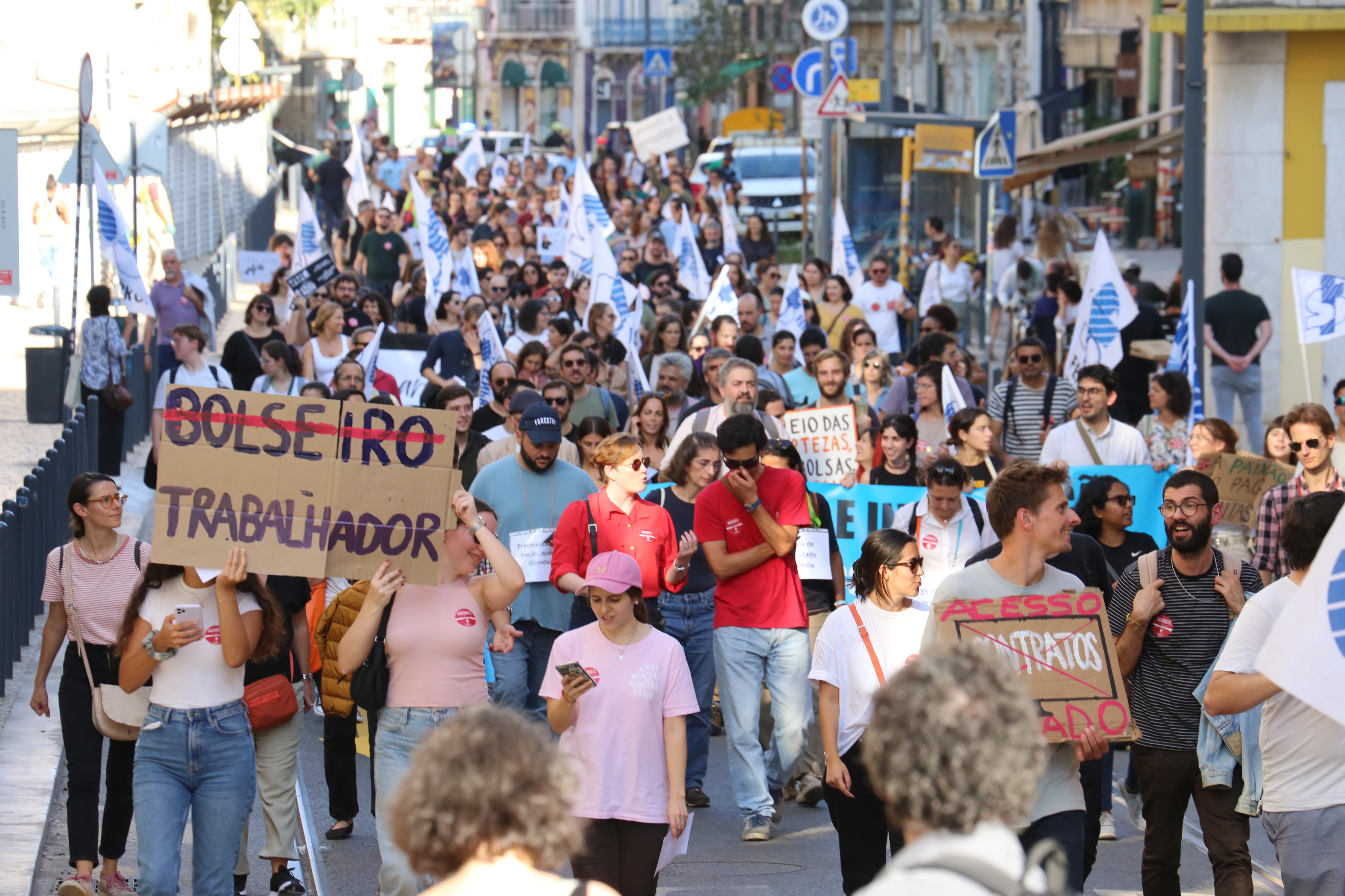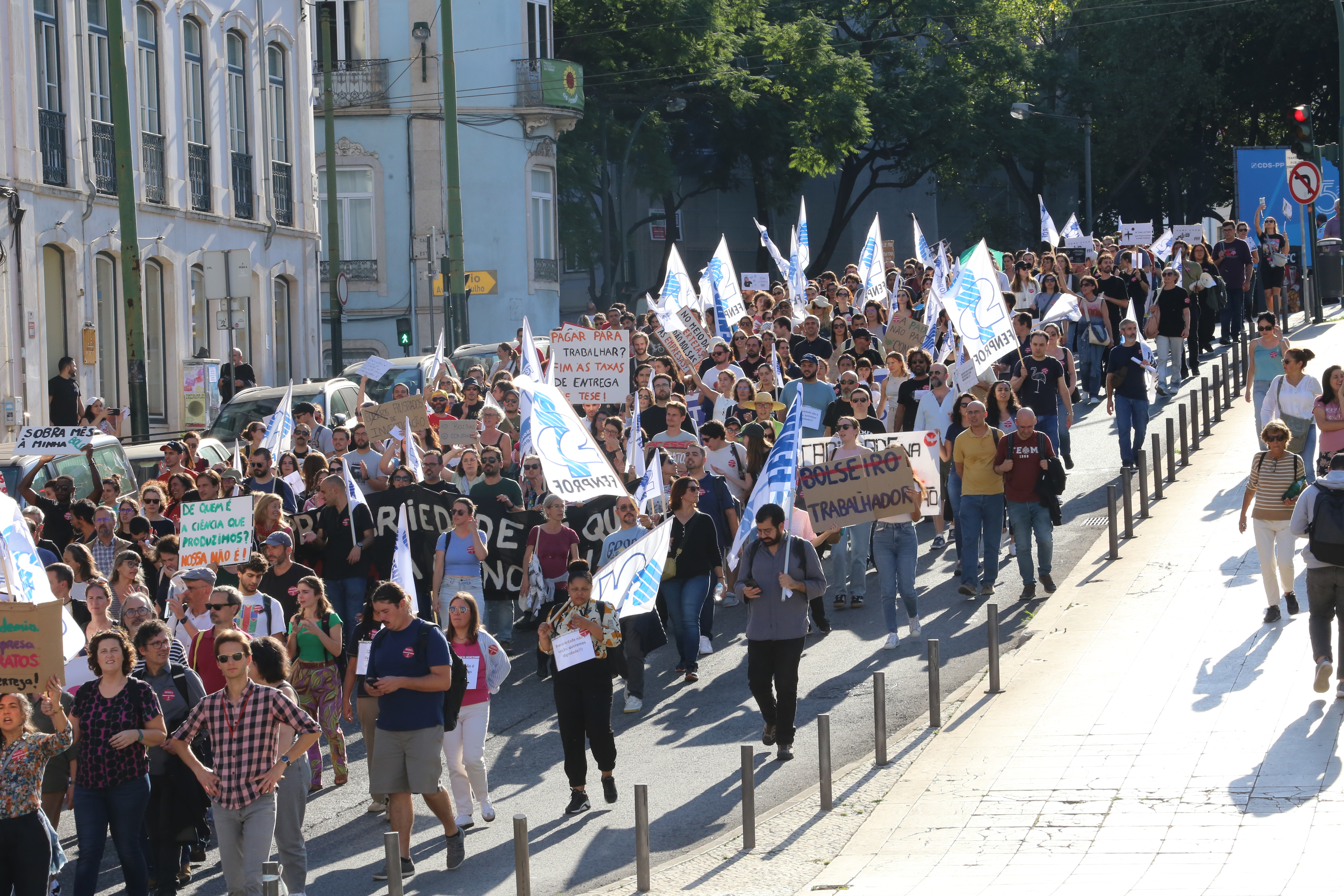 Cerca de um milhar de trabalhadores científicos desfilaram esta quarta-feira pela Avenida 24 de Julho, em Lisboa, até à Assembleia da República para exigir o fim da precariedade na Ciência e um efetivo reforço do investimento no Ensino Superior e na Ciência já no Orçamento do Estado para 2025.