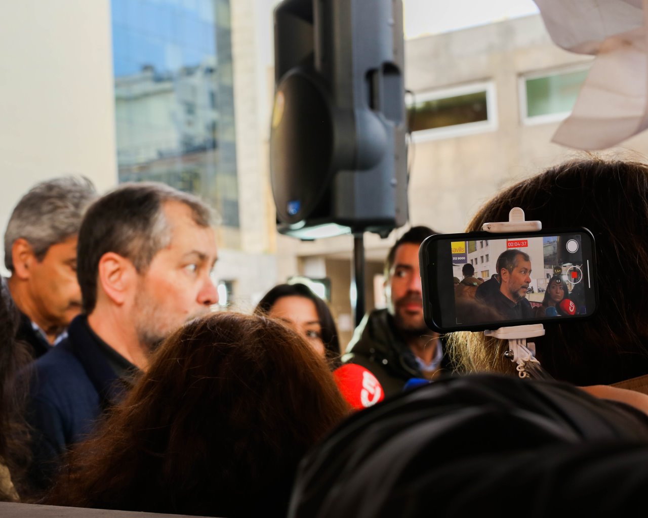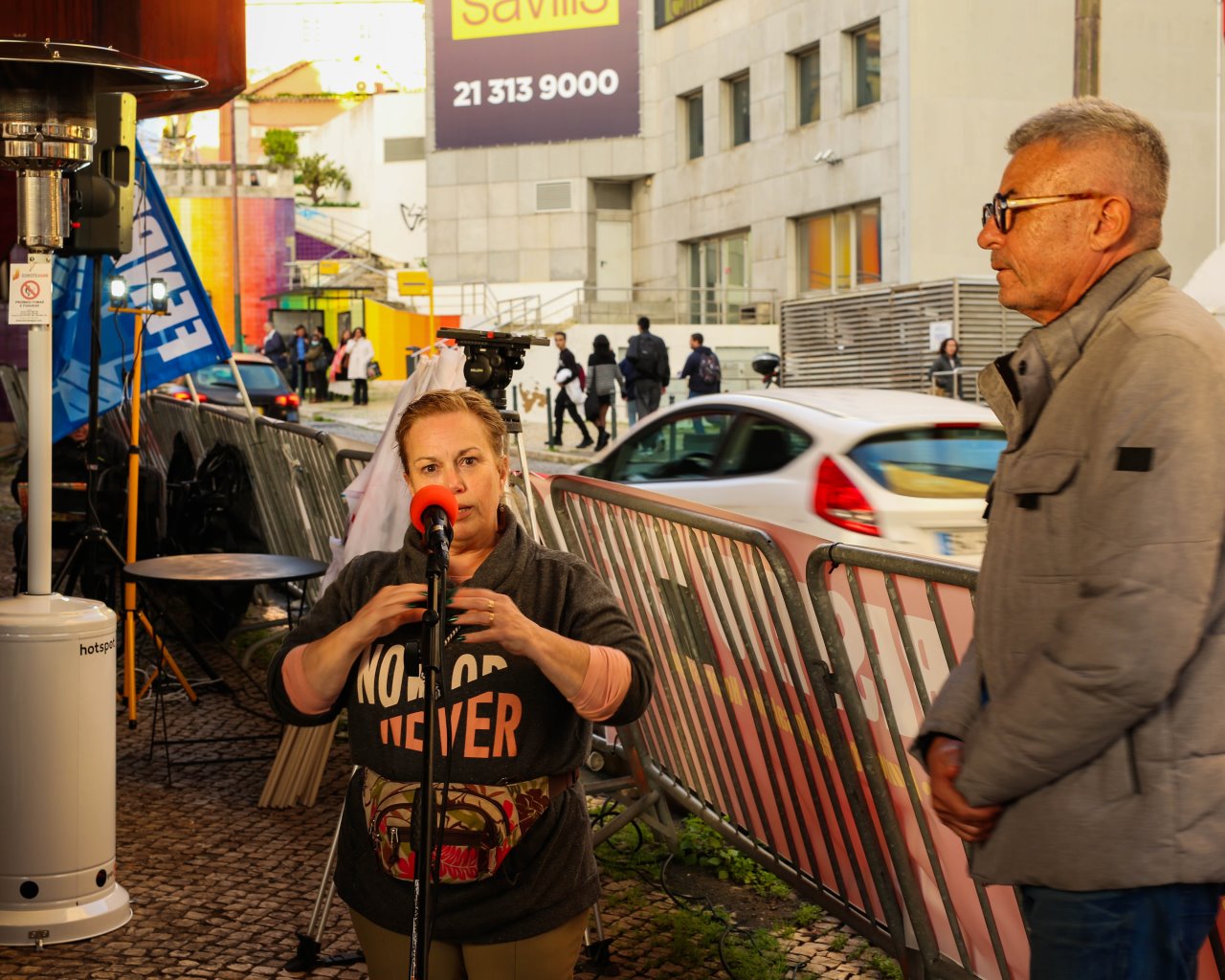 A inauguração do acampamento promovido pela FENPROF em frente ao Ministério da Educação foi feita pelo Secretário-geral e pelo Secretário-geral adjunto José Feliciano Costa.