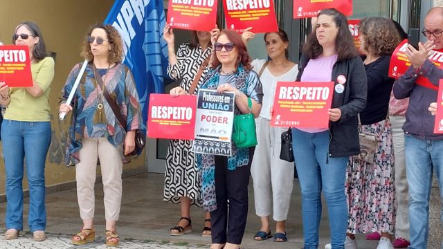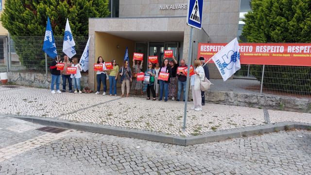 ME recebido por dirigentes da FENPROF e professores de Leiria em protesto na visita ao Centro Escolar de Marrazes