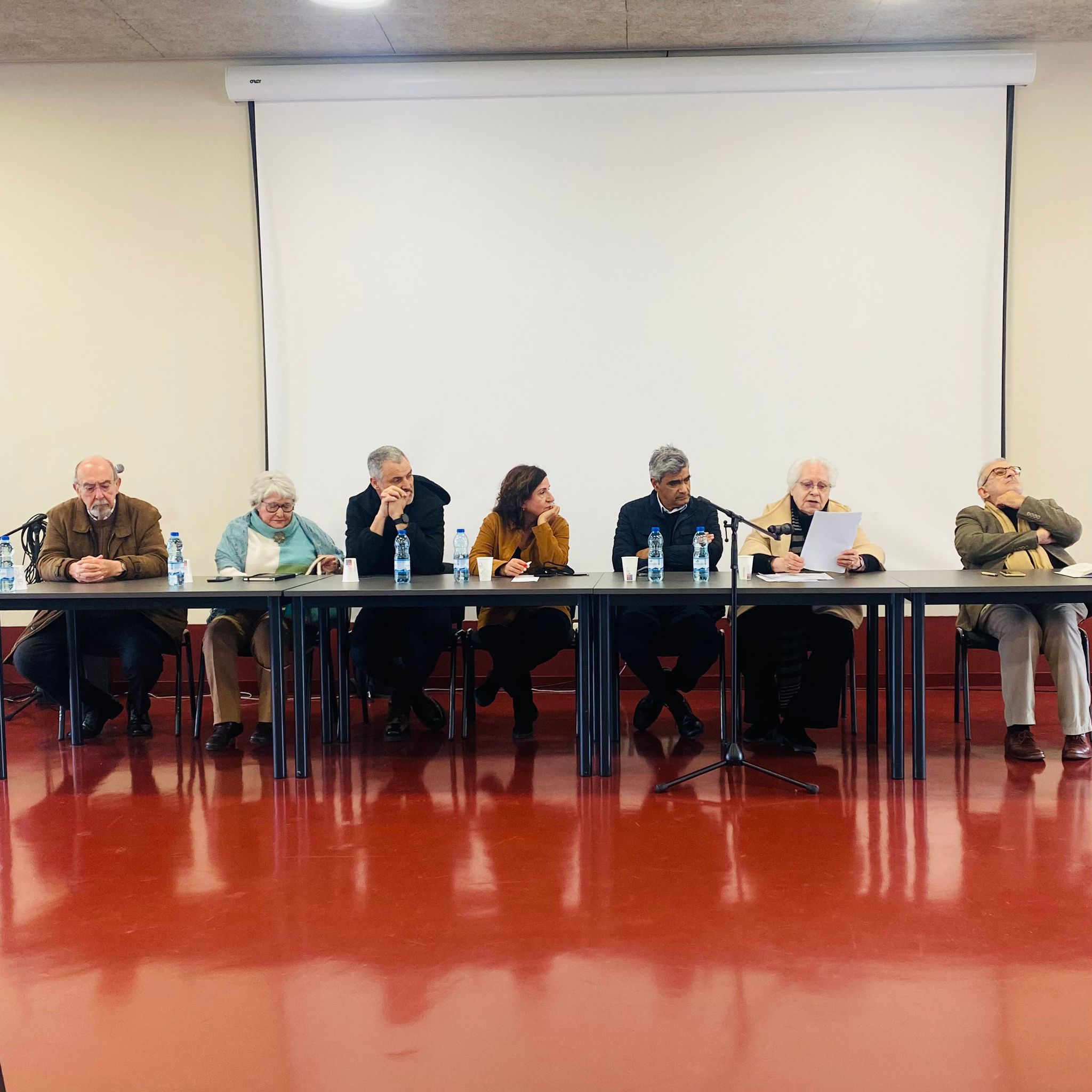 A mesa da iniciativa contou com a participação de Francisco Gonçalves e José Feliciano Costa (Secretários-Gerais Adjuntos da FENPROF), Manuela Mendonça (Presidente do Conselho Nacional da FENPROF), António Teodoro (membro dos Grupos de Estudo e antigo Secretário-geral da FENPROF), Paulo Sucena (antigo Secretário-Geral da FENPROF) e Maria Manuel Calvet Ricardo e Manuela Silva (membros dos Grupos de Estudo).