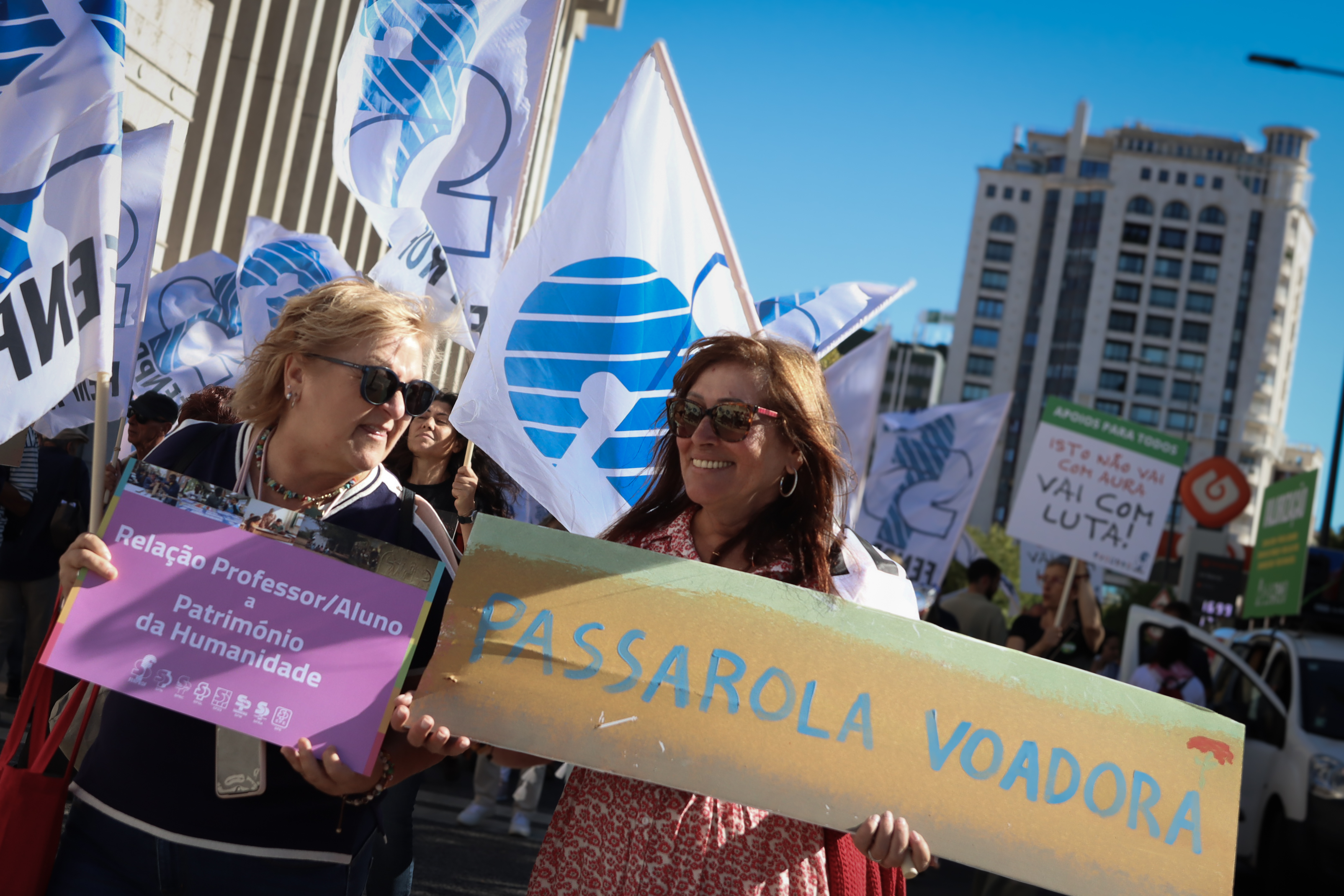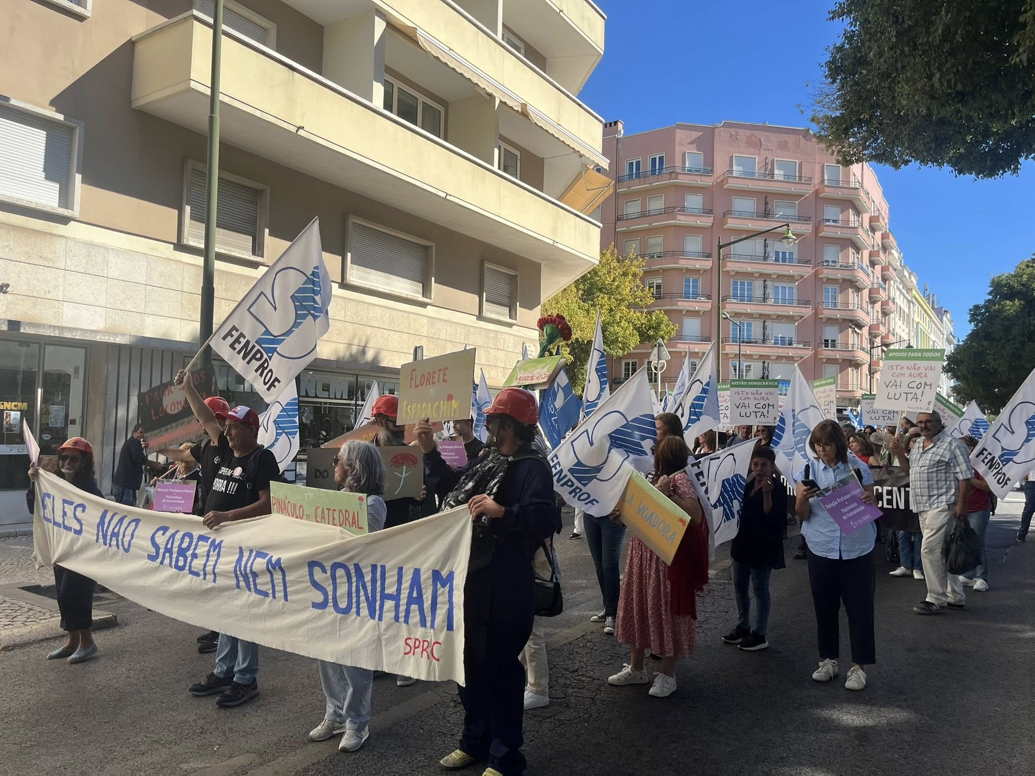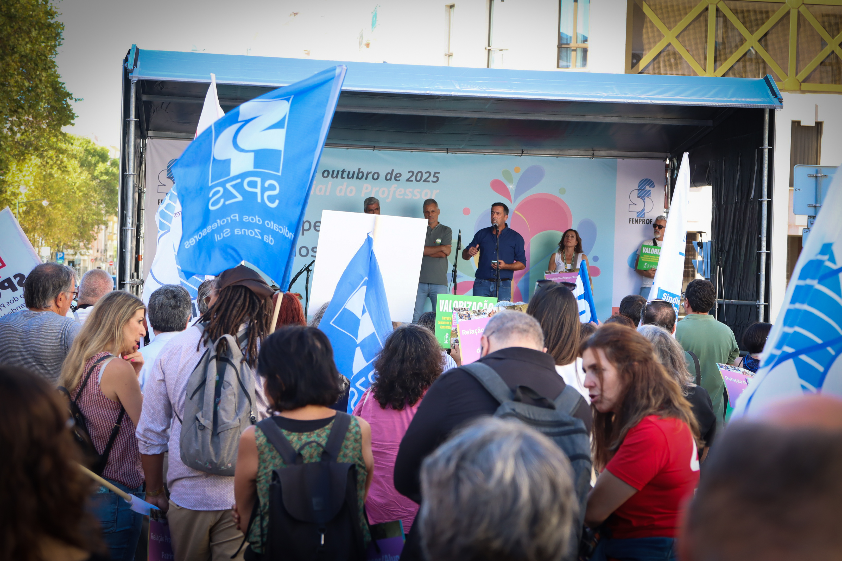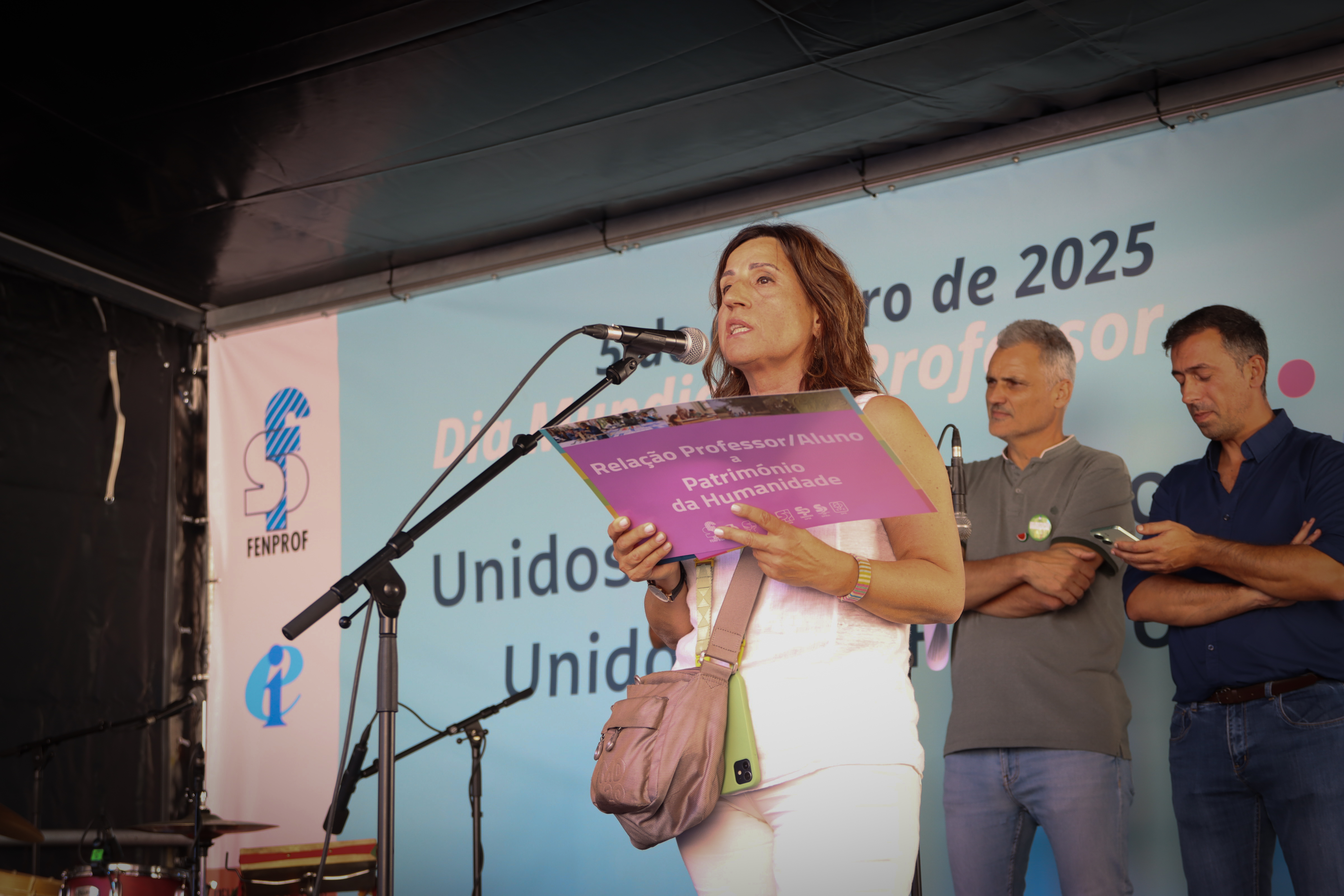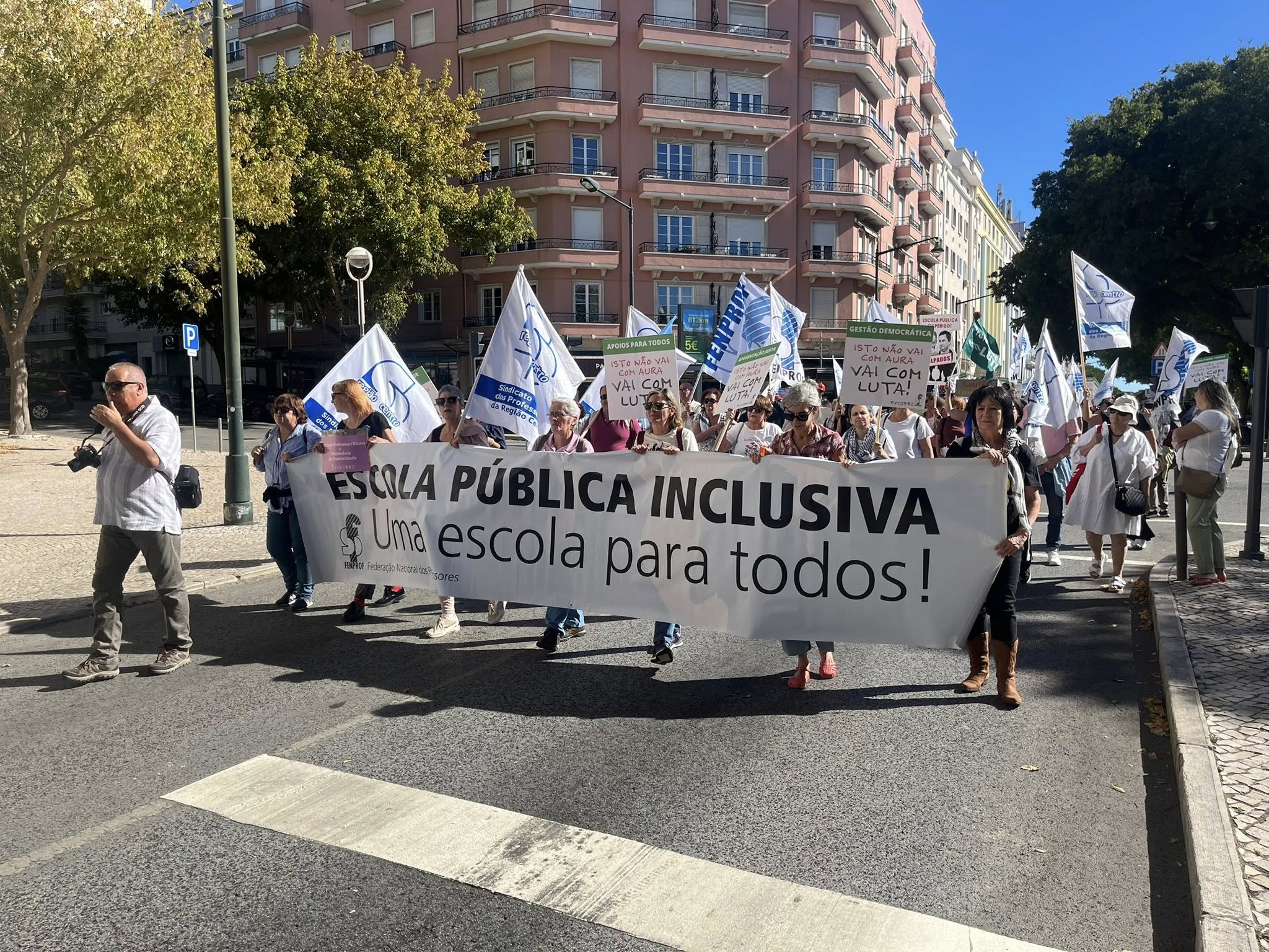 A FENPROF celebrou o 5 de outubro, Dia Mundial dos Professores, este sábado, dia 4 de outubro, com uma ação de luta em Lisboa, com concentração e desfile, desde o Jardim do Arco do Cego até ao edifício sede da Presidência do Conselho de Ministros, para lembrar ao governo os compromissos assumidos internacionalmente, reclamar de novo a valorização da profissão docente e reafirmar que a Educação não pode esperar!
