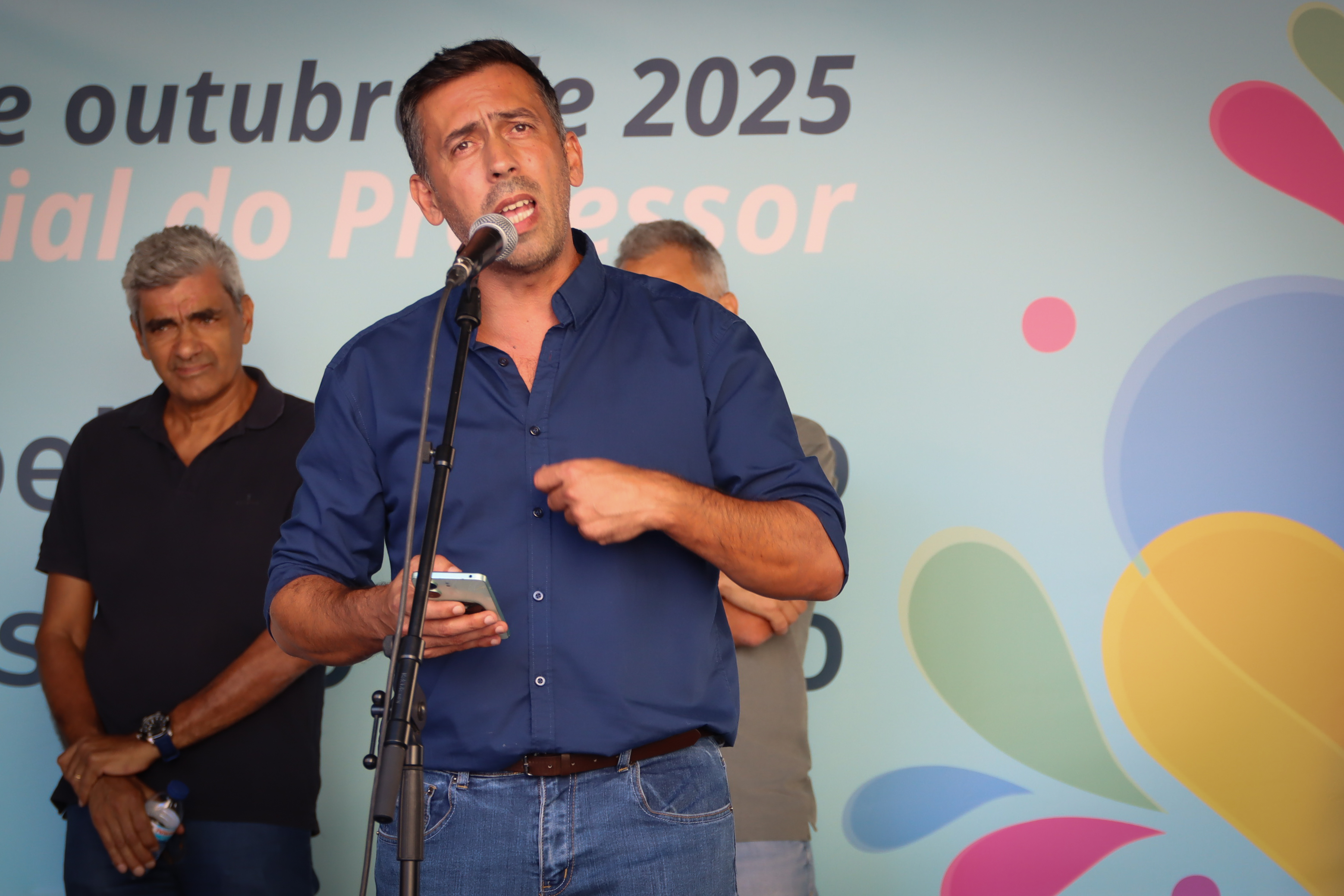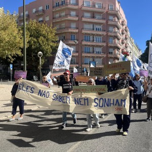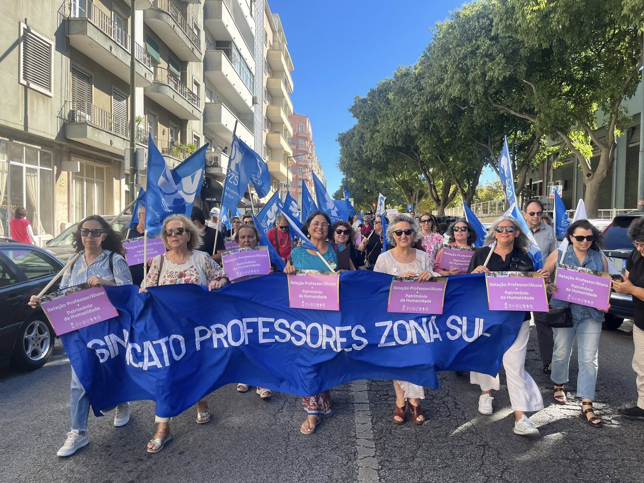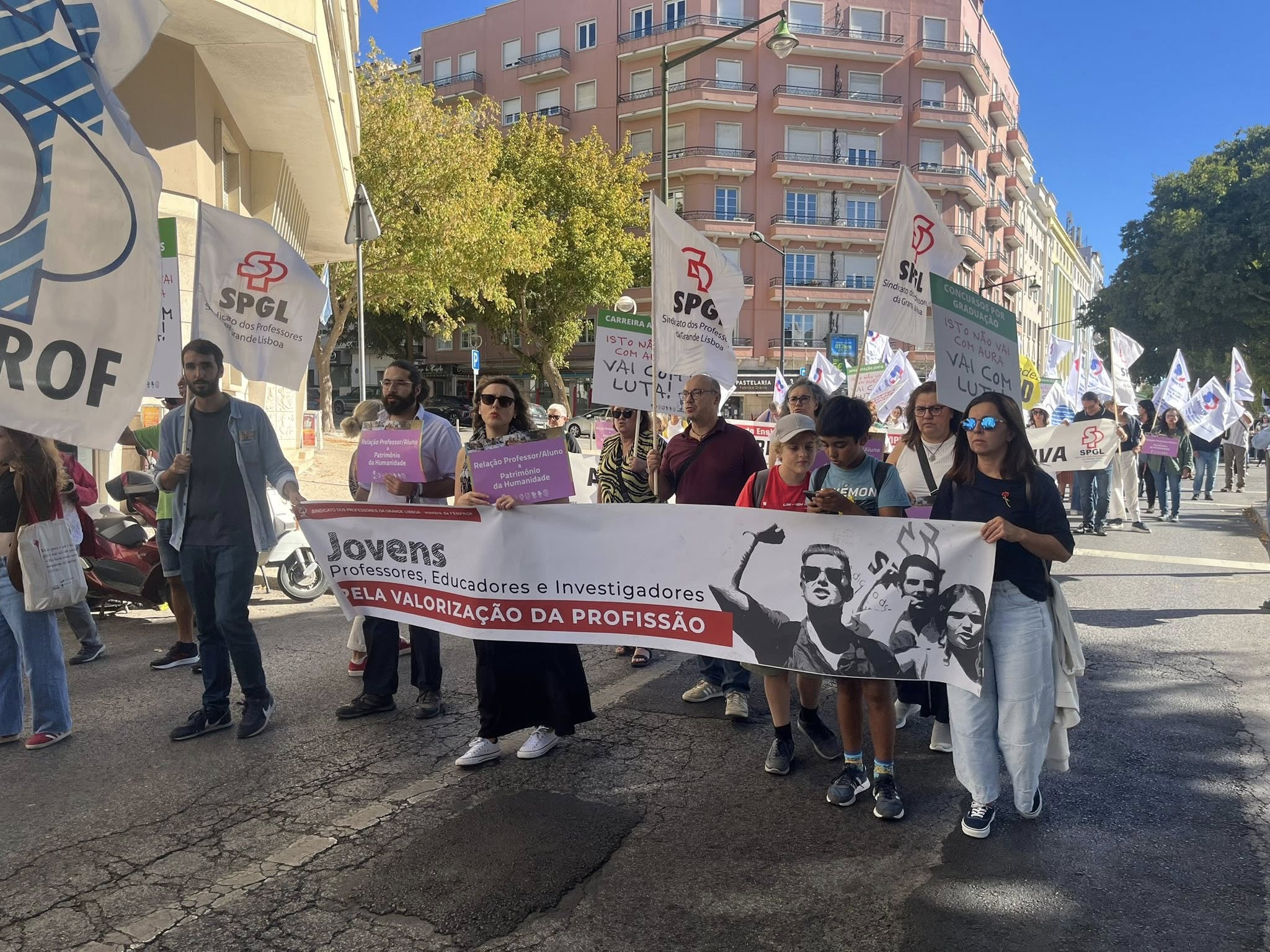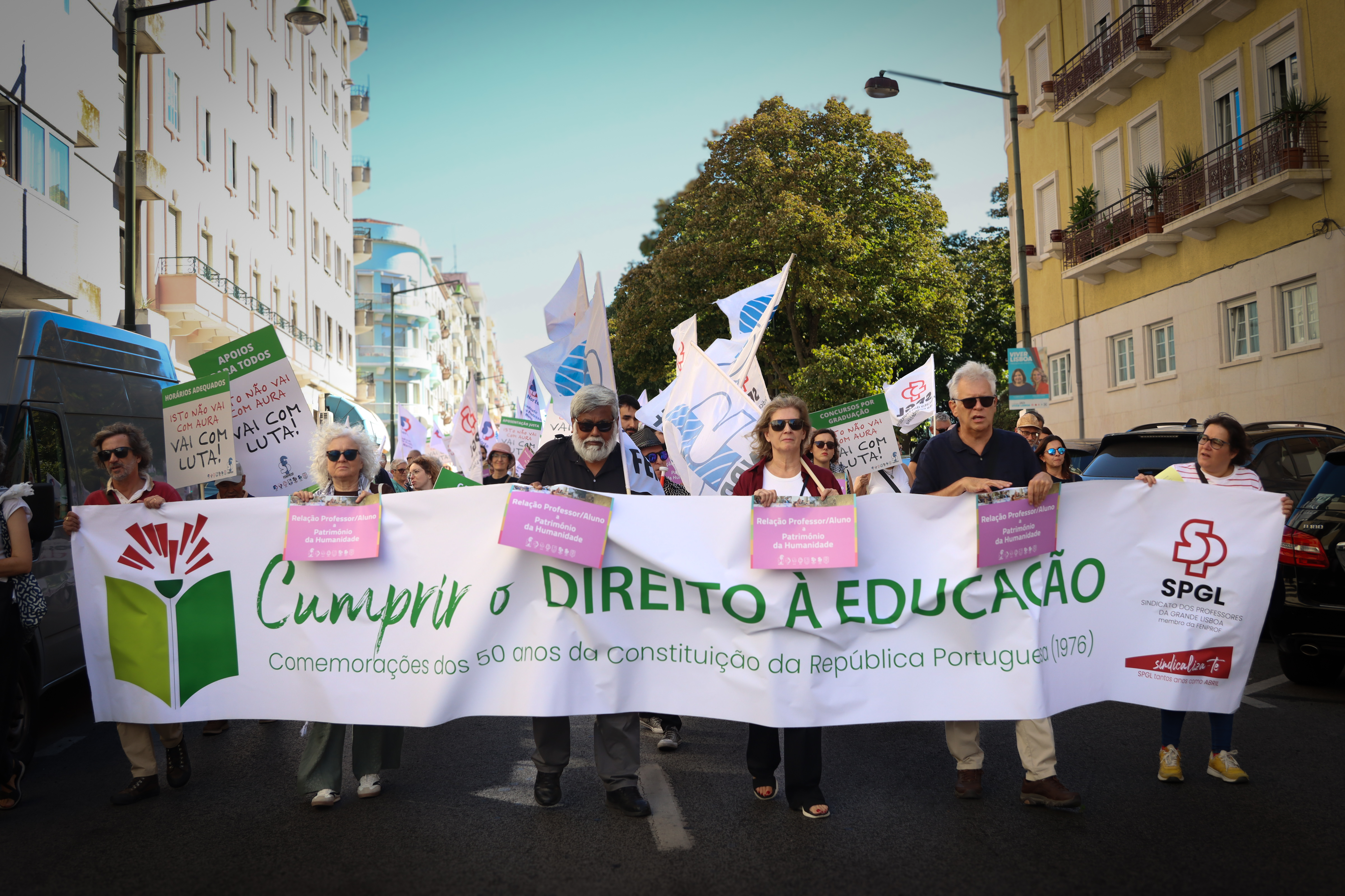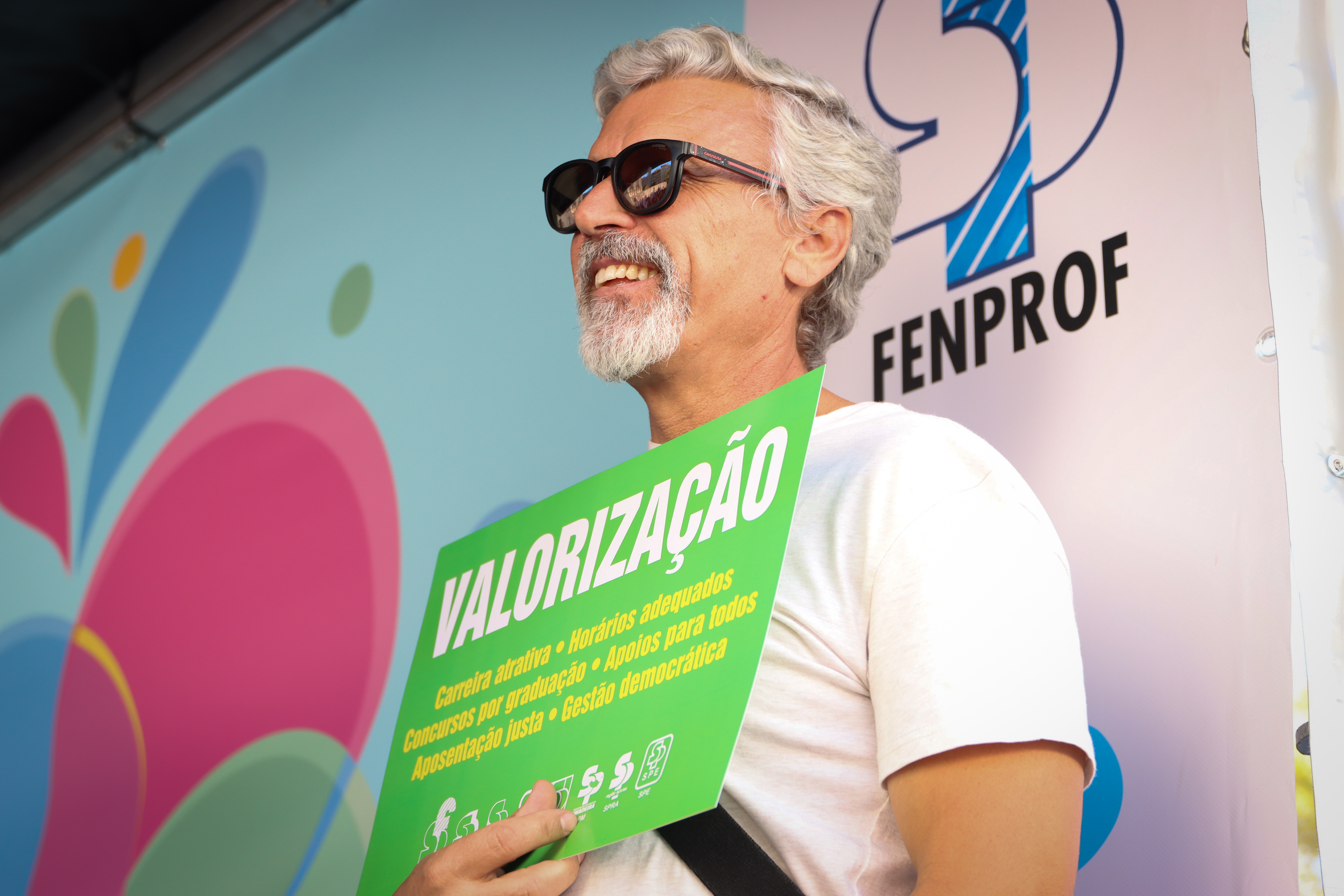 A FENPROF celebrou o 5 de outubro, Dia Mundial dos Professores, este sábado, dia 4 de outubro, com uma ação de luta em Lisboa, com concentração e desfile, desde o Jardim do Arco do Cego até ao edifício sede da Presidência do Conselho de Ministros, para lembrar ao governo os compromissos assumidos internacionalmente, reclamar de novo a valorização da profissão docente e reafirmar que a Educação não pode esperar!