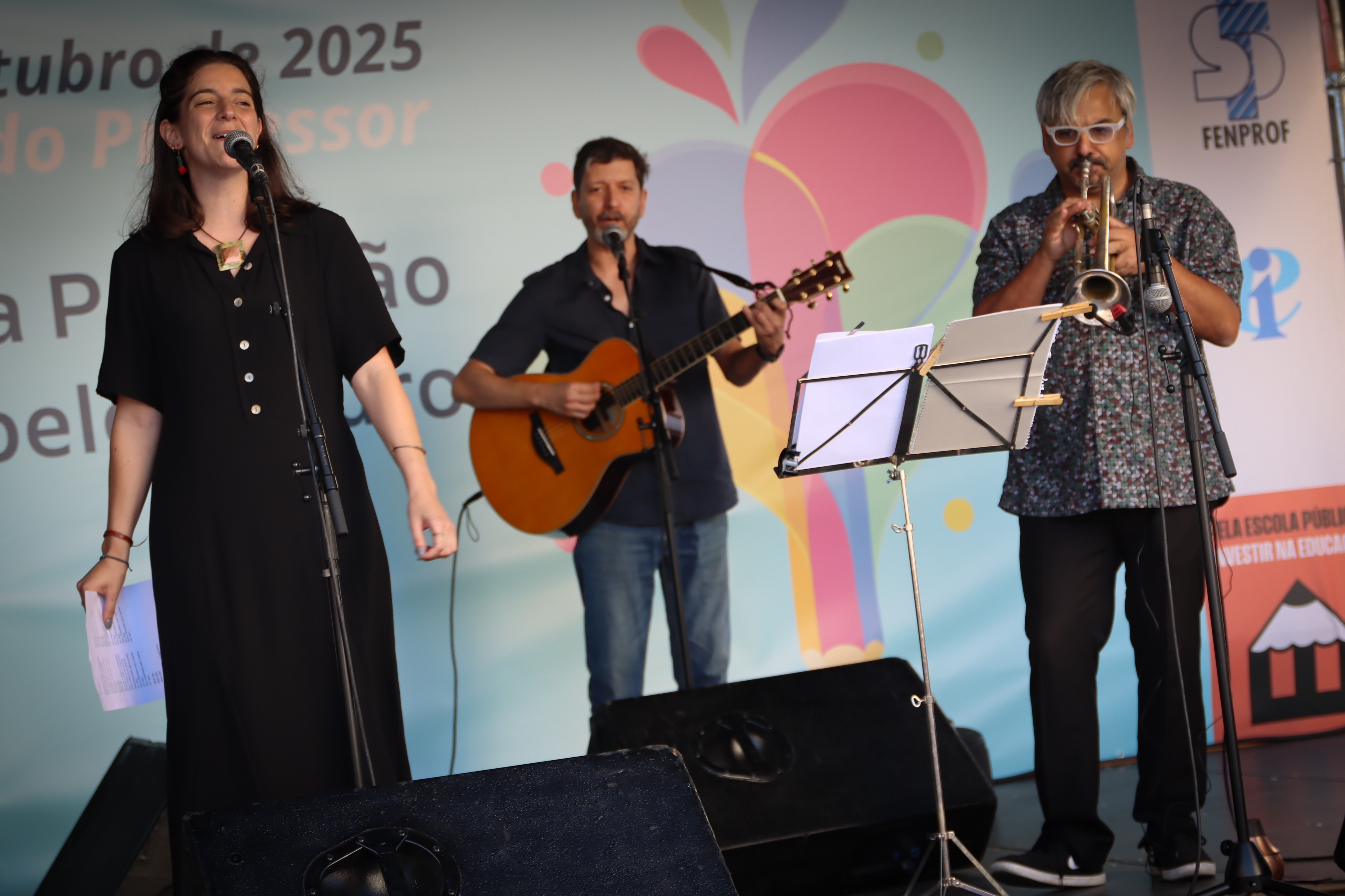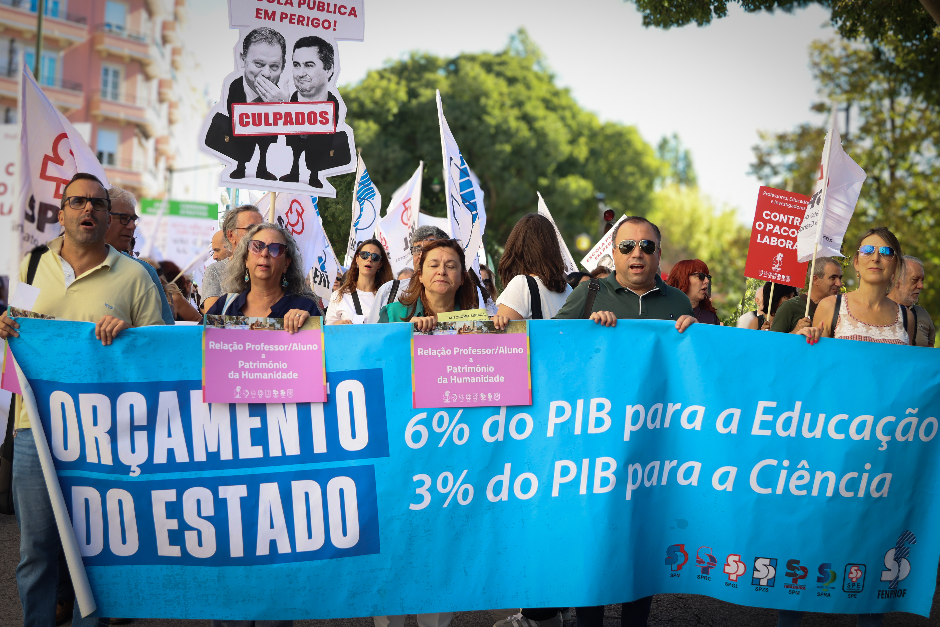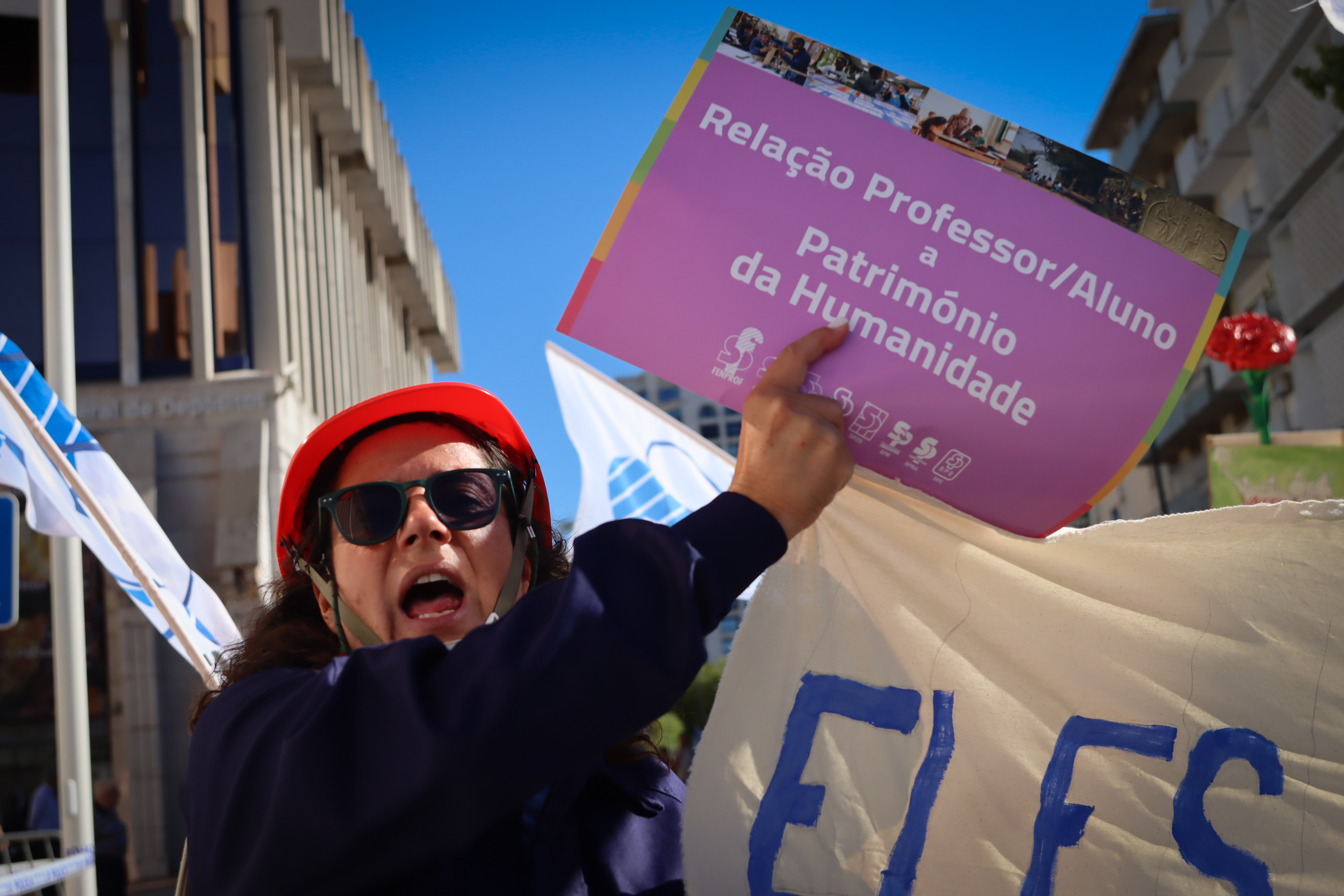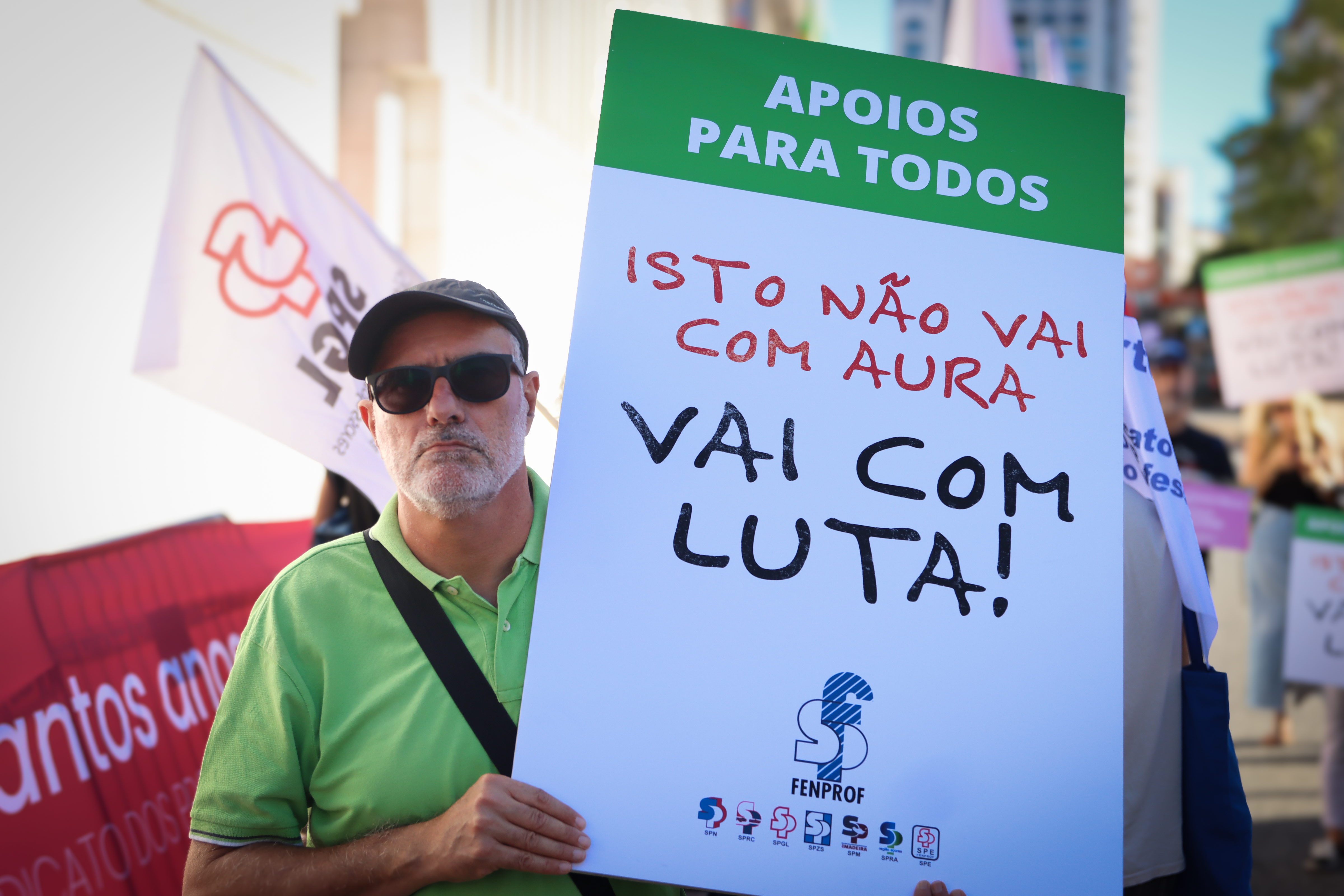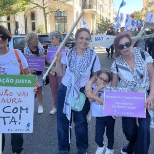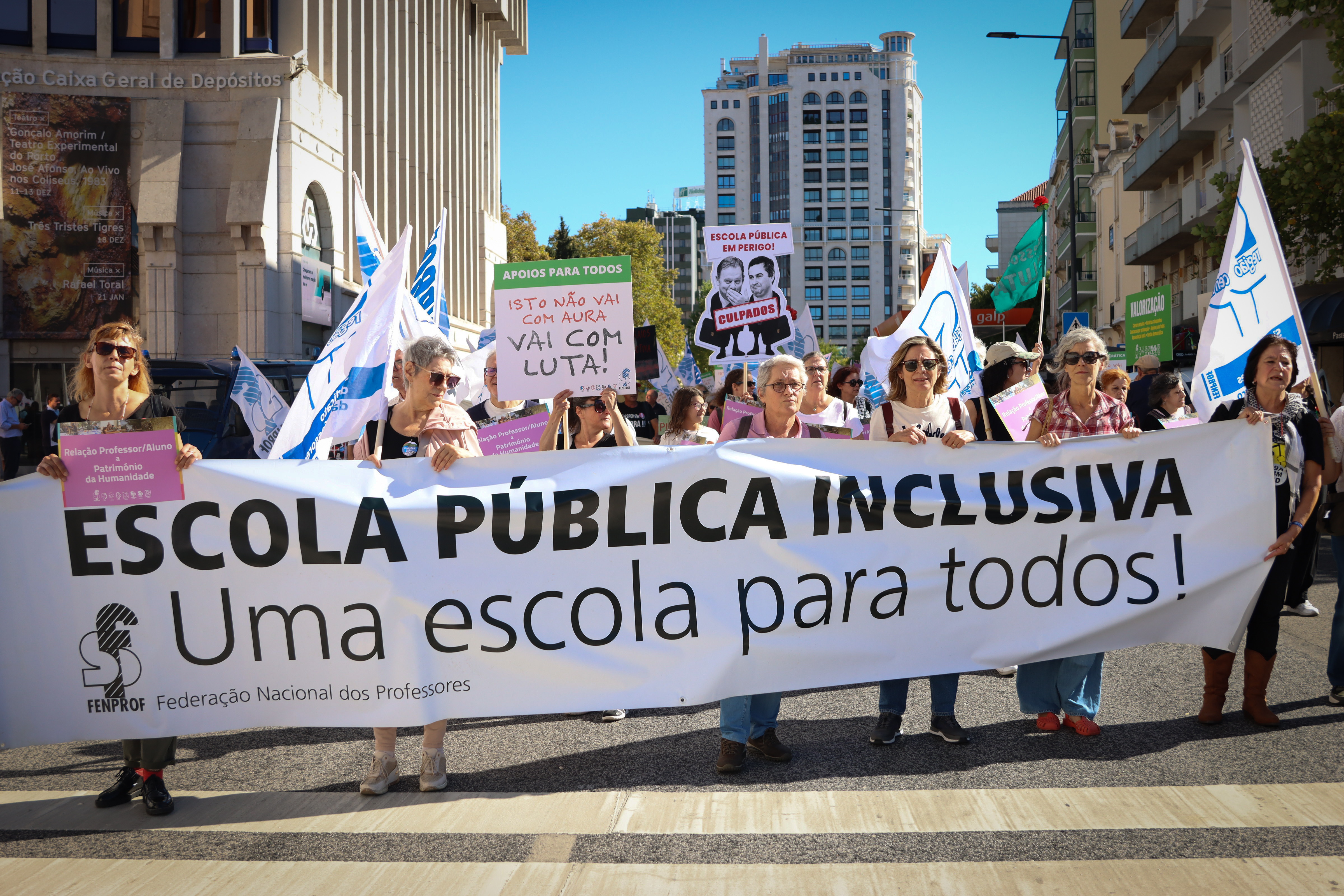 A FENPROF celebrou o 5 de outubro, Dia Mundial dos Professores, este sábado, dia 4 de outubro, com uma ação de luta em Lisboa, com concentração e desfile, desde o Jardim do Arco do Cego até ao edifício sede da Presidência do Conselho de Ministros, para lembrar ao governo os compromissos assumidos internacionalmente, reclamar de novo a valorização da profissão docente e reafirmar que a Educação não pode esperar!