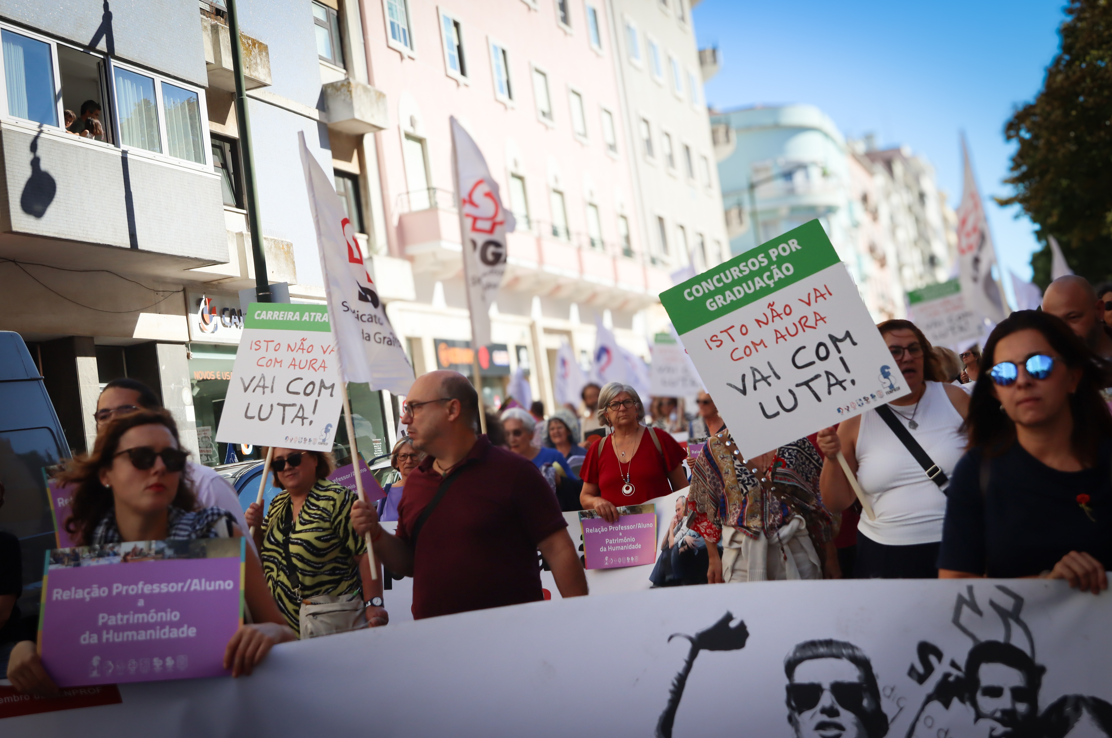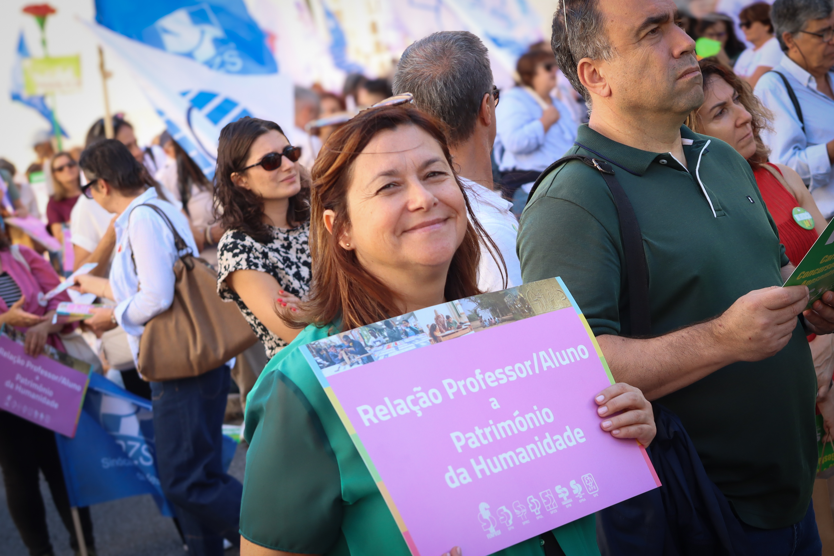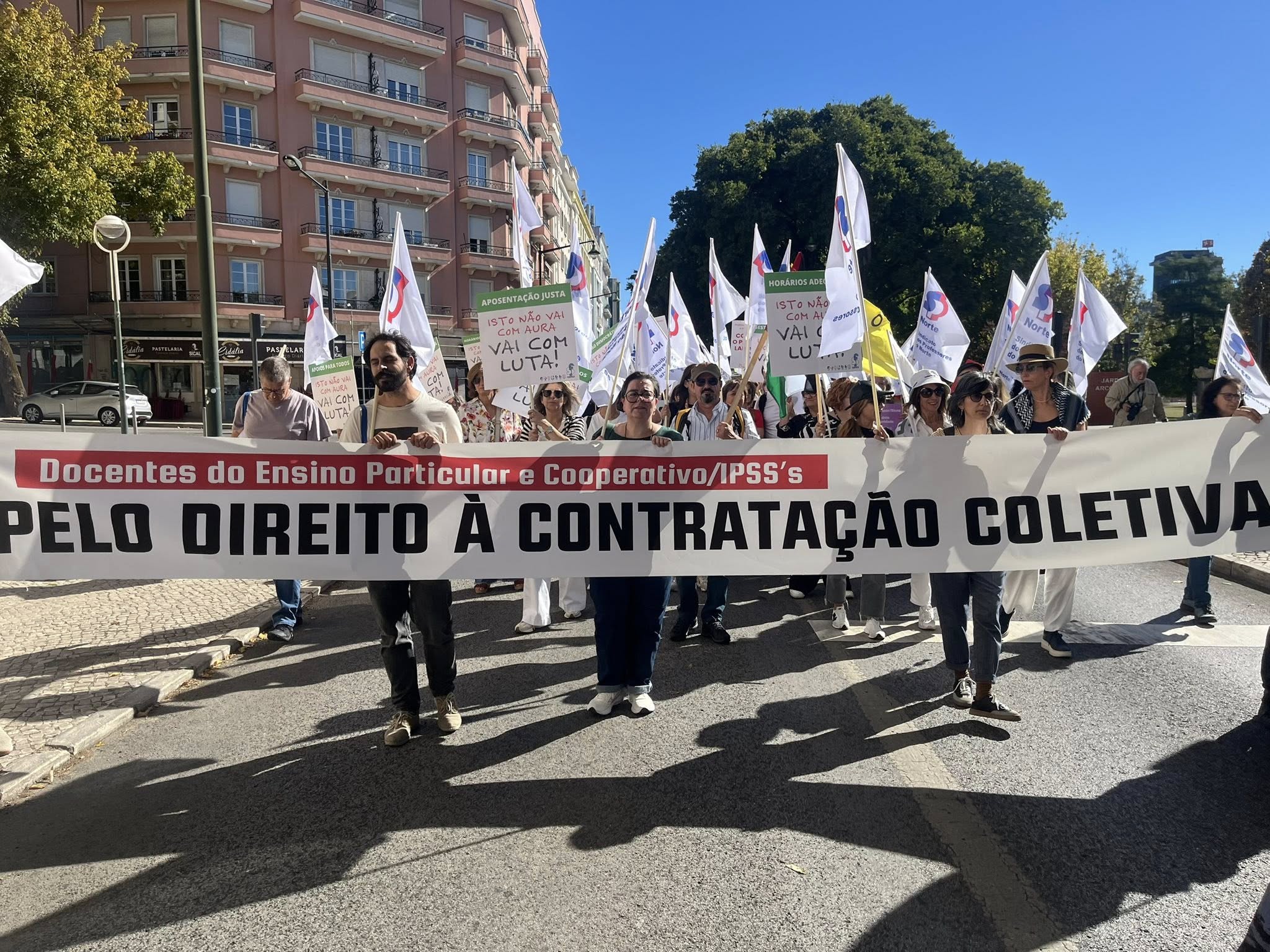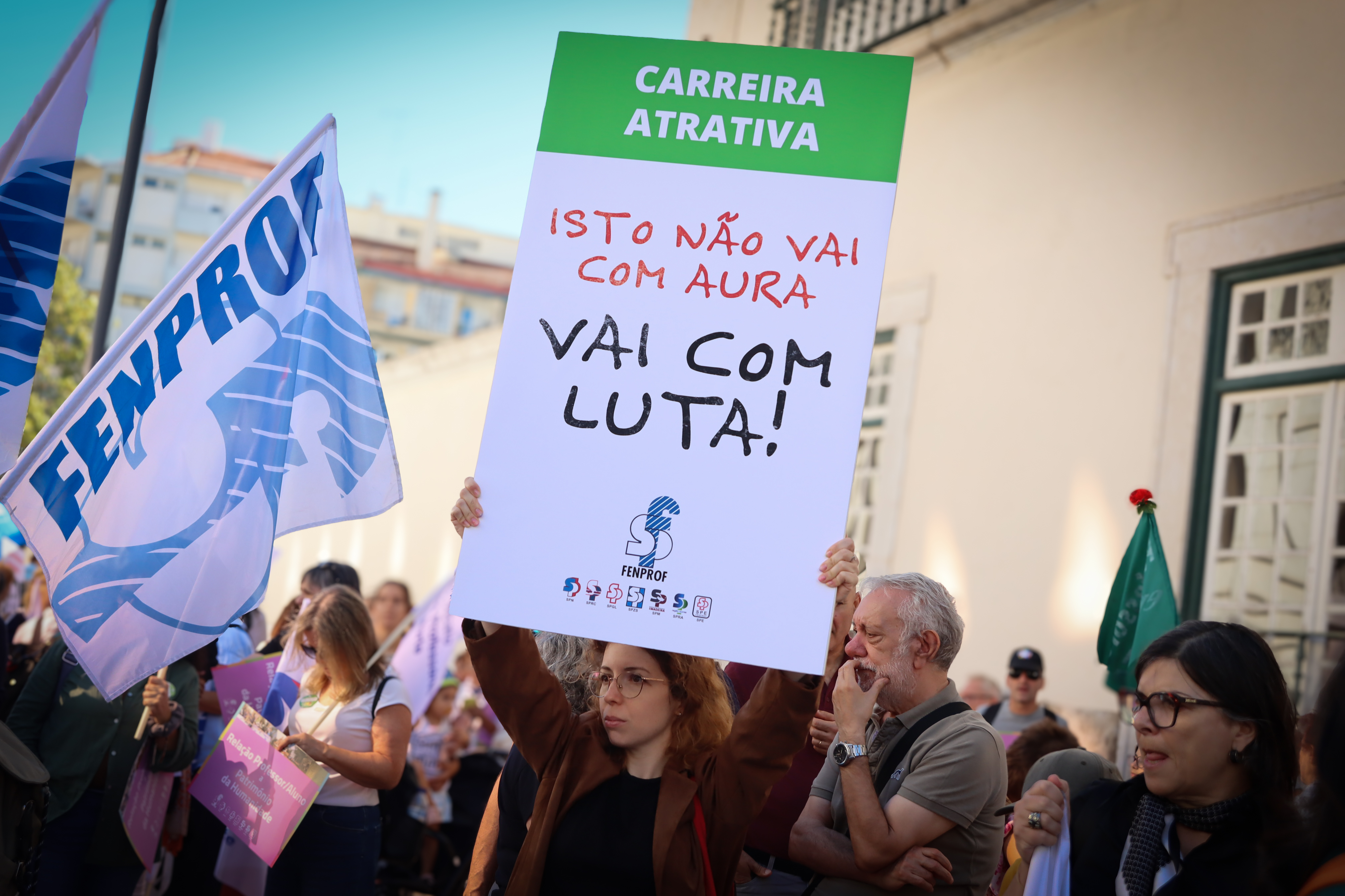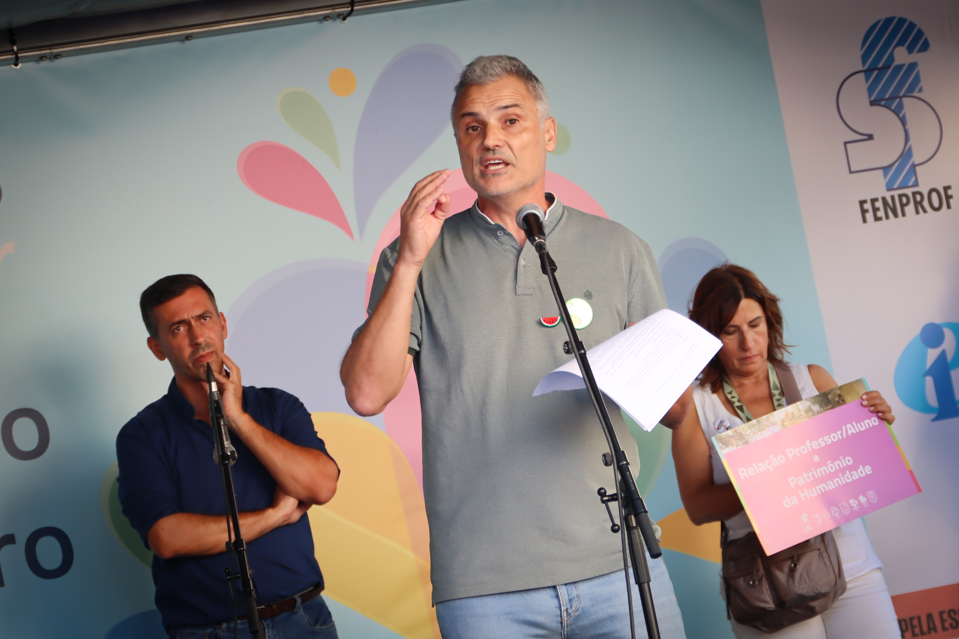 A FENPROF celebrou o 5 de outubro, Dia Mundial dos Professores, este sábado, dia 4 de outubro, com uma ação de luta em Lisboa, com concentração e desfile, desde o Jardim do Arco do Cego até ao edifício sede da Presidência do Conselho de Ministros, para lembrar ao governo os compromissos assumidos internacionalmente, reclamar de novo a valorização da profissão docente e reafirmar que a Educação não pode esperar!