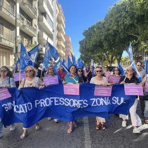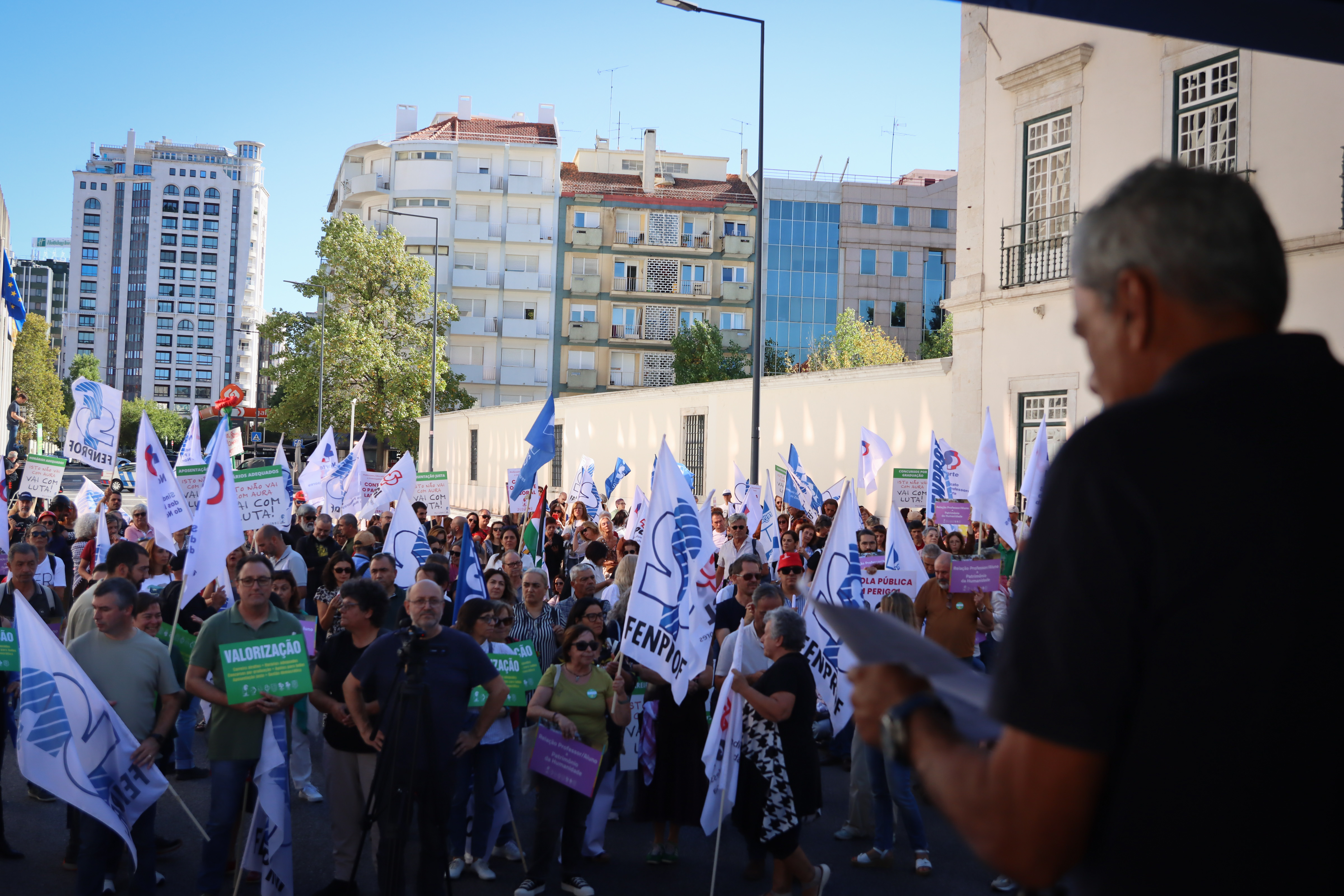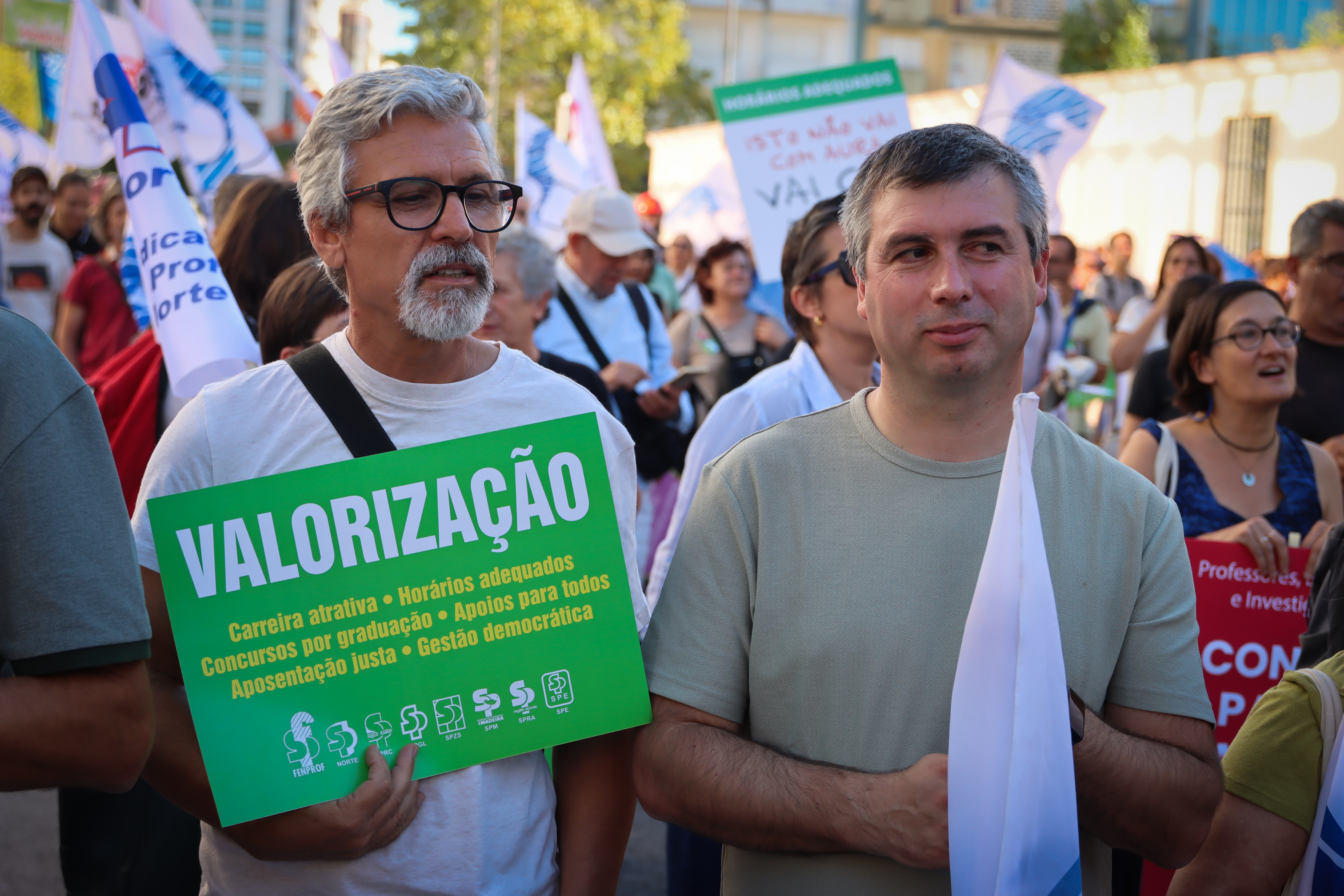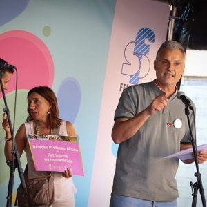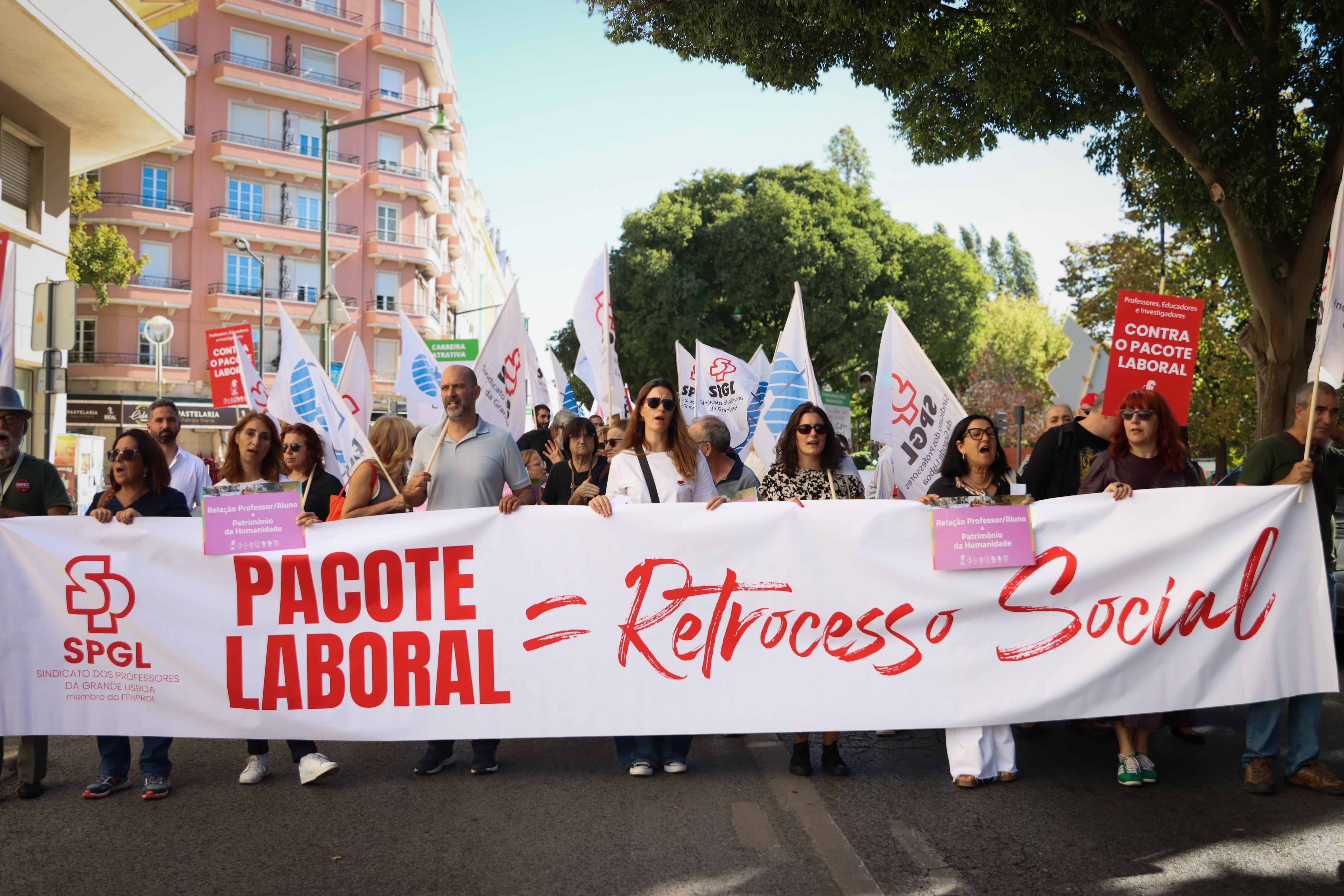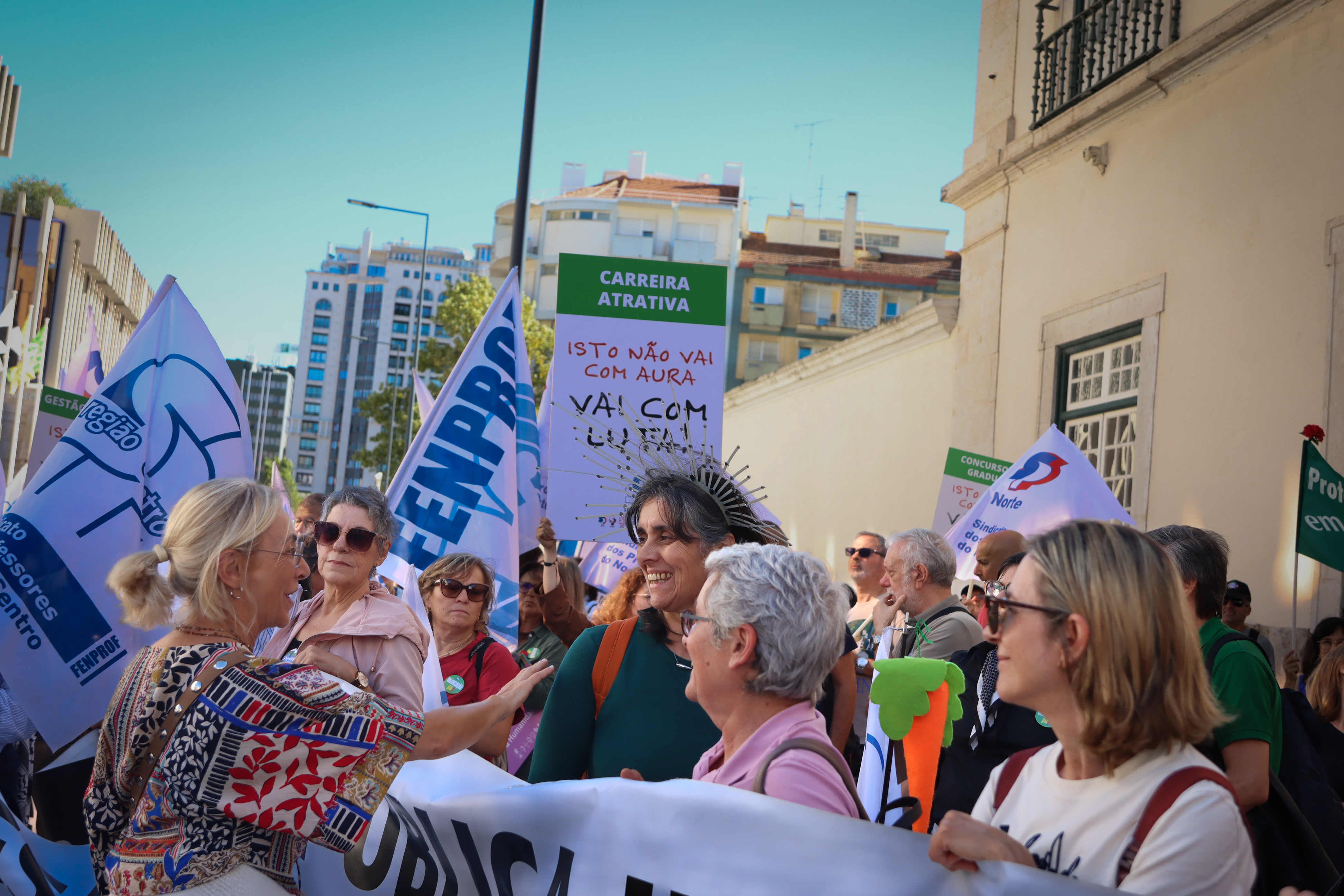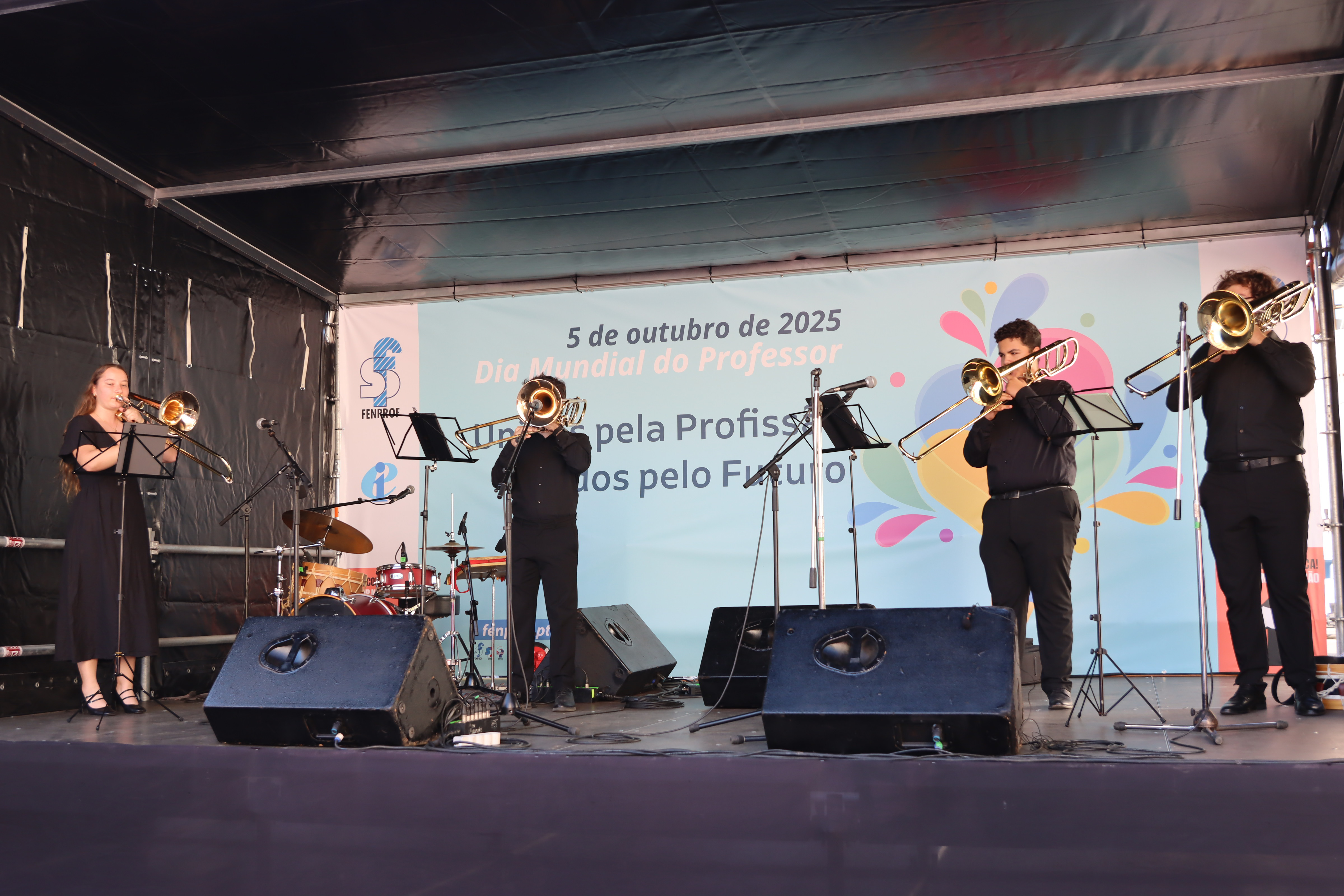 A FENPROF celebrou o 5 de outubro, Dia Mundial dos Professores, este sábado, dia 4 de outubro, com uma ação de luta em Lisboa, com concentração e desfile, desde o Jardim do Arco do Cego até ao edifício sede da Presidência do Conselho de Ministros, para lembrar ao governo os compromissos assumidos internacionalmente, reclamar de novo a valorização da profissão docente e reafirmar que a Educação não pode esperar!