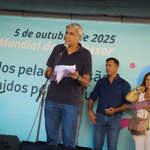 O lema escolhido pela Internacional da Educação para 2025 – «Unidos pelos Professores, Unidos pelo Futuro» – faz eco do Consenso de Santiago, saído da recente Cimeira da UNESCO sobre os Professores, onde se conclui que sem professores não há futuro e se apela a todos os governos e à comunidade internacional para que invistam nos docentes e os apoiem na criação de um futuro pacífico, justo e sustentável para todos.