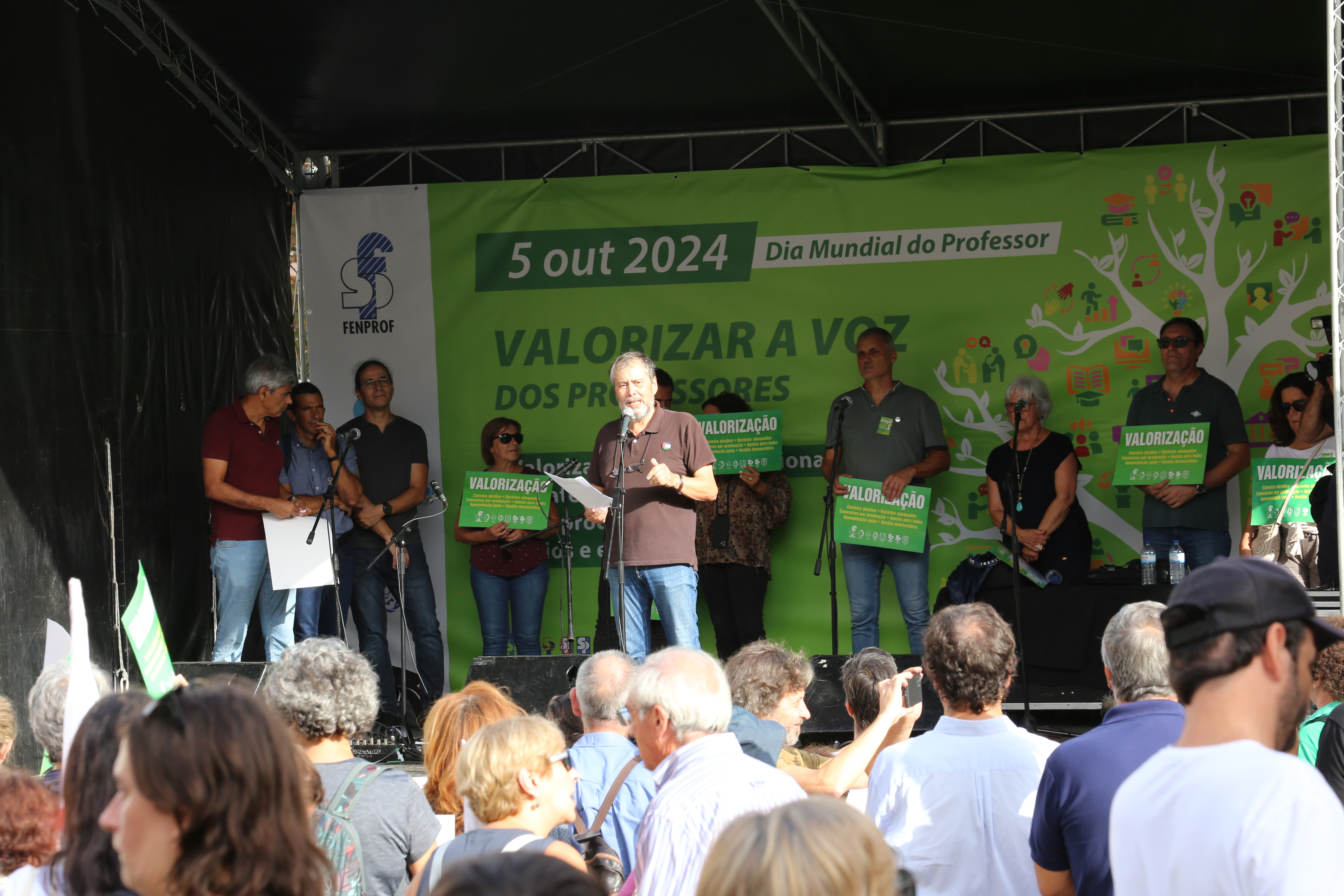Em 5 de outubro, estamos a pouco mais de uma semana da apresentação da proposta de lei do governo para o OE 2025, a duas semanas de se iniciar o processo de revisão do Estatuto da Carreira Docente, em plena revisão do regime de formação de docentes e em vias de serem anunciadas datas para introduzir alterações em outros regimes legais, tal como já foi anunciado, designadamente: concursos de professores, mobilidade por doença ou gestão das escolas. Esta foi, assim, a oportunidade de reafirmar as posições dos docentes em relação a todos estes processos, que deverão ser efetivamente negociais e dos quais deverão resultar a valorização da profissão docente e a valorização e a democratização da vida das escolas.