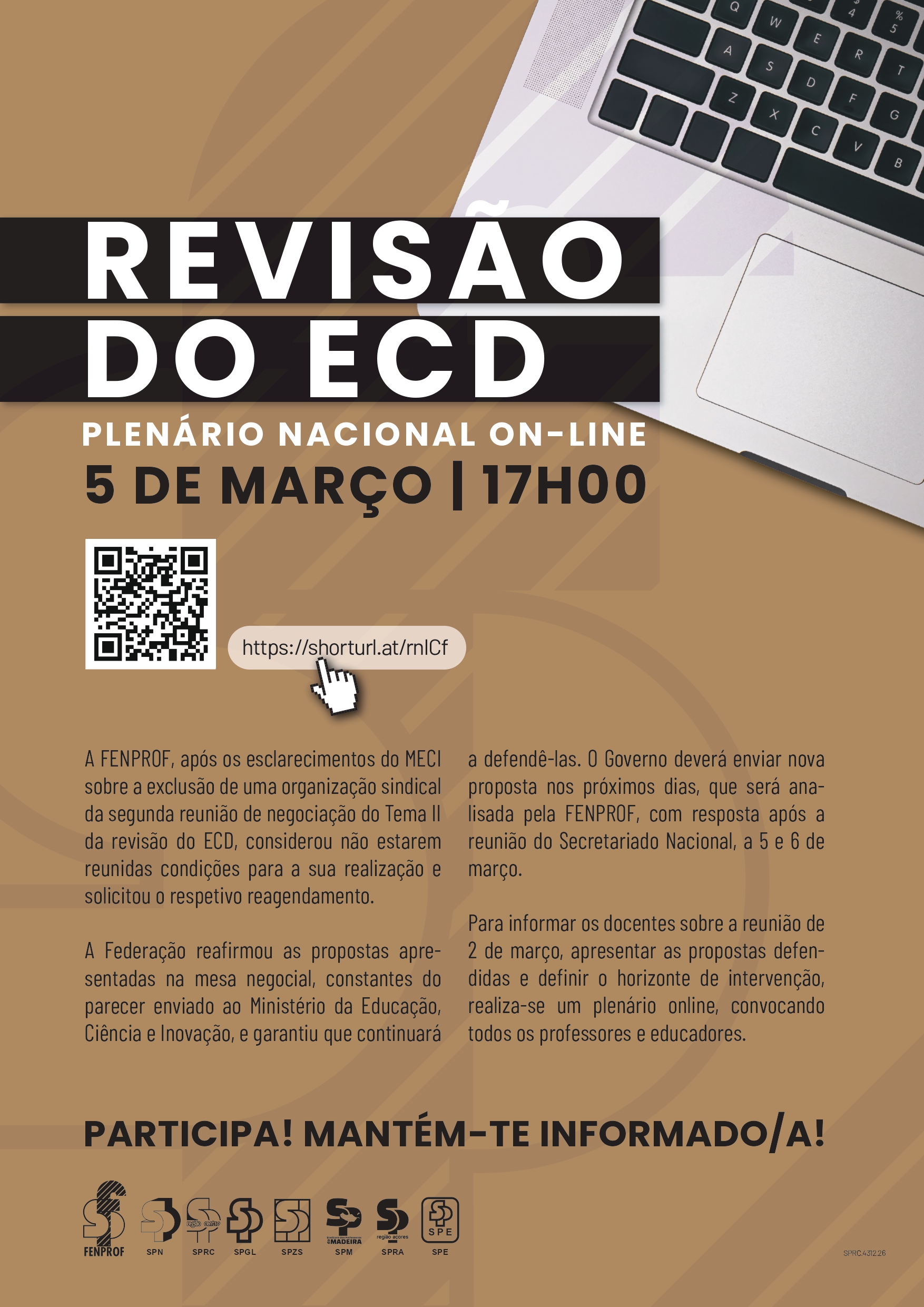 numa reunião on-line, aberta a todos os docentes, no dia 5 de março. Para participar, basta clicar neste link a partir das 17 horas.