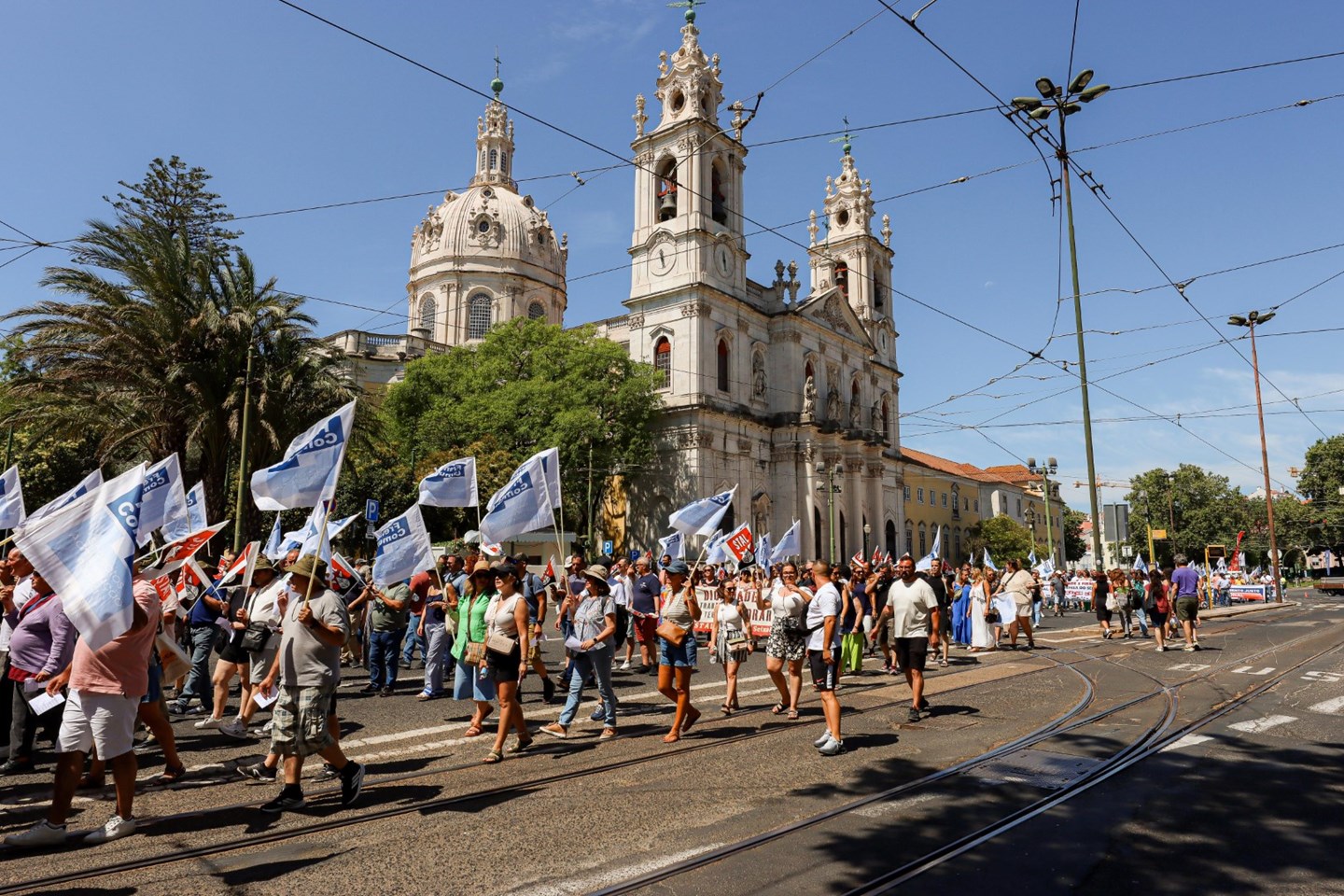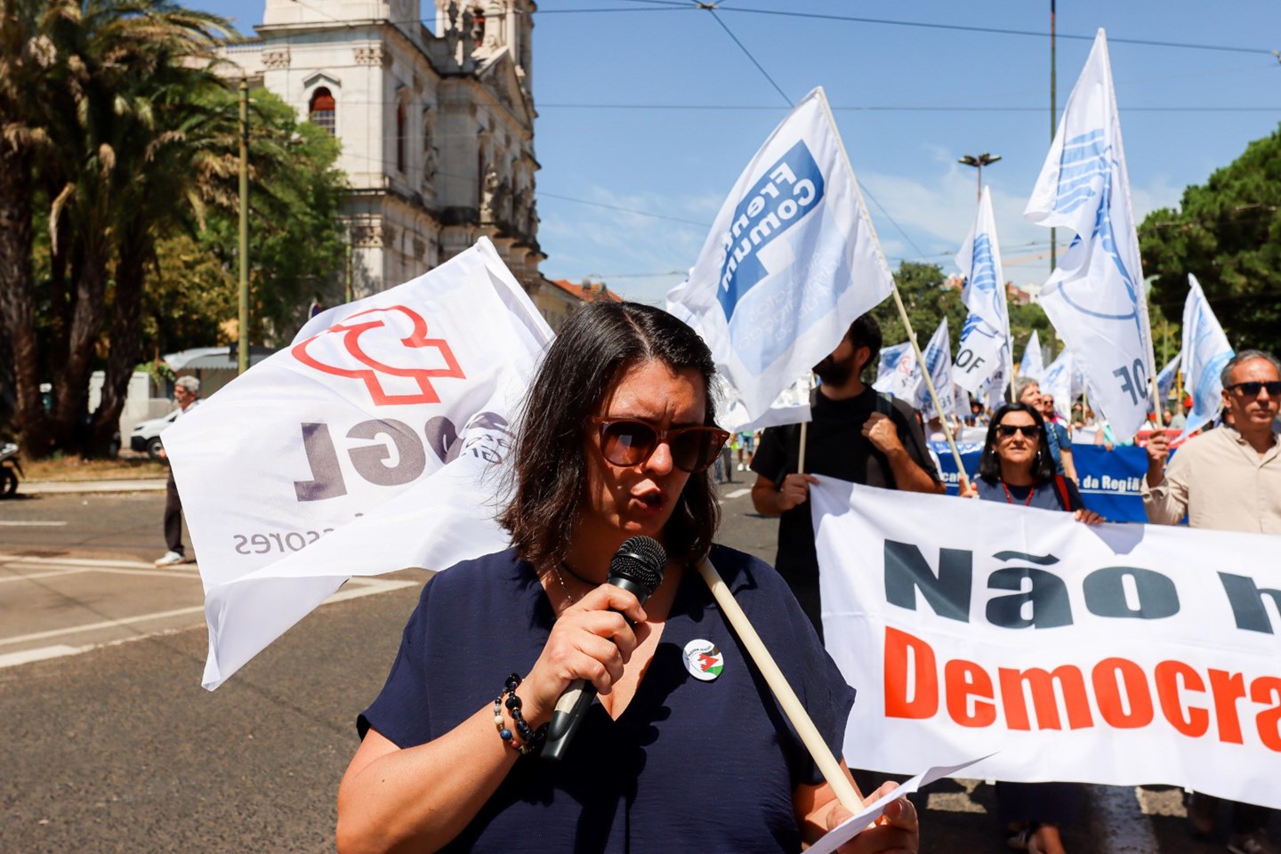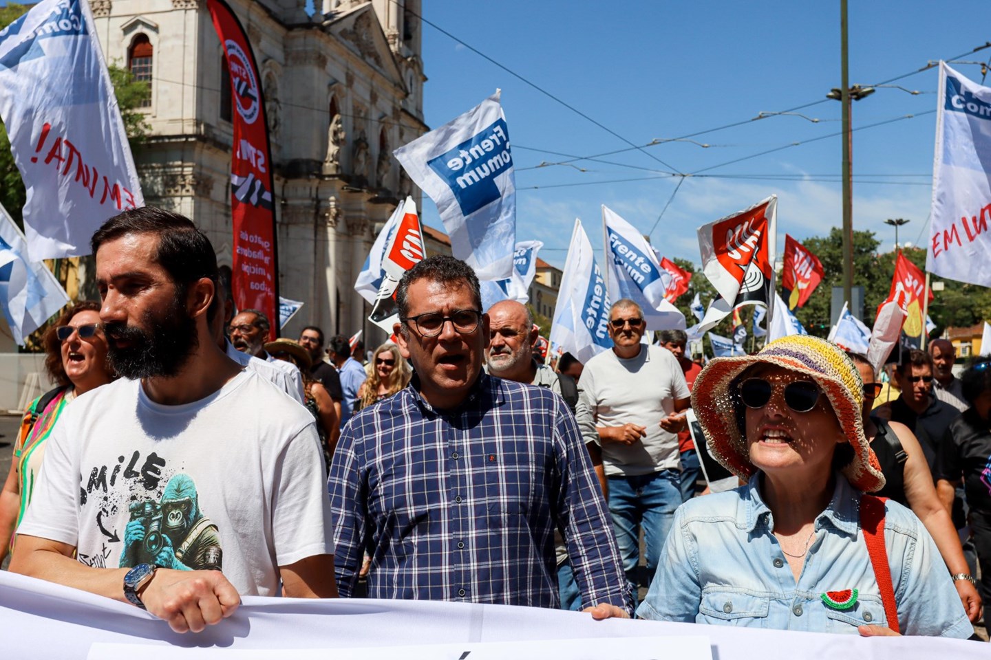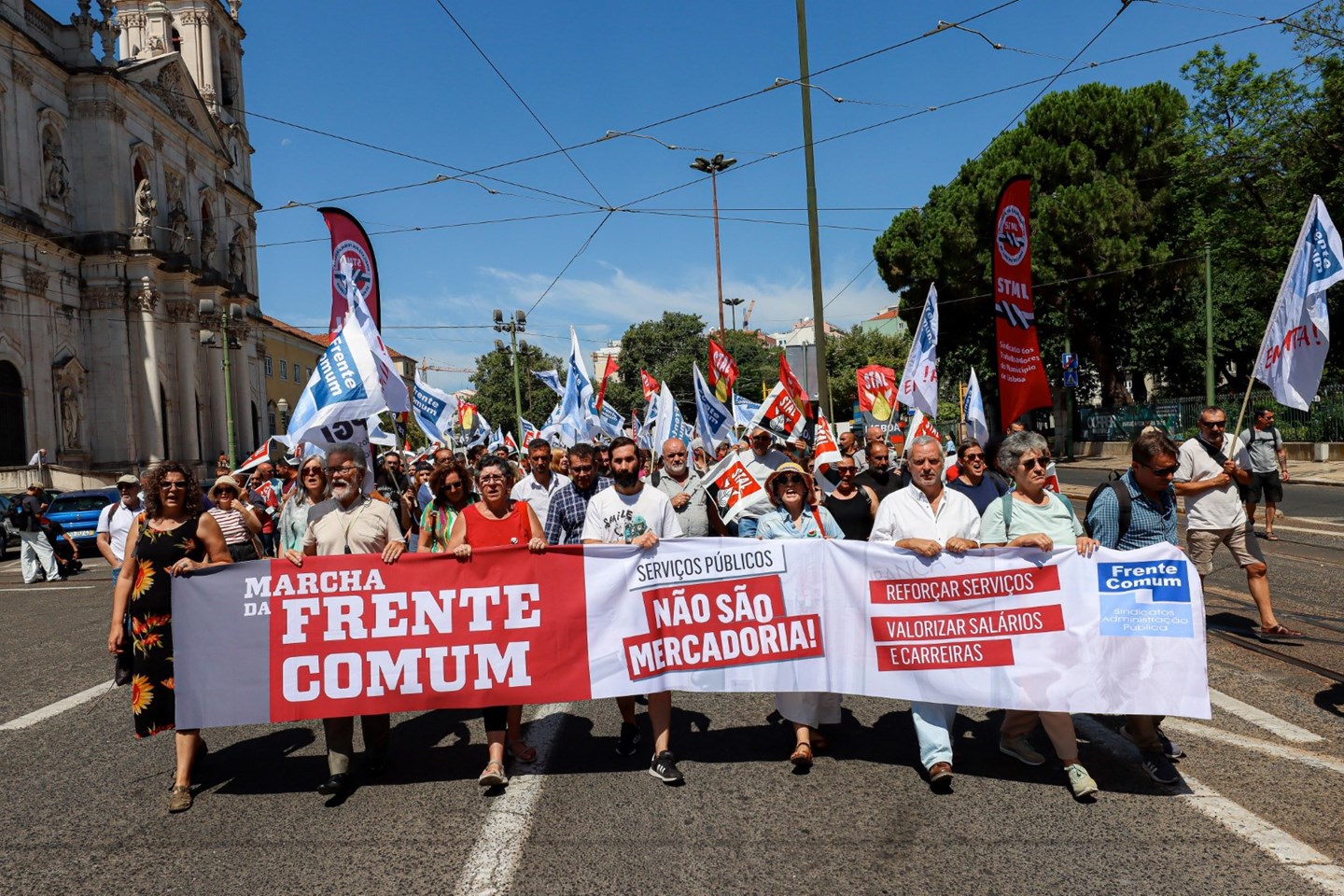 «Serviços Públicos não são mercadoria!» foi o lema da Marcha da Frente Comum de Sindicatos da Administração Pública que levou à rua, em Lisboa (Largo da Estrela em direção ao Palácio de São Bento), esta quinta-feira, 17 de julho de 2025, centenas de activistas, delegados e dirigentes sindicais.