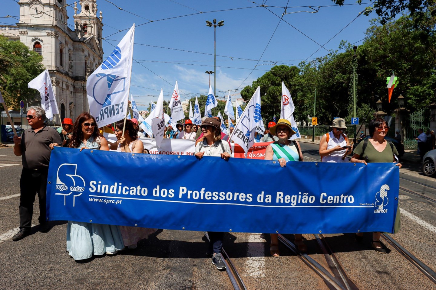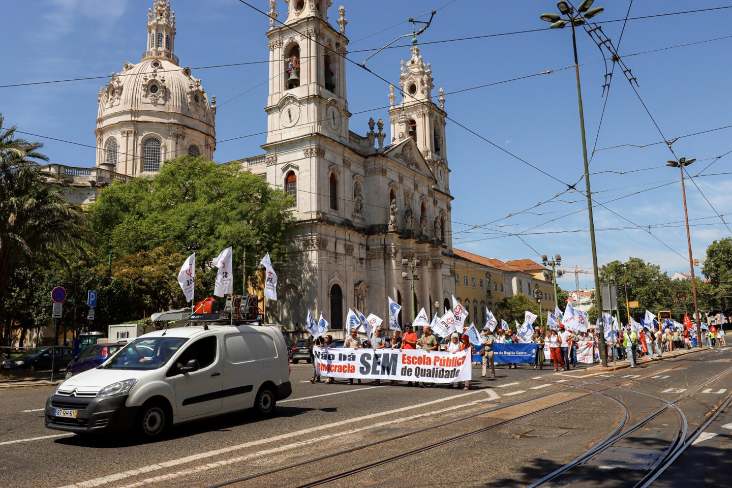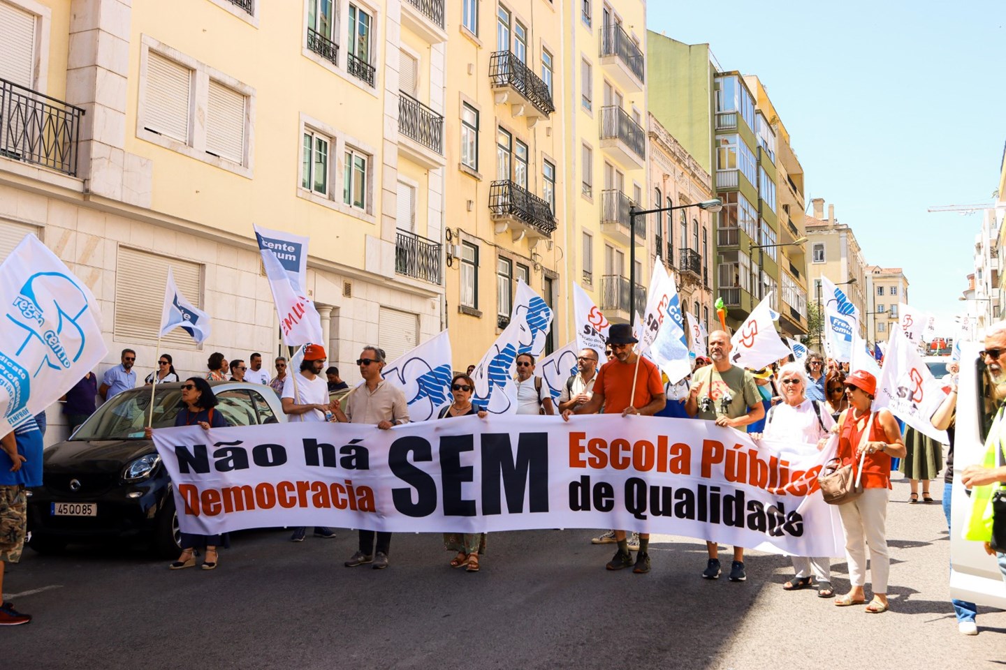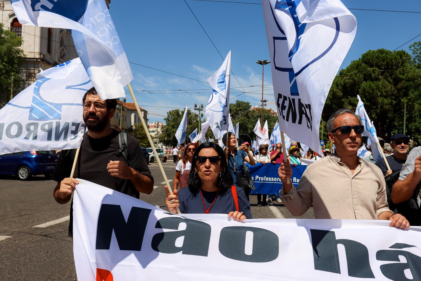 Em dia de debate do Estado da Nação, na Assembleia da República, manifestantes, incluindo professores, educadores e investigadores, integrados na comitiva da FENPROF, exigiram ao primeiro-ministro e ao governo o reforço dos Serviços Públicos e a valorização dos seus trabalhadores.