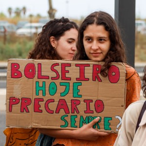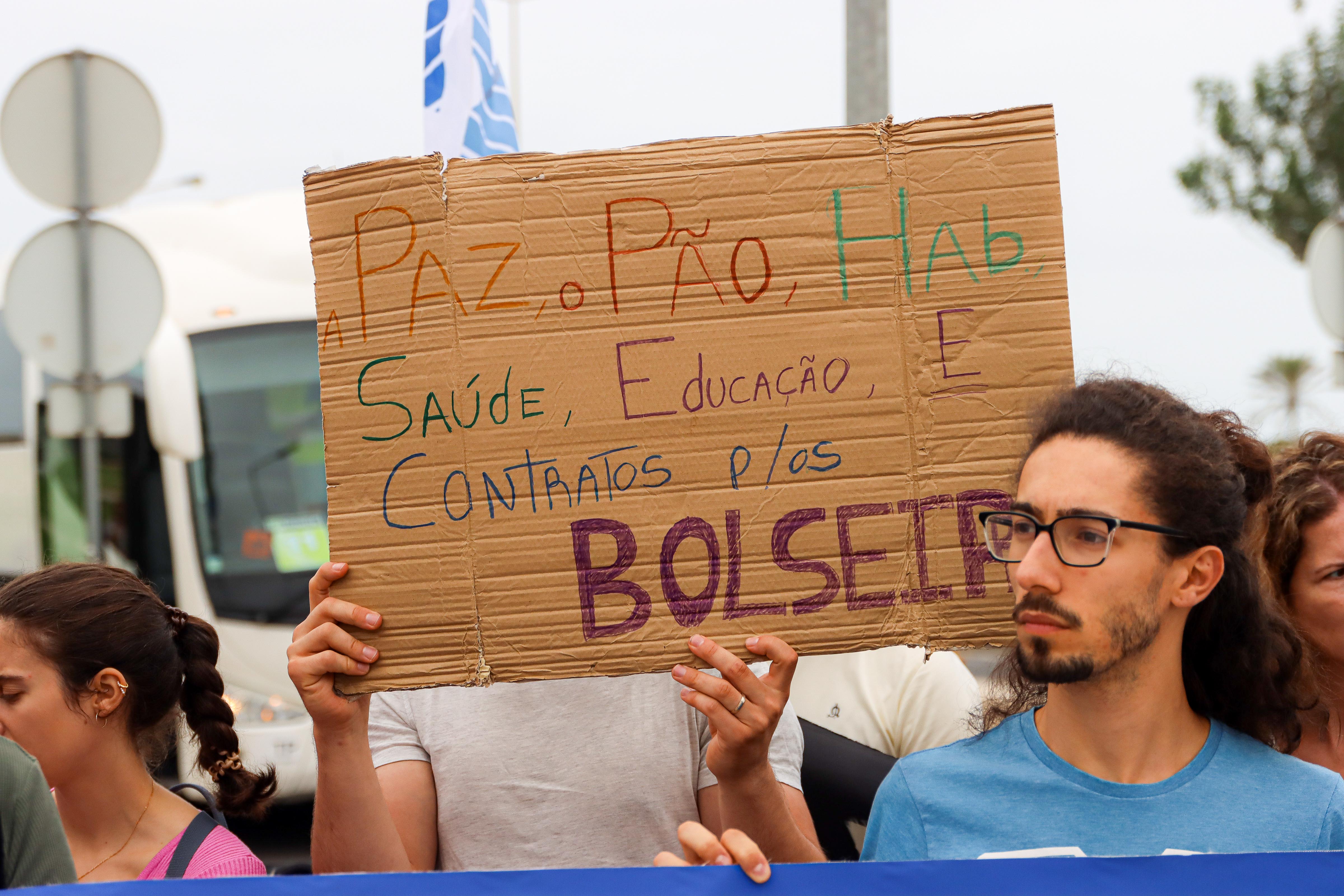 Tiago Dias, coordenador do Departamento do Ensino Superior e Investigação da FENPROF, lembrou as três premissas que presidiram à realização do protesto: contra a precariedade, por mais investimento e mais democracia no ensino superior e na ciência.