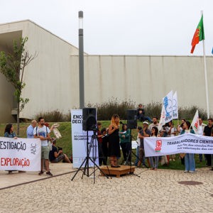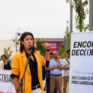 A Secretária de Estado da Ciência e Inovação, Helena Canhão, participou na sessão de abertura do Encontro Ciência 2025 e foi recebida pelos trabalhadores científicos em protesto, que lhe entregaram o Manifesto com as suas reivindicações.