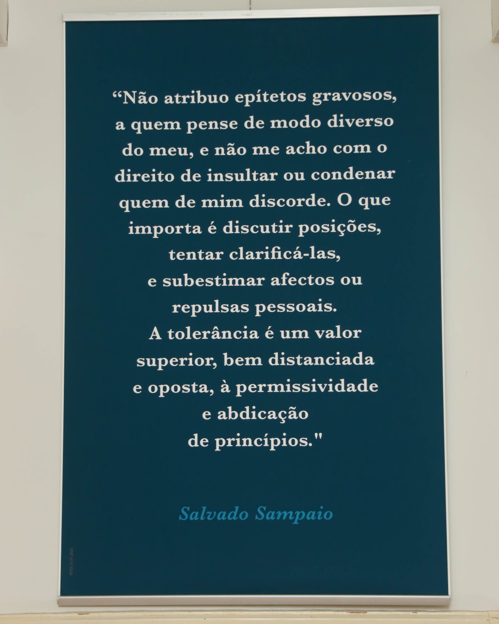 A figura, a personalidade, o trabalho e o exemplo de Salvado Sampaio de que se conhece a expressão “Gosto de ser contestado!” caracterizam o democrata que via o confronto como instrumento para ir ao encontro da luz.
