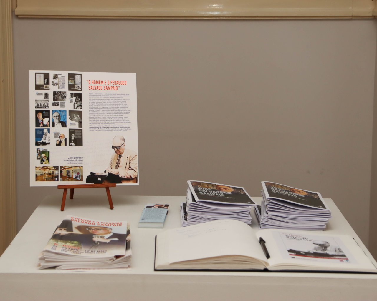 “O Homem e o Pedagogo José Salvado Sampaio” (1921-2006) foi exposta pela primeira vez em outubro de 2010, no âmbito das comemorações do Dia Mundial do Professor, no Fundão.