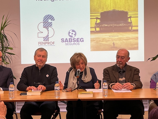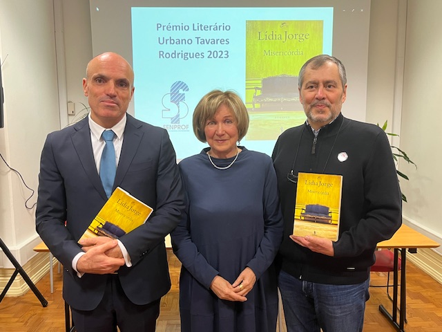 A entrega do prémio de novela e romance, instituído pela FENPROF em parceria com a SABSEG SEGUROS, realizou-se esta quarta-feira, 6 de dezembro, data do centenário do nascimento de Urbano Tavares Rodrigues. Na cerimónia, estiveram presentes, para além de Lídia Jorge, Mário Nogueira, Secretário-geral da FENPROF, Carlos Martins, Diretor Geral da SABSEG Seguros, Paulo Sucena e Paula Mendes Coelho, em representação do júri.