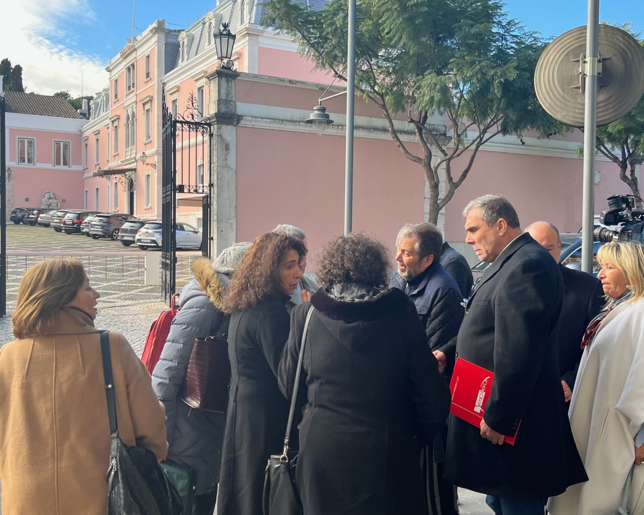 As nove organizações sindicais que estão em convergência nesta luta dos professores - ASPL, FENPROF, FNE, PRÓ-ORDEM, SEPLEU, SINAPE, SINDEP, SIPE e SPLIU - foram, esta quinta-feira, recebidas pela Presidência da República, onde expuseram os motivos que estão a levar os professores e educadores a esta grande luta. Razõesque estão relacionadas com a proposta do Ministério da Educação para a revisão do regime de concursos, mas também com a carreira - recuperação do tempo de serviço, vagas para progressão e quotas na avaliação -, com as condições de trabalho, a Mobilidade por Doença, o combate à precariedade e a aposentação, entre outras.