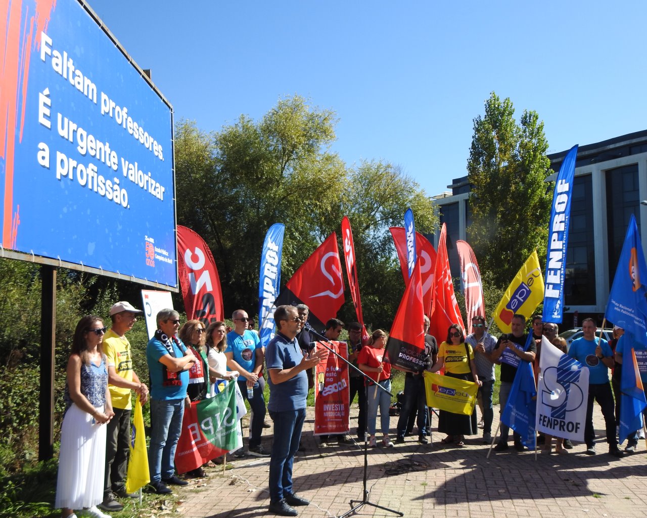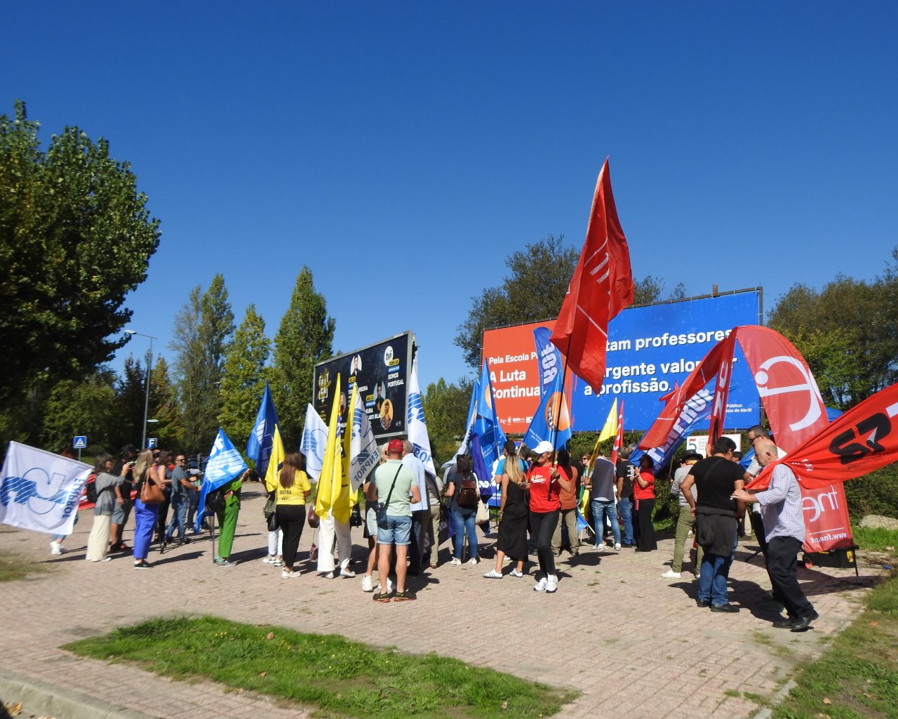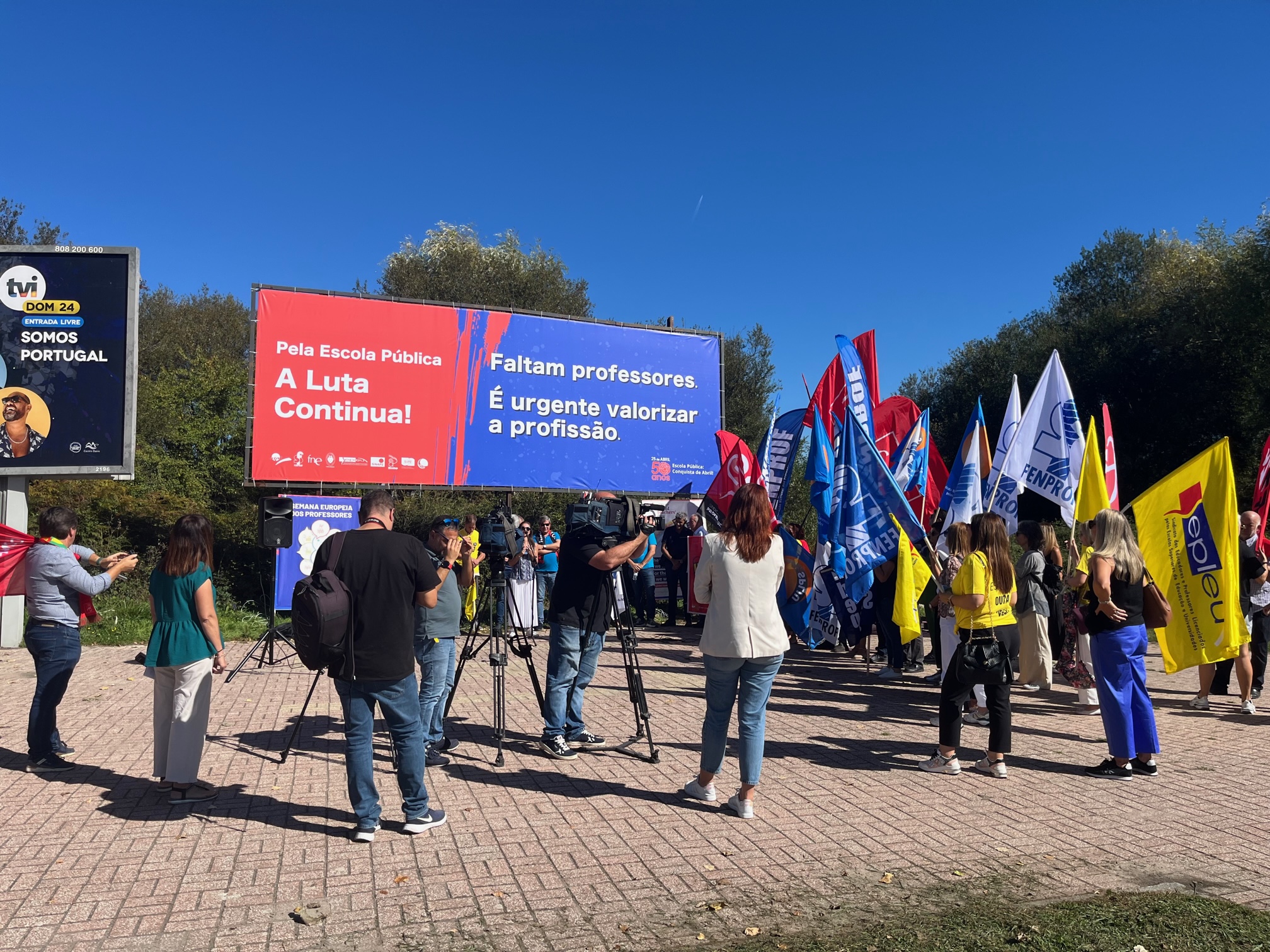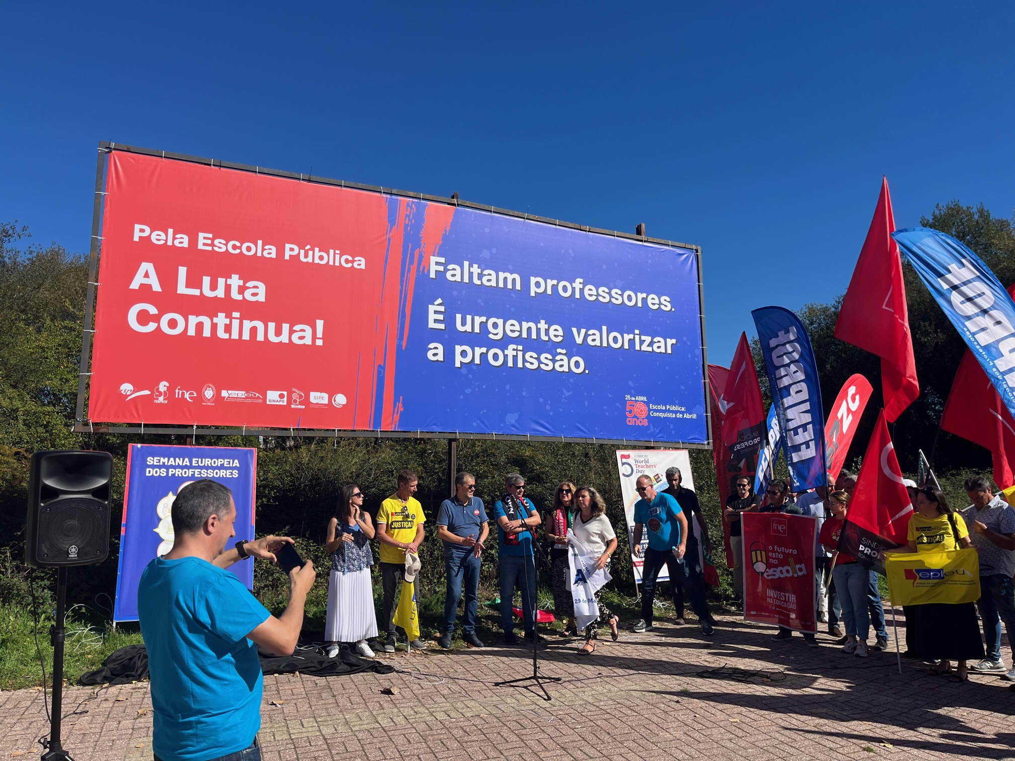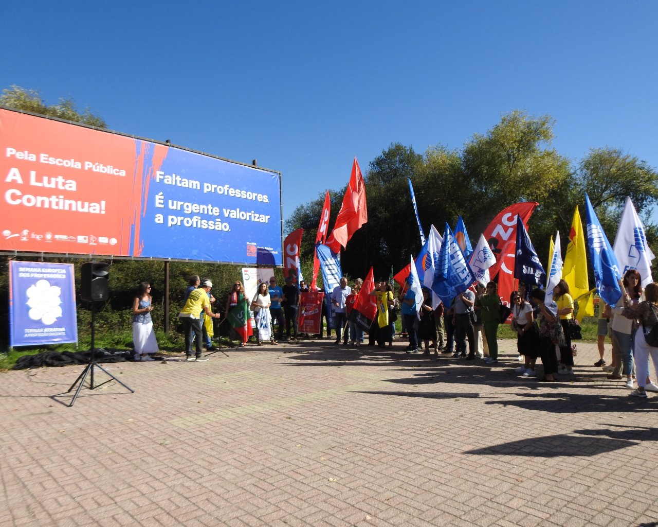 Na Semana Europeia dos Professores, ASPL, FENPROF, FNE, PRÓ-ORDEM, SEPLEU, SINAPE, SINDEP, SIPE e SPLIU inauguraram 12 painéis "Em Defesa da Escola Pública" que vão estar nas principais vias de circulação automóvel, de norte a sul, da A28, no Minho, até à EN 125 no Algarve, passando, entre outras, por A1, A8 ou A2, ao longo do 1.º período letivo.