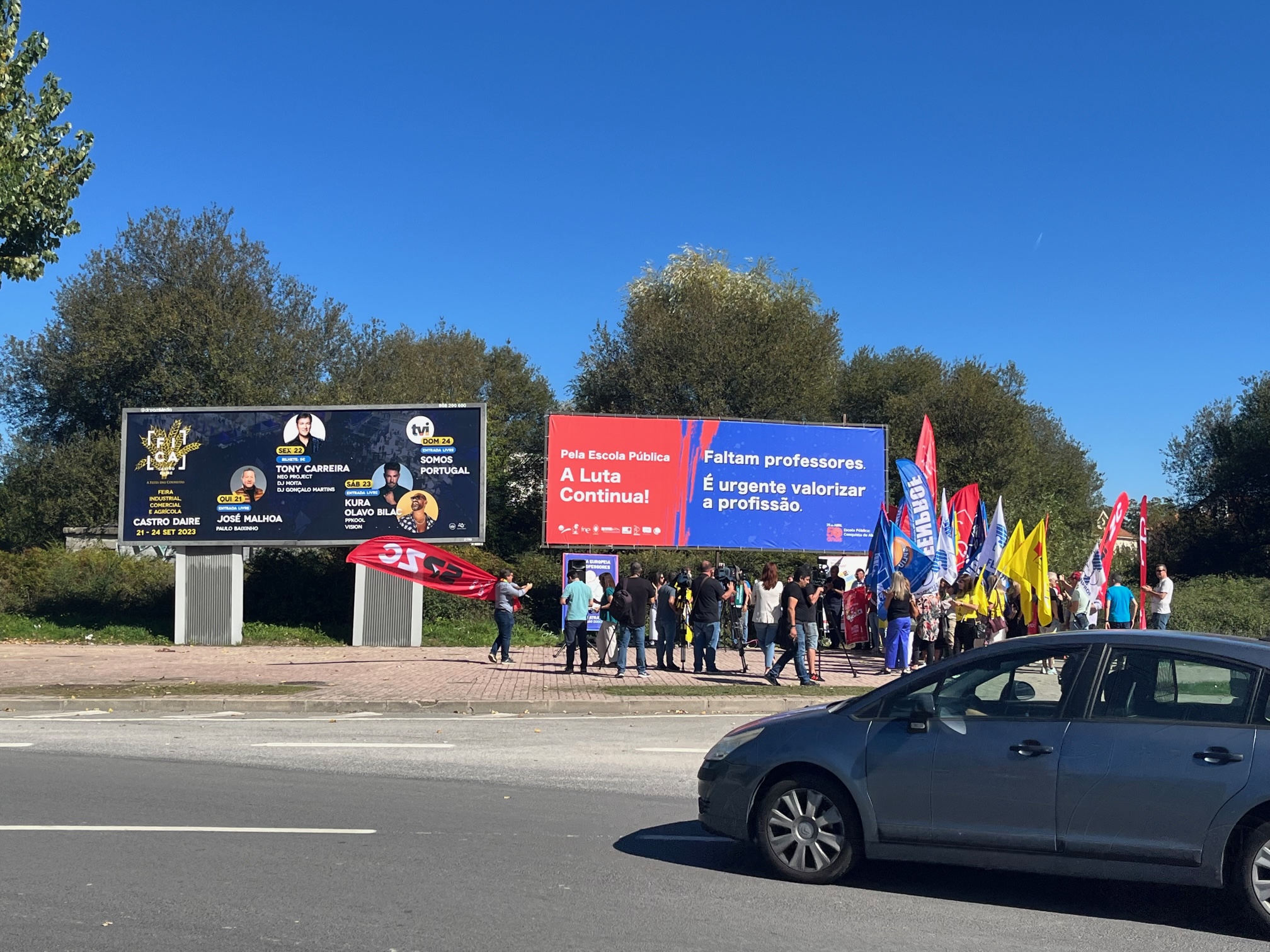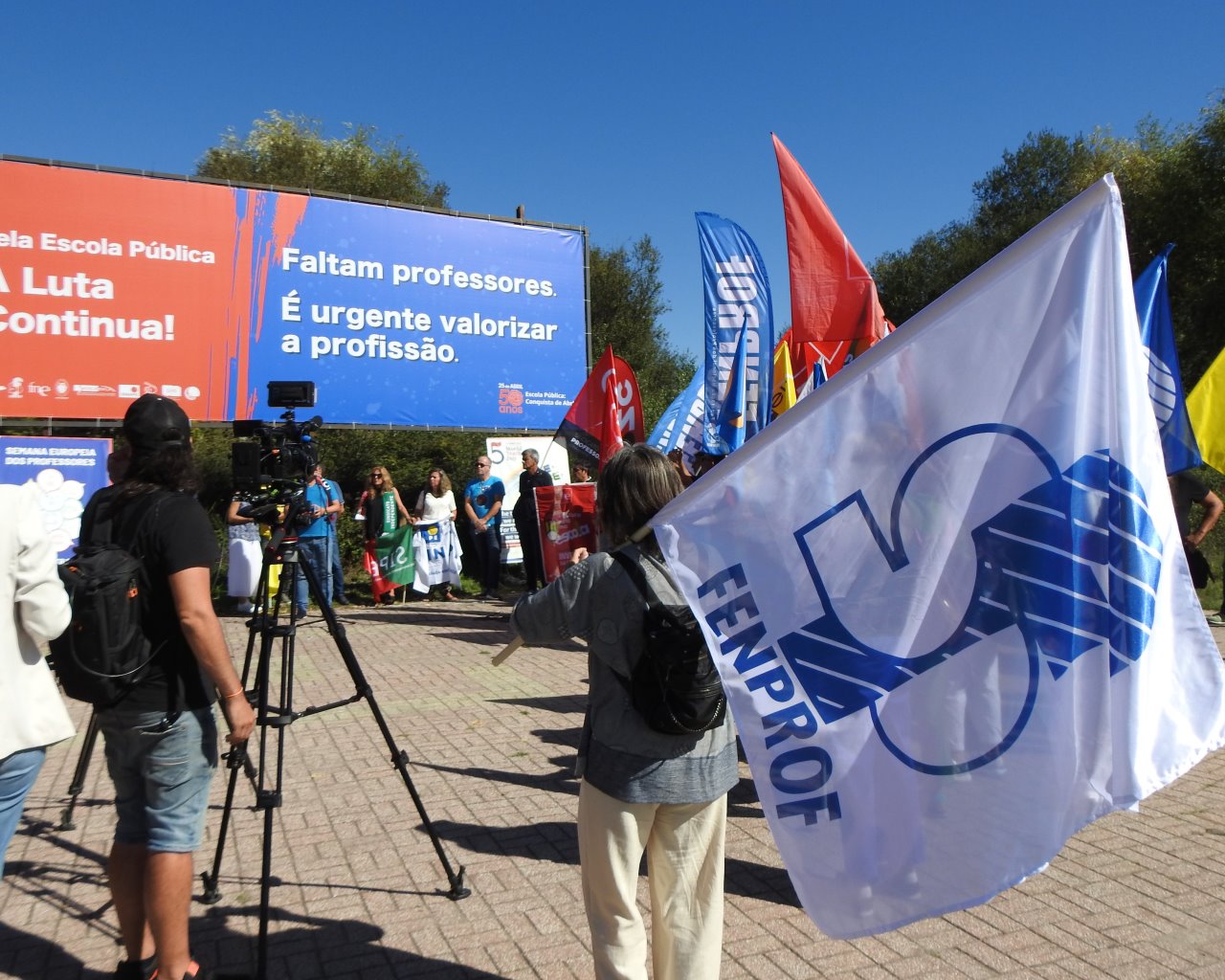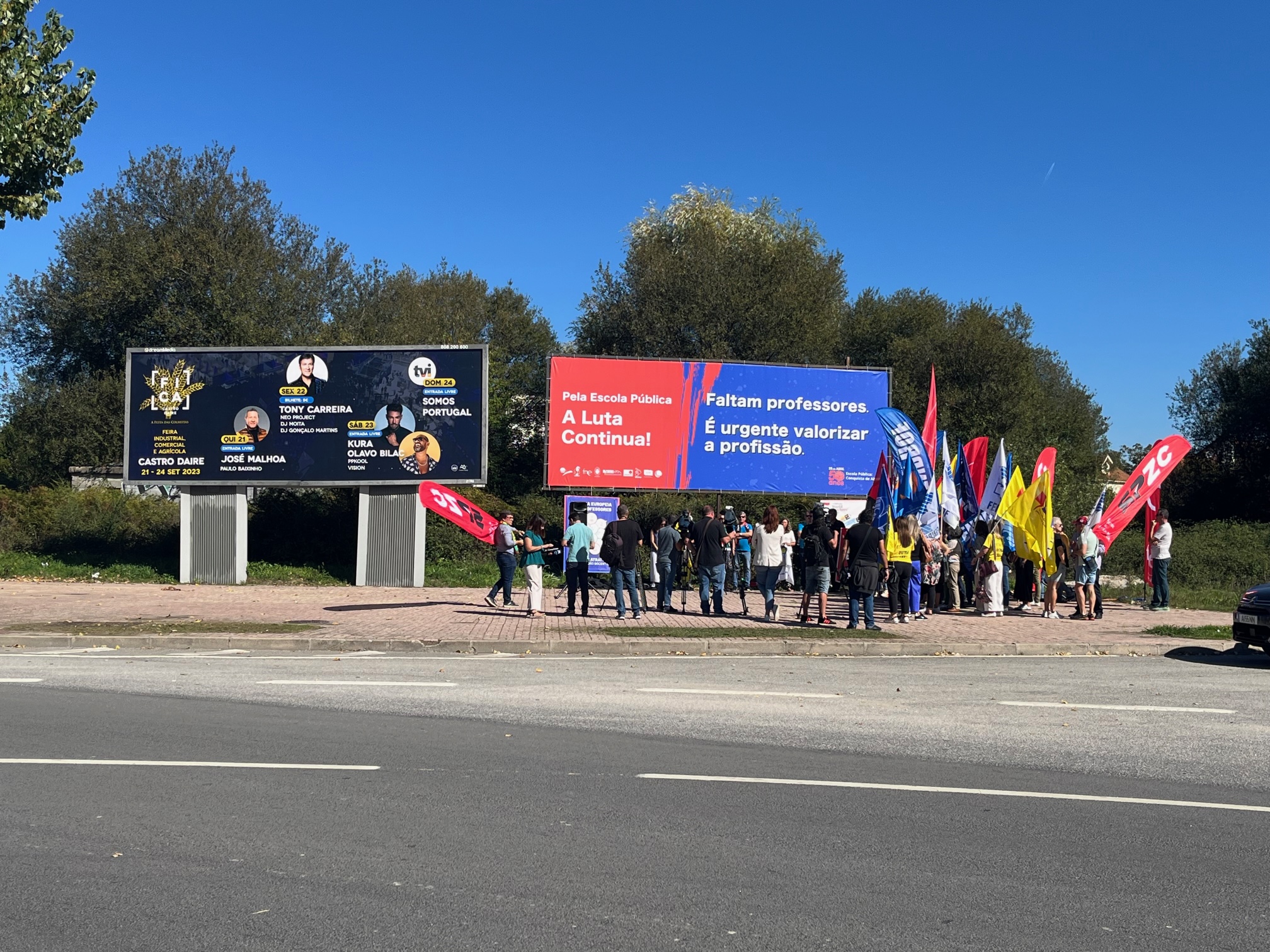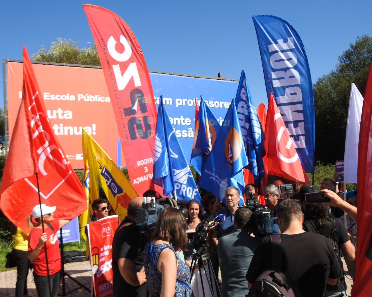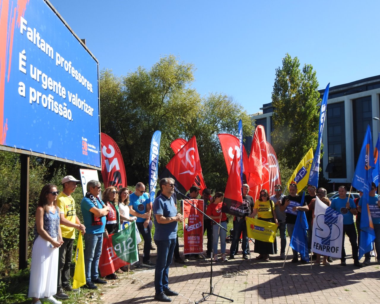 Na Semana Europeia dos Professores, ASPL, FENPROF, FNE, PRÓ-ORDEM, SEPLEU, SINAPE, SINDEP, SIPE e SPLIU inauguraram 12 painéis "Em Defesa da Escola Pública" que vão estar nas principais vias de circulação automóvel, de norte a sul, da A28, no Minho, até à EN 125 no Algarve, passando, entre outras, por A1, A8 ou A2, ao longo do 1.º período letivo.