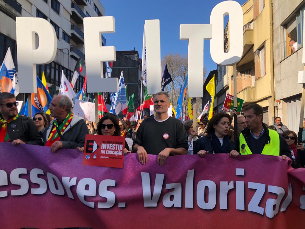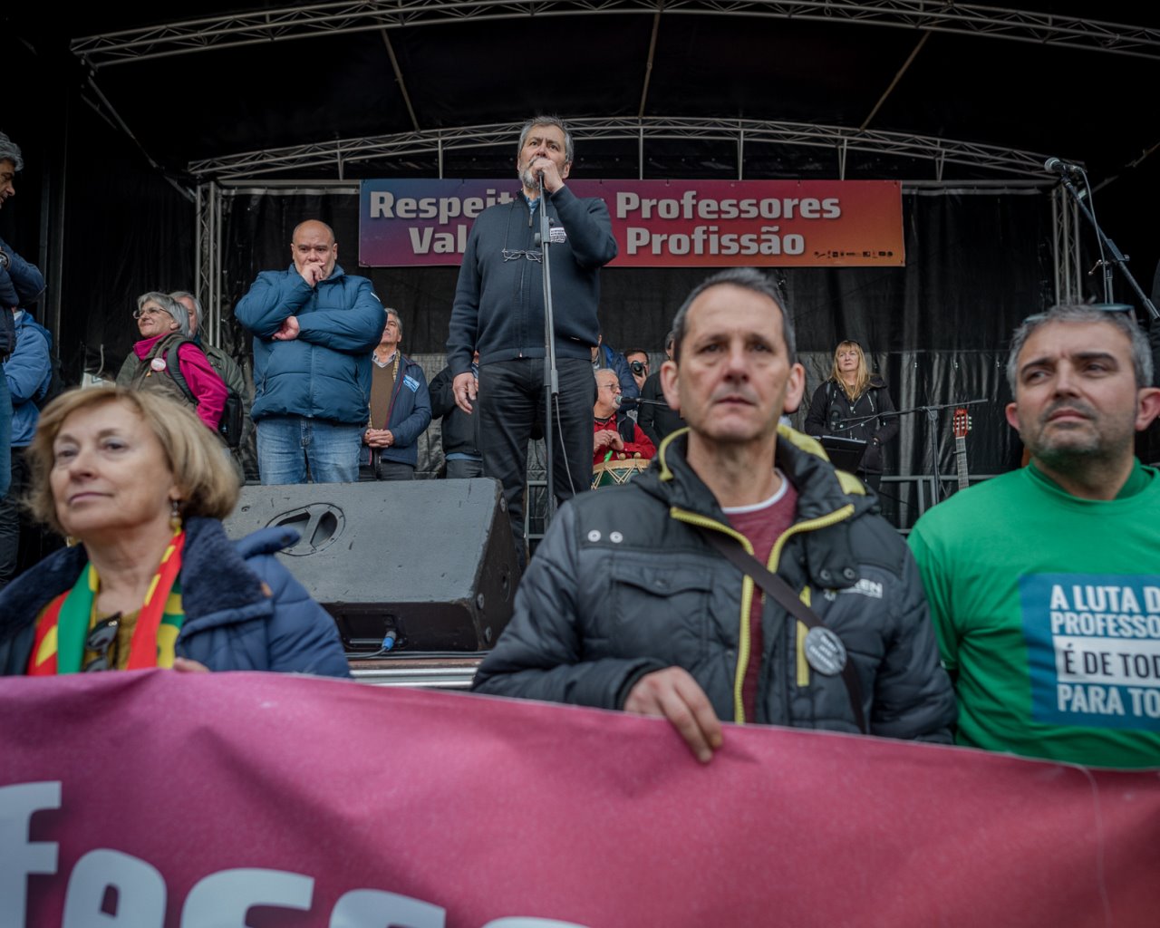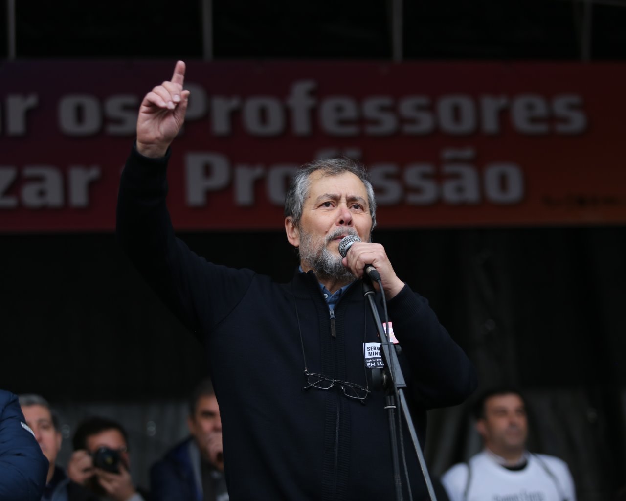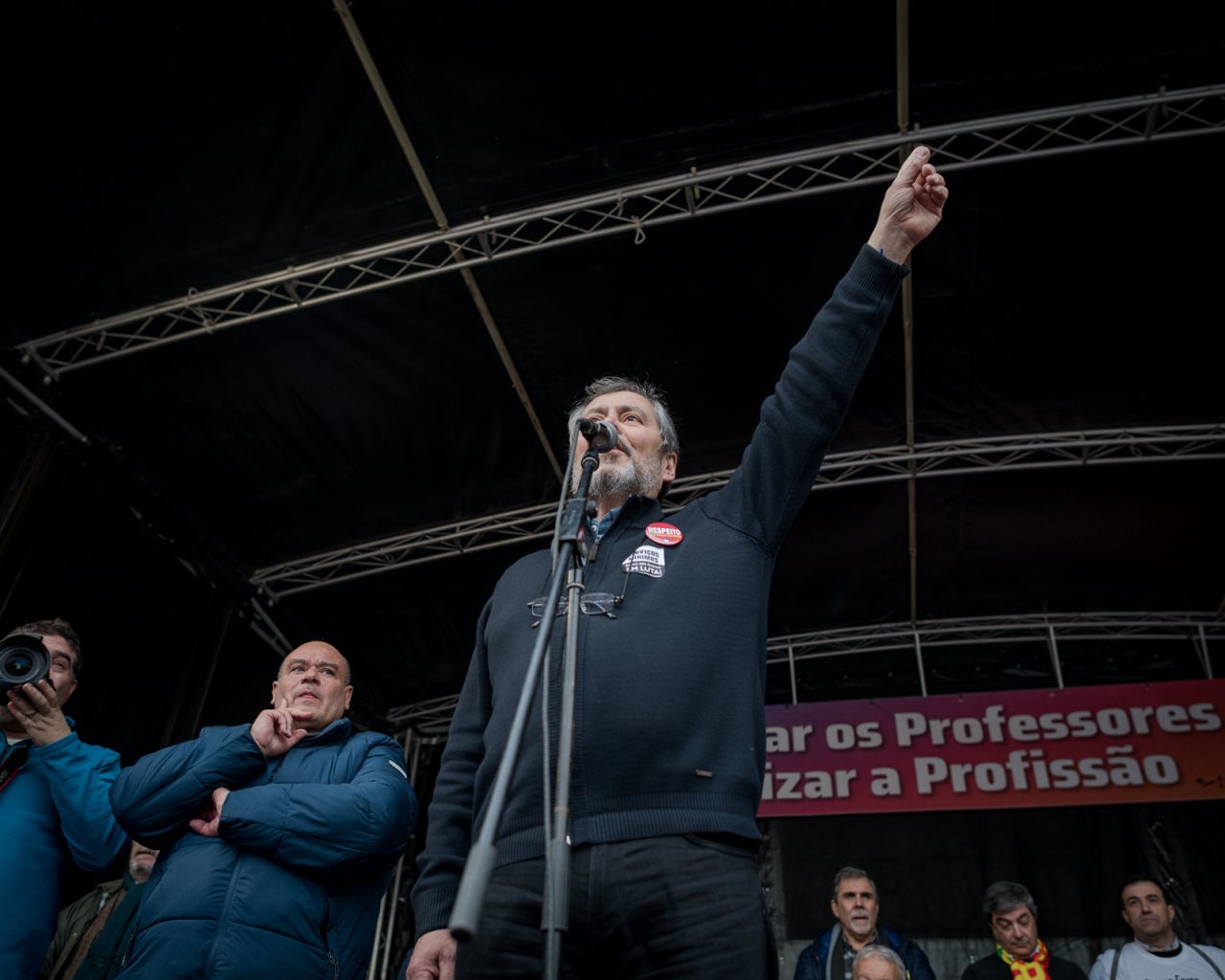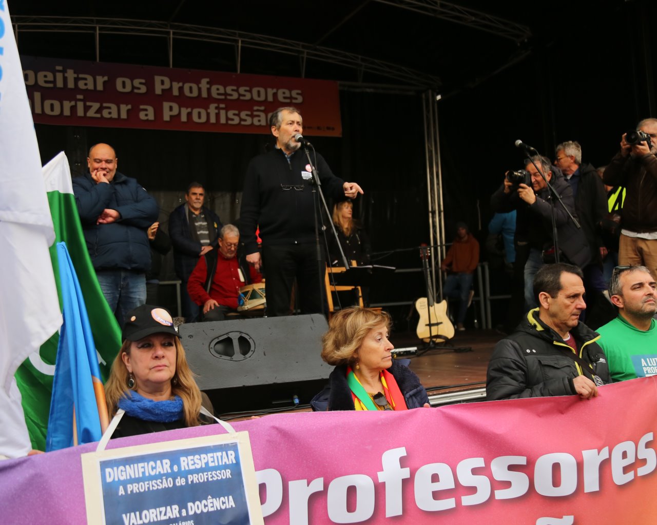 O Secretário-geral adjunto Francisco Gonçalves falou para 45 mil professores e educadores das regiões Norte e Centro do País que desfilaram entre a Praça do Marquês e a Avenida dos Aliados no Porto.