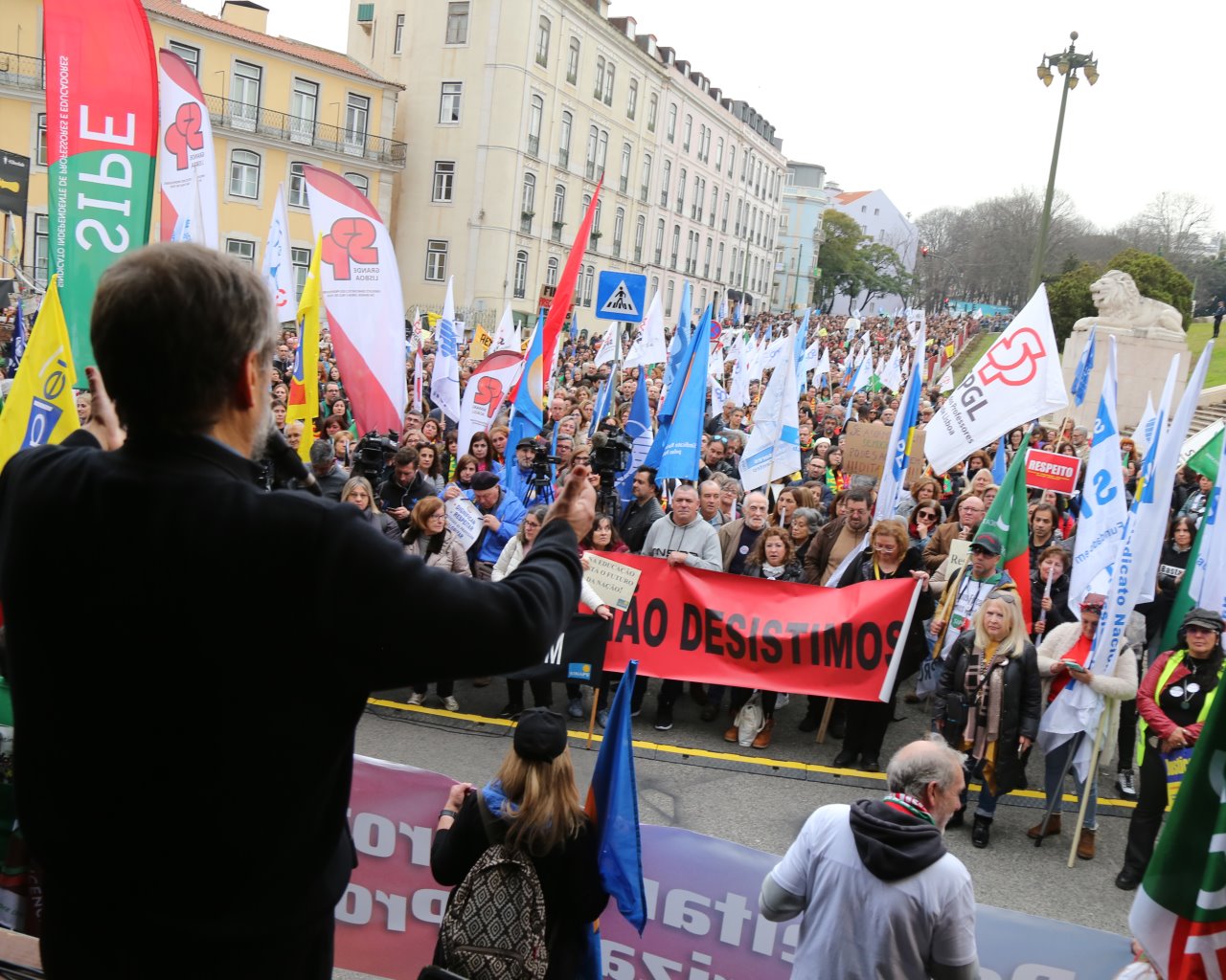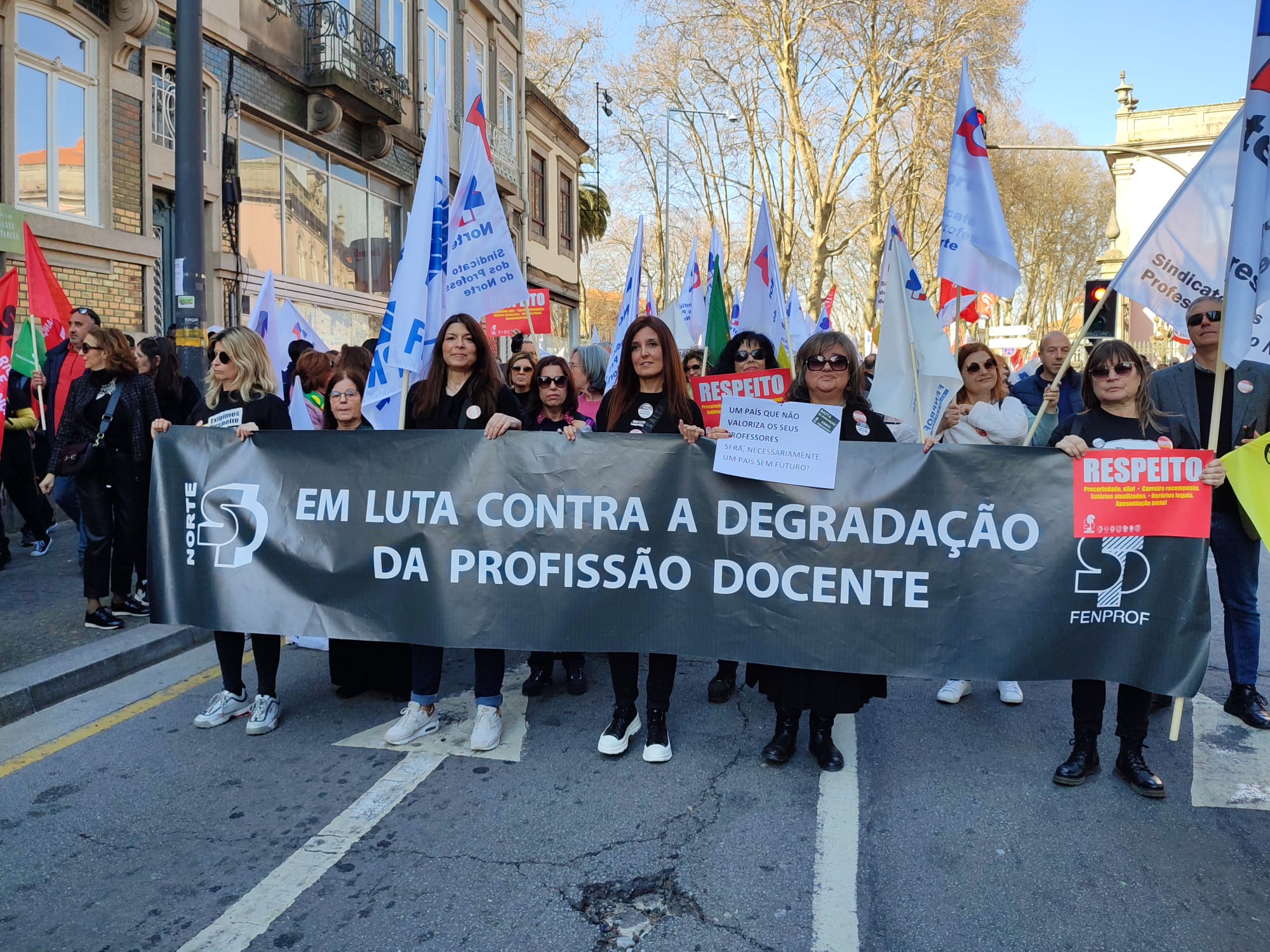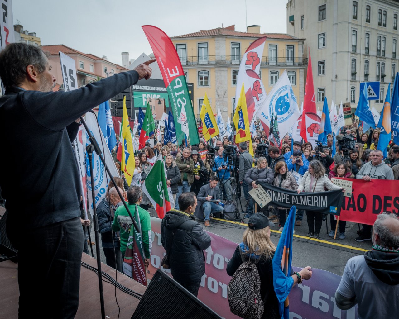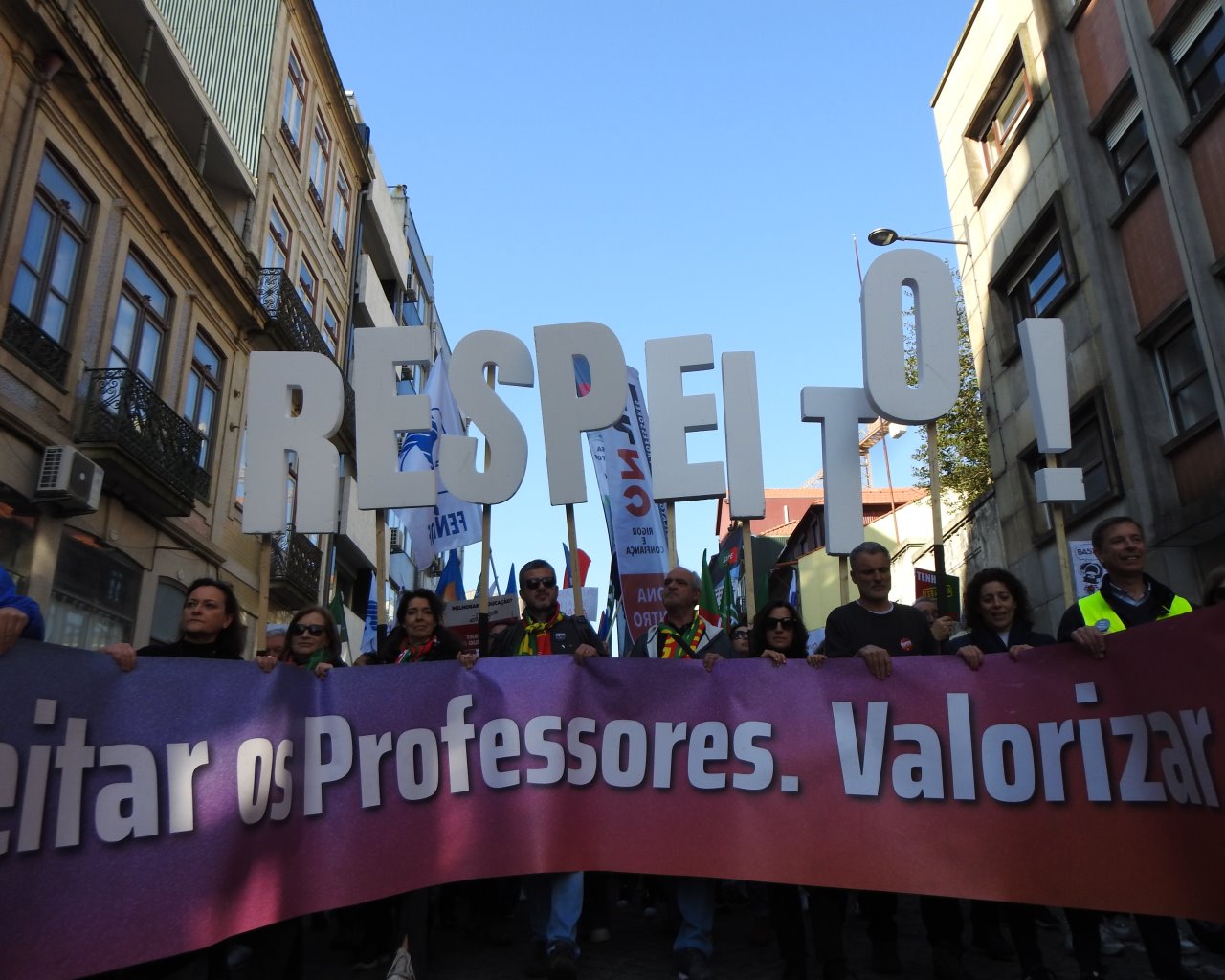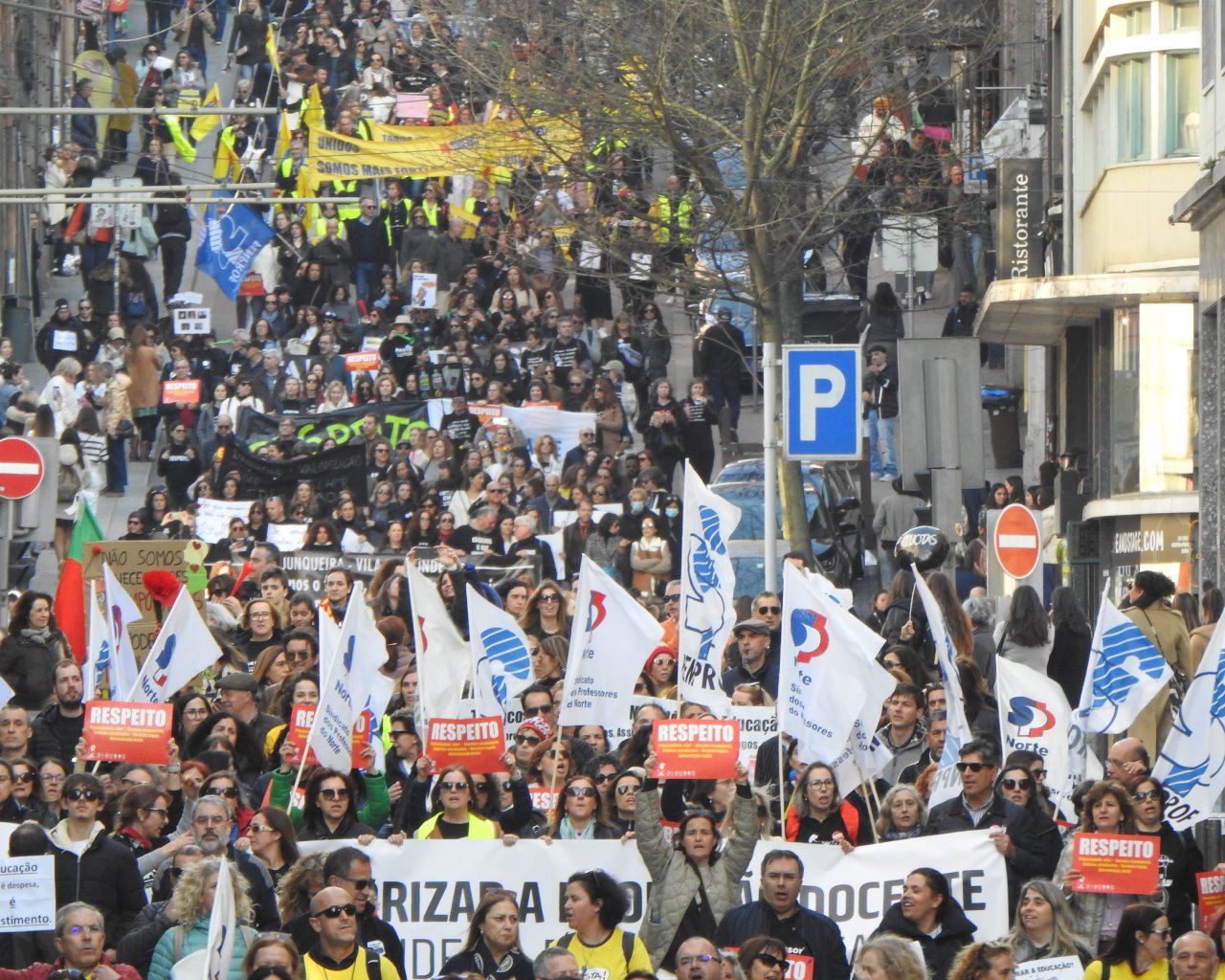 O Secretário-geral adjunto Francisco Gonçalves falou para 45 mil professores e educadores das regiões Norte e Centro do País que desfilaram entre a Praça do Marquês e a Avenida dos Aliados no Porto.