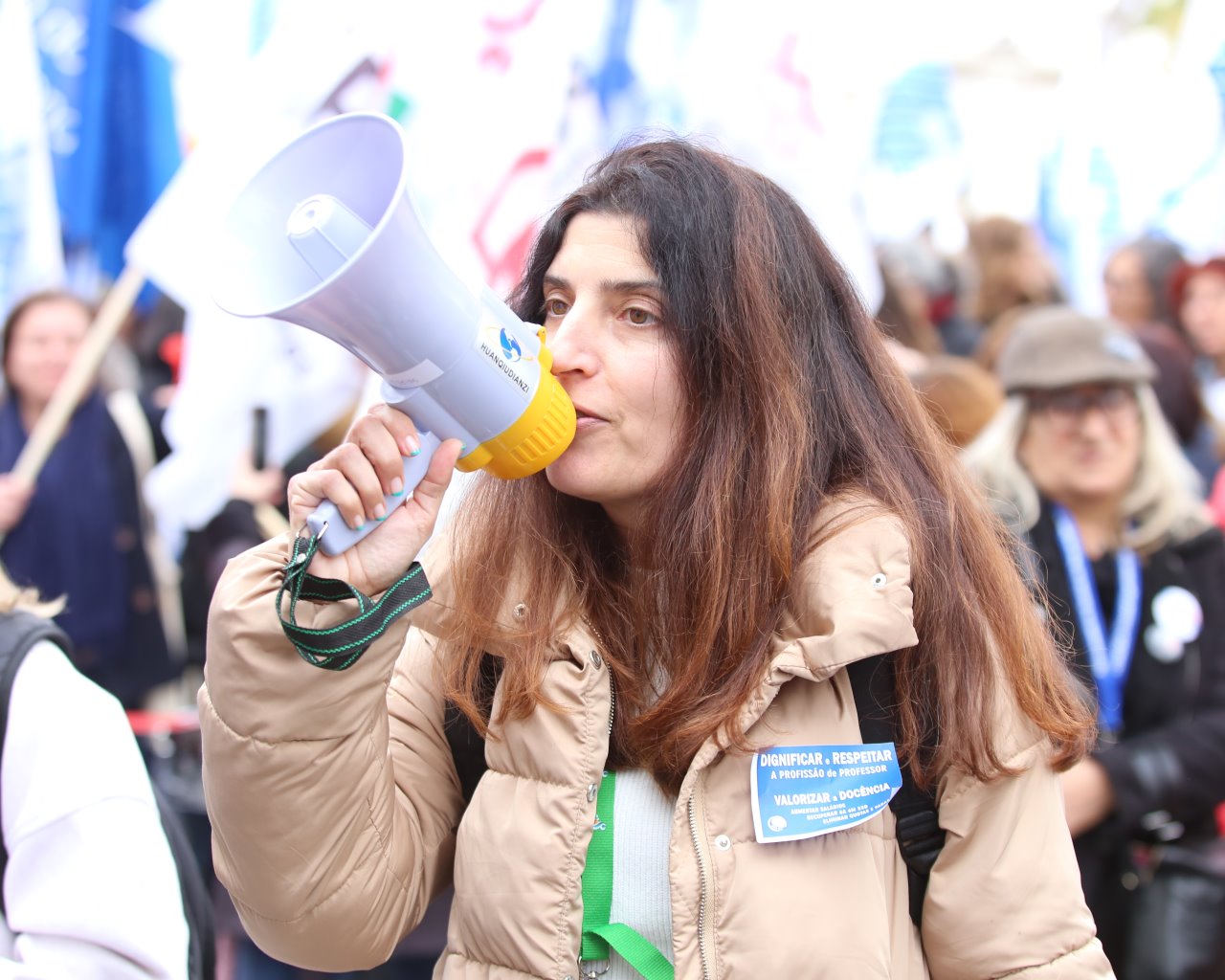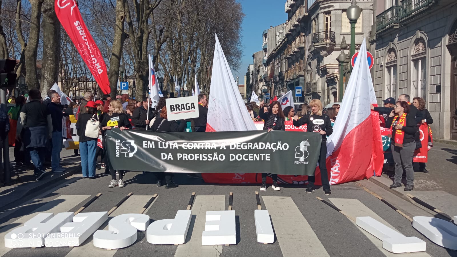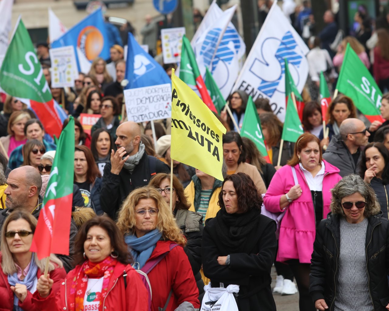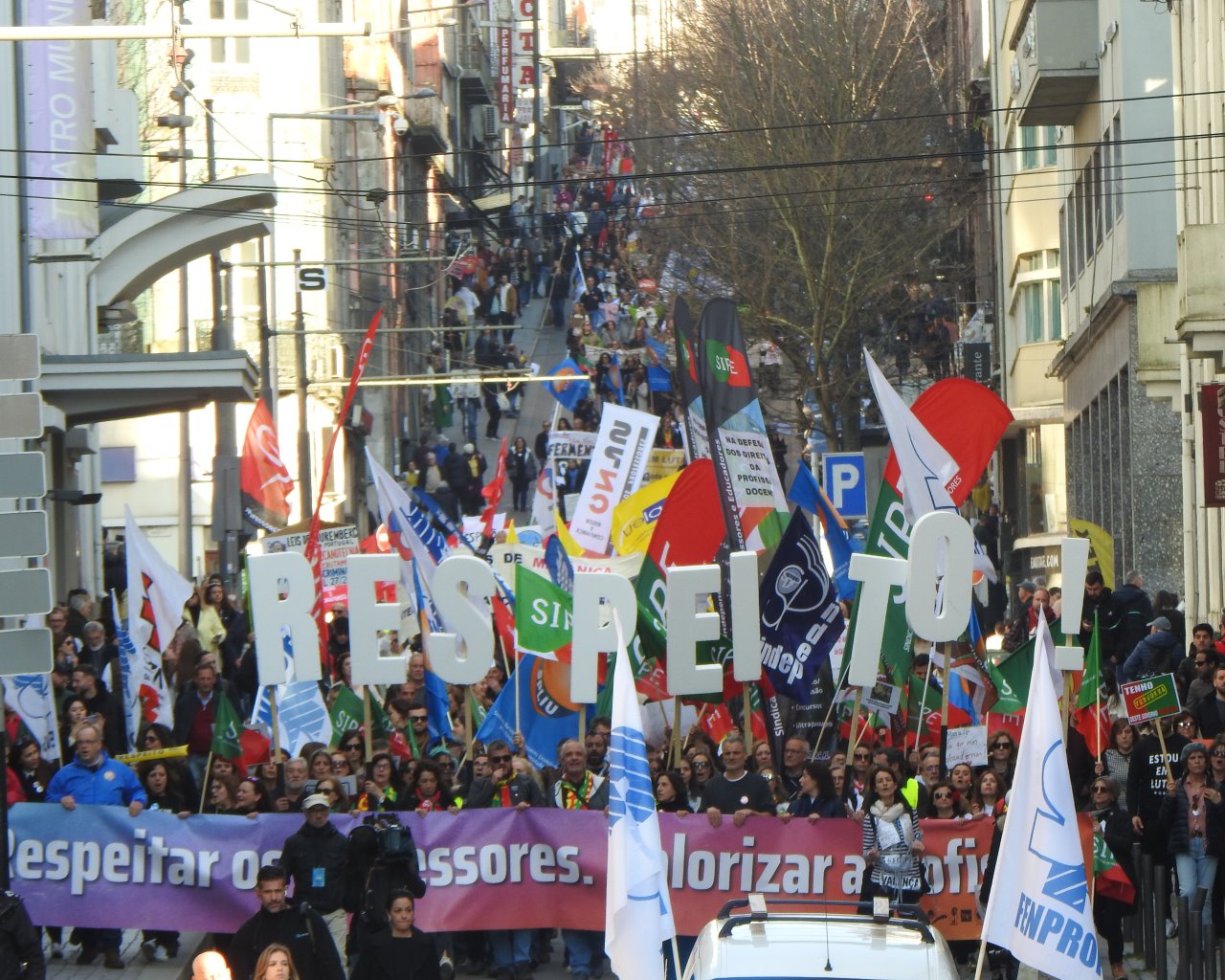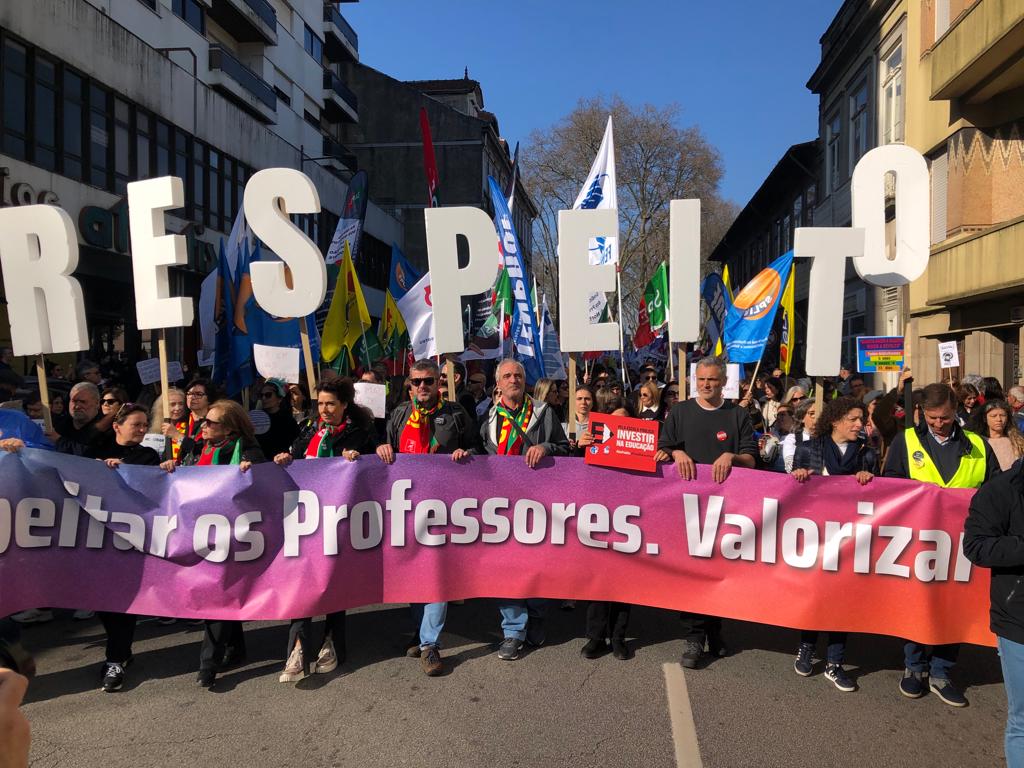 O Secretário-geral adjunto Francisco Gonçalves falou para 45 mil professores e educadores das regiões Norte e Centro do País que desfilaram entre a Praça do Marquês e a Avenida dos Aliados no Porto.