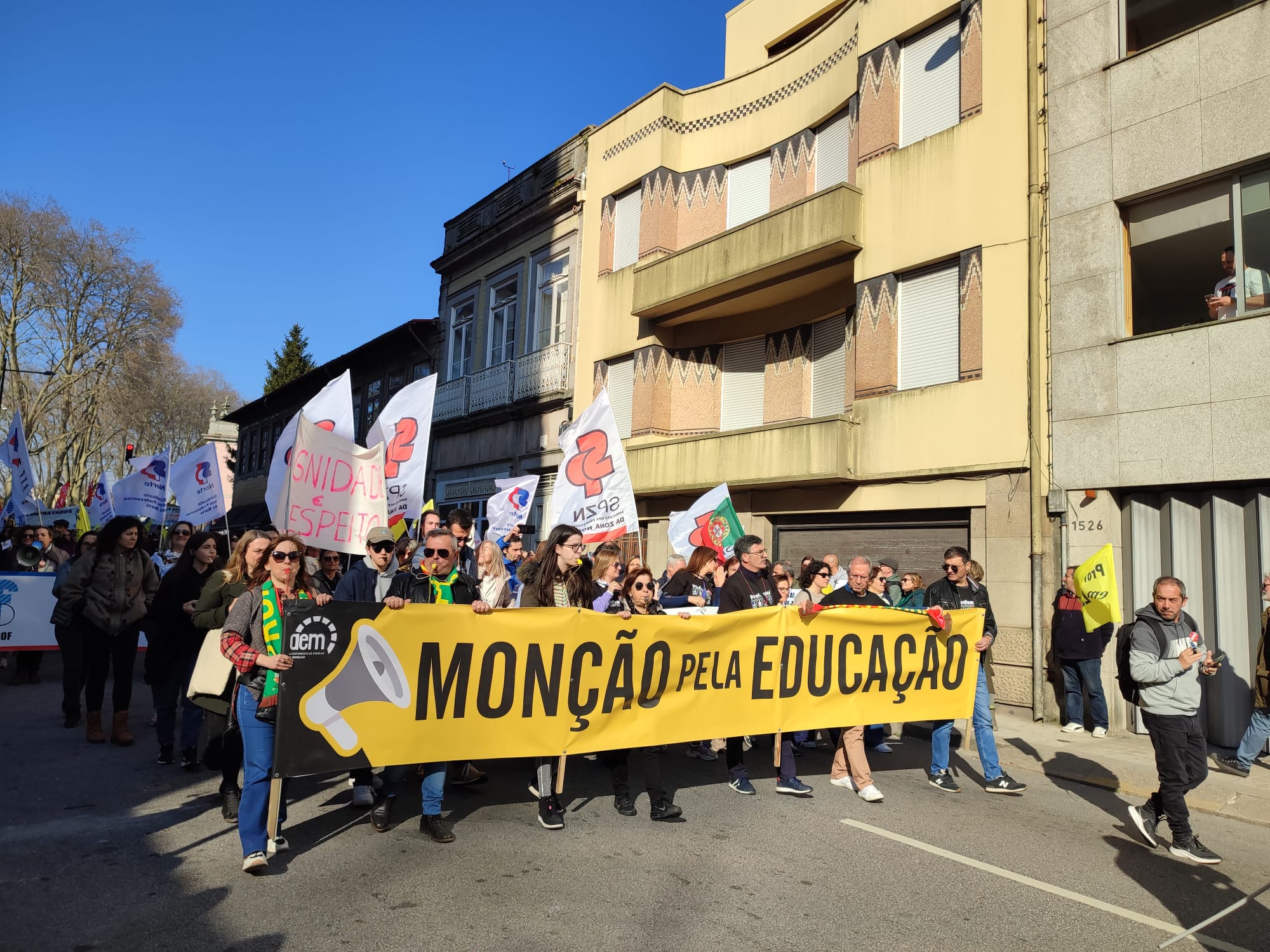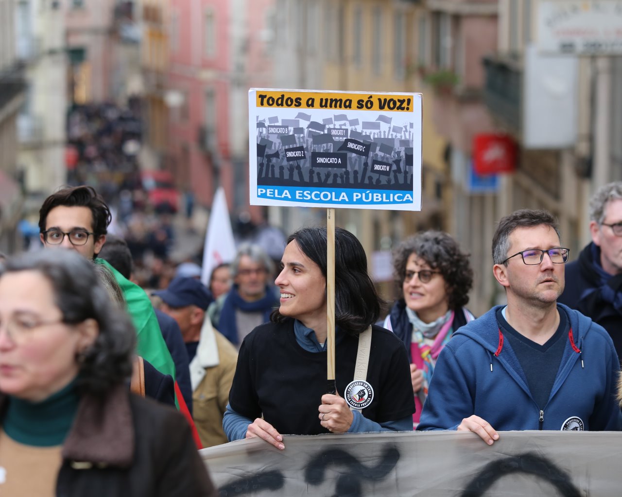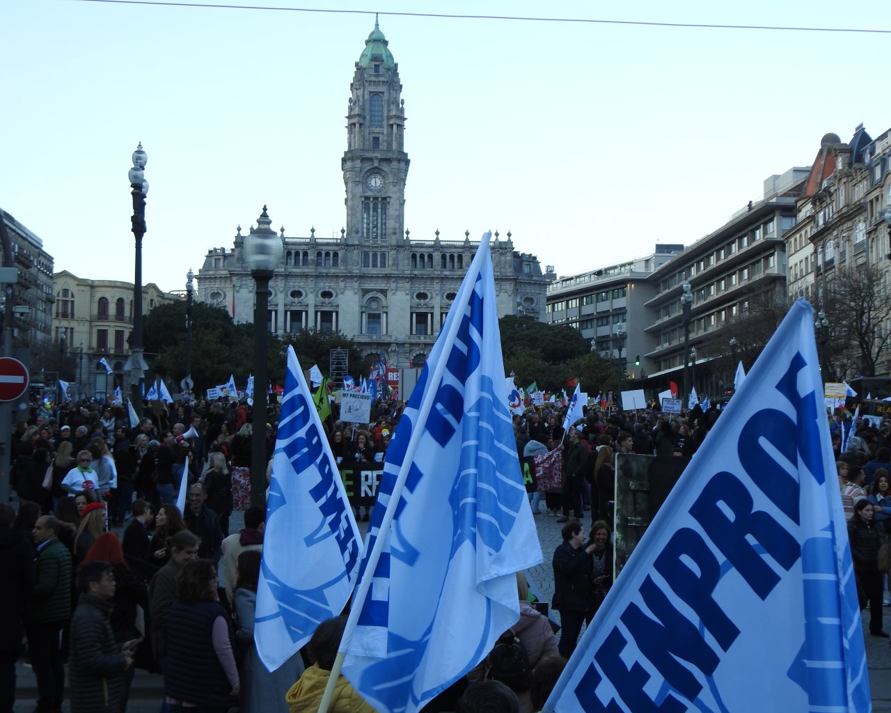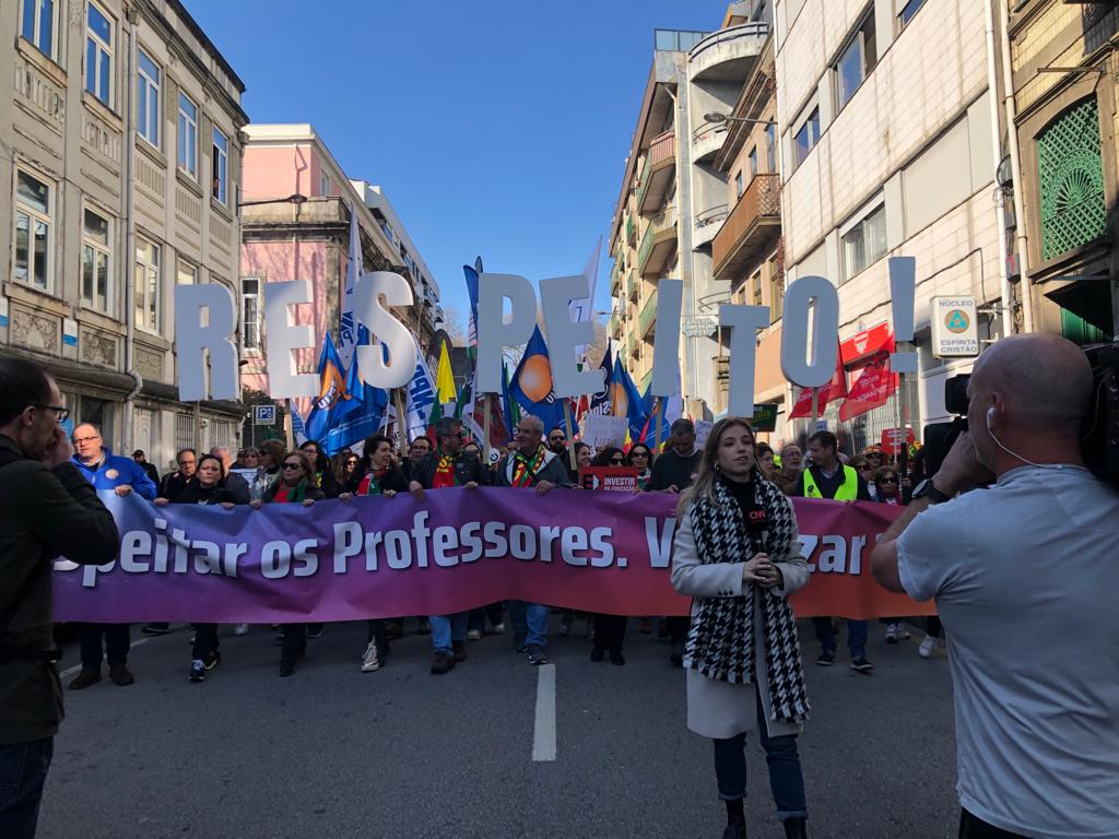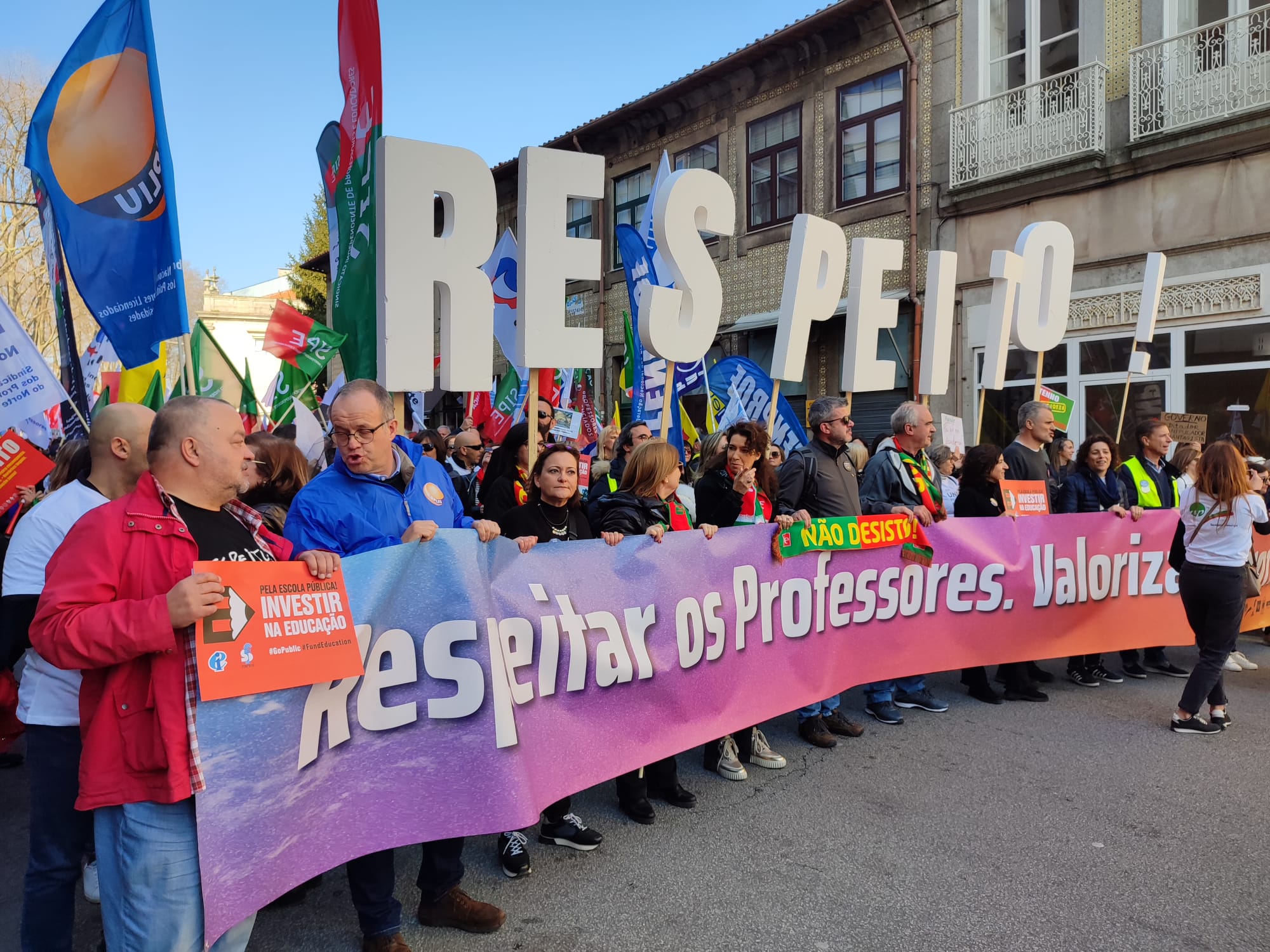 O Secretário-geral adjunto Francisco Gonçalves falou para 45 mil professores e educadores das regiões Norte e Centro do País que desfilaram entre a Praça do Marquês e a Avenida dos Aliados no Porto.