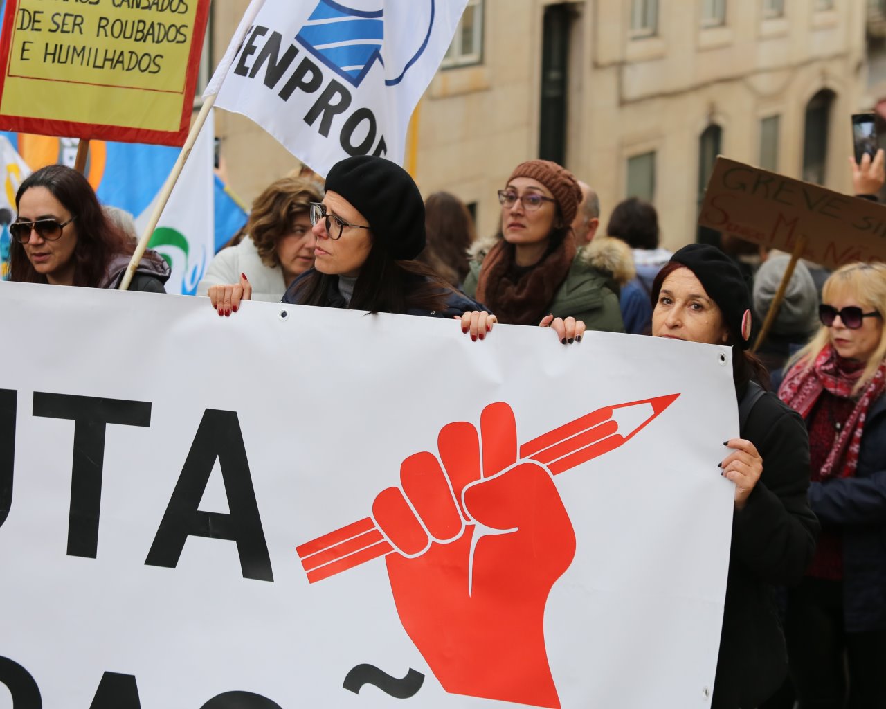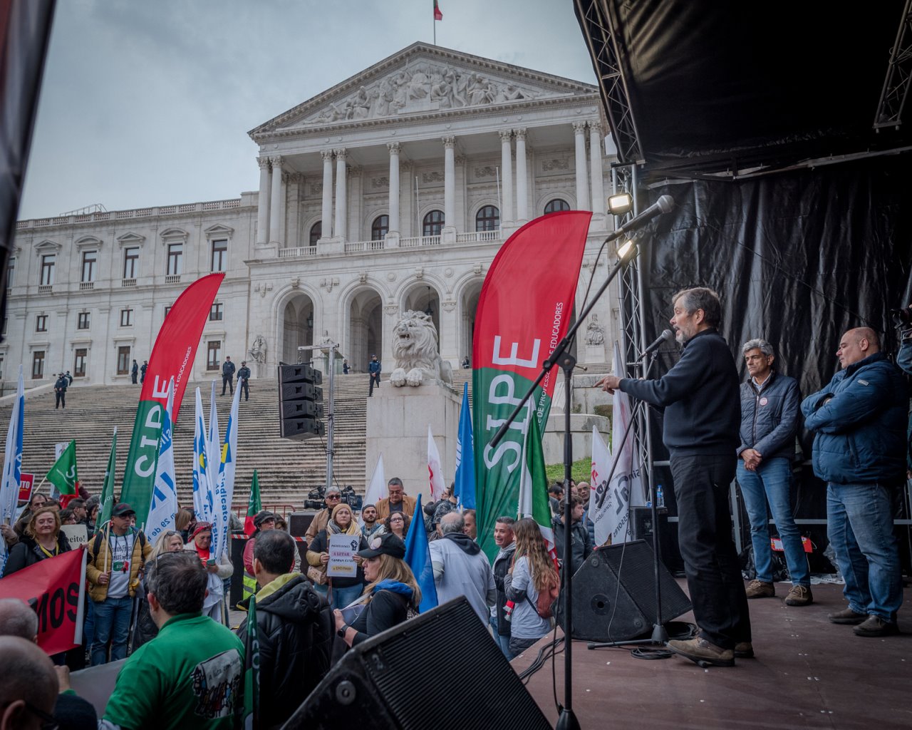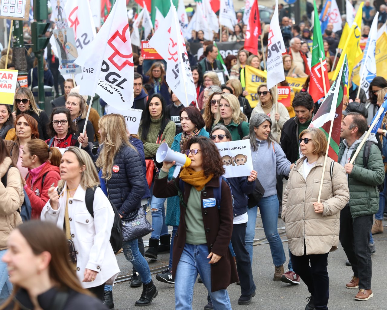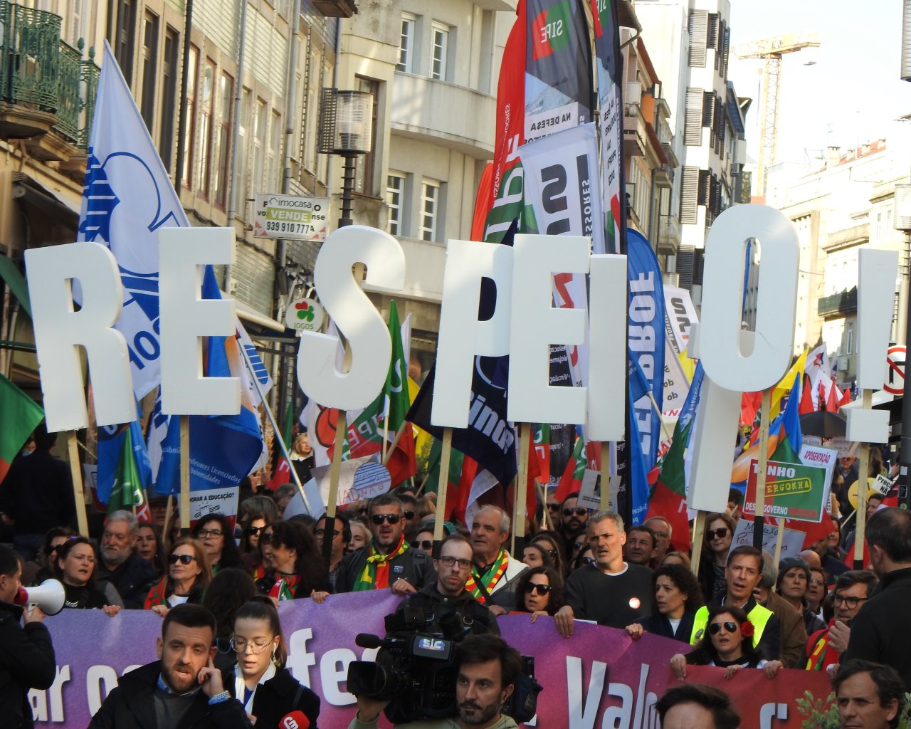 O Secretário-geral adjunto Francisco Gonçalves falou para 45 mil professores e educadores das regiões Norte e Centro do País que desfilaram entre a Praça do Marquês e a Avenida dos Aliados no Porto.