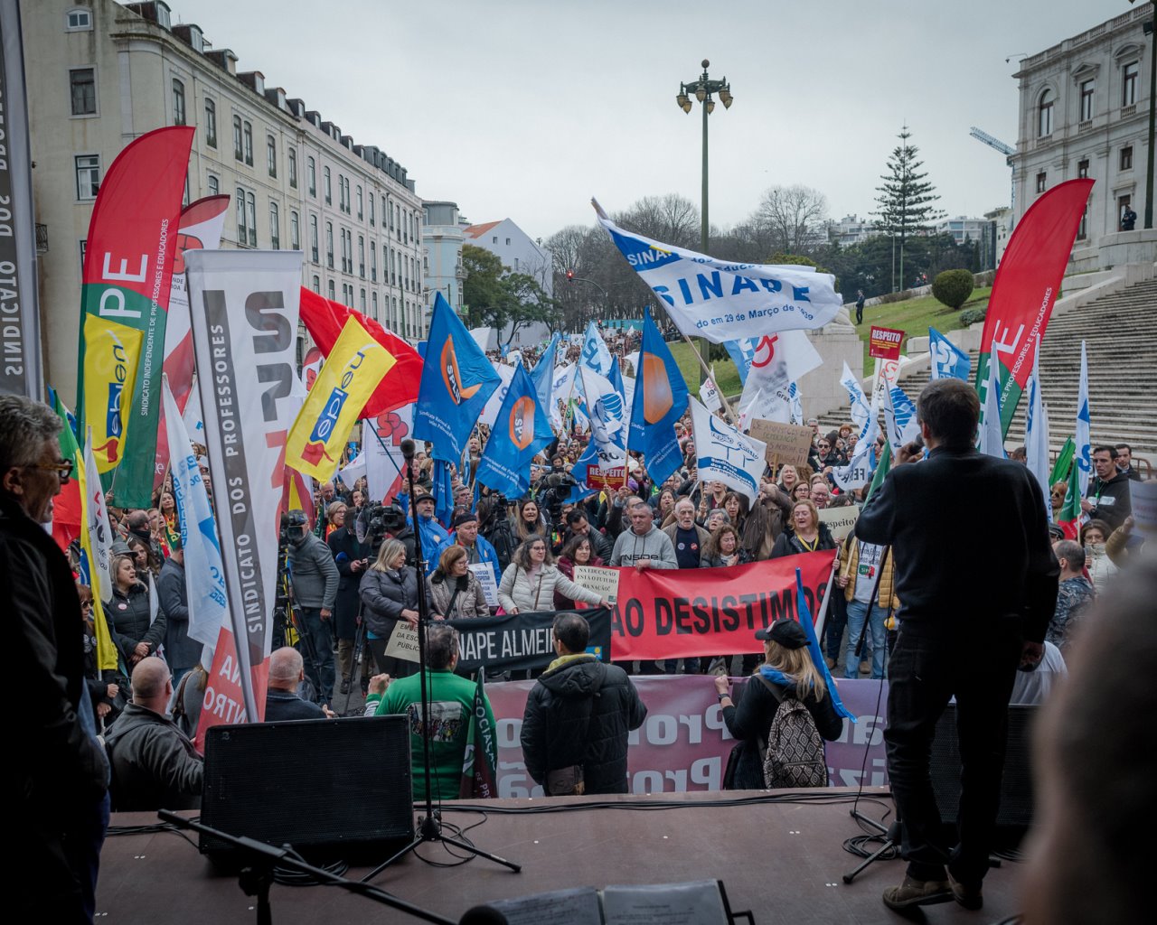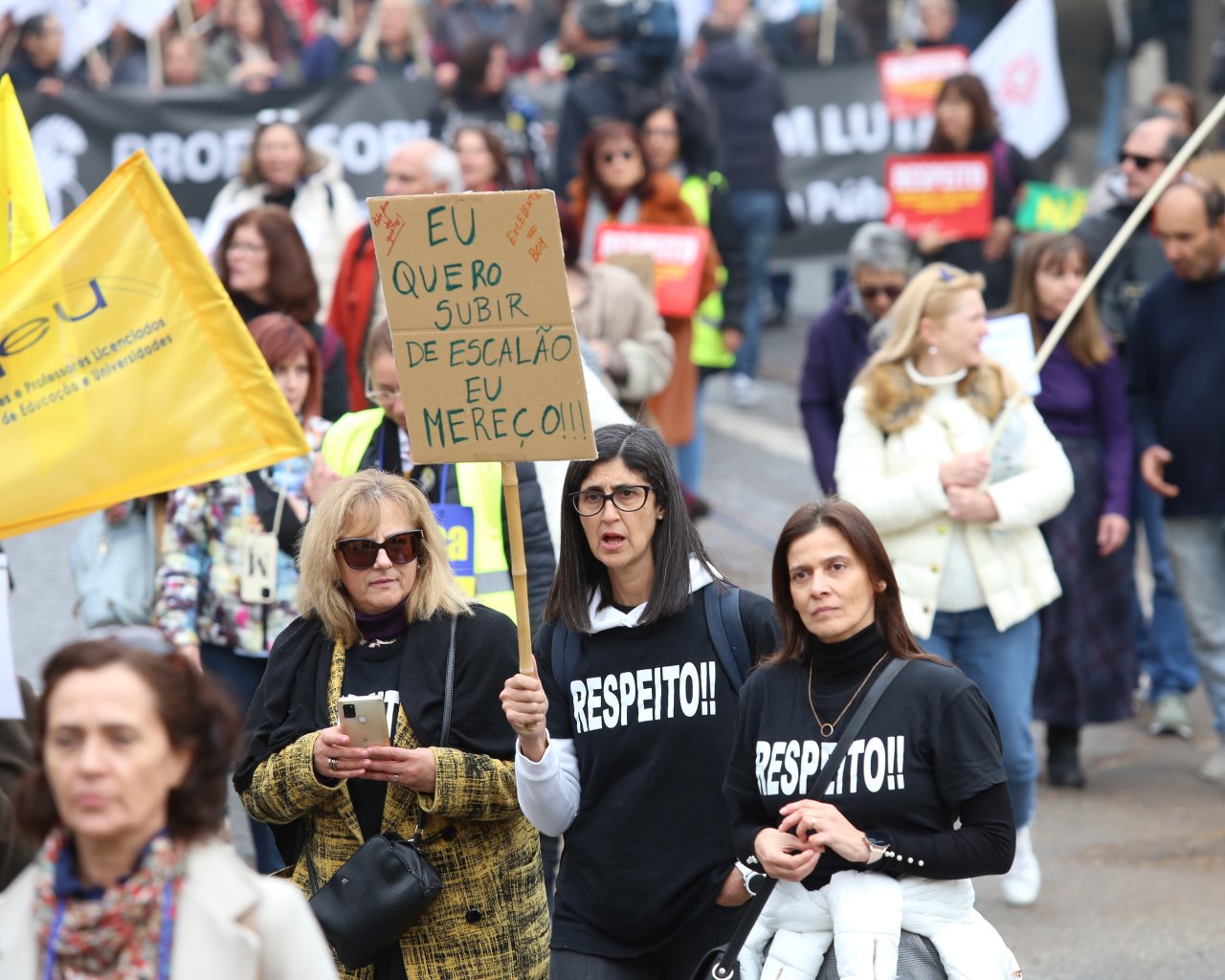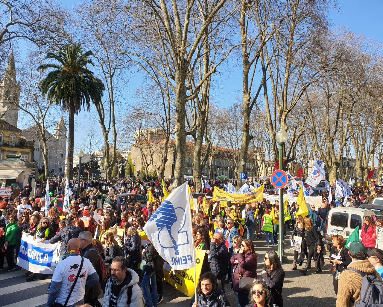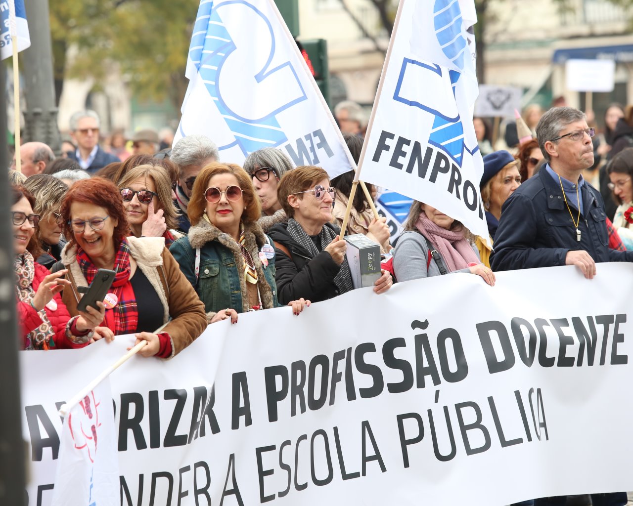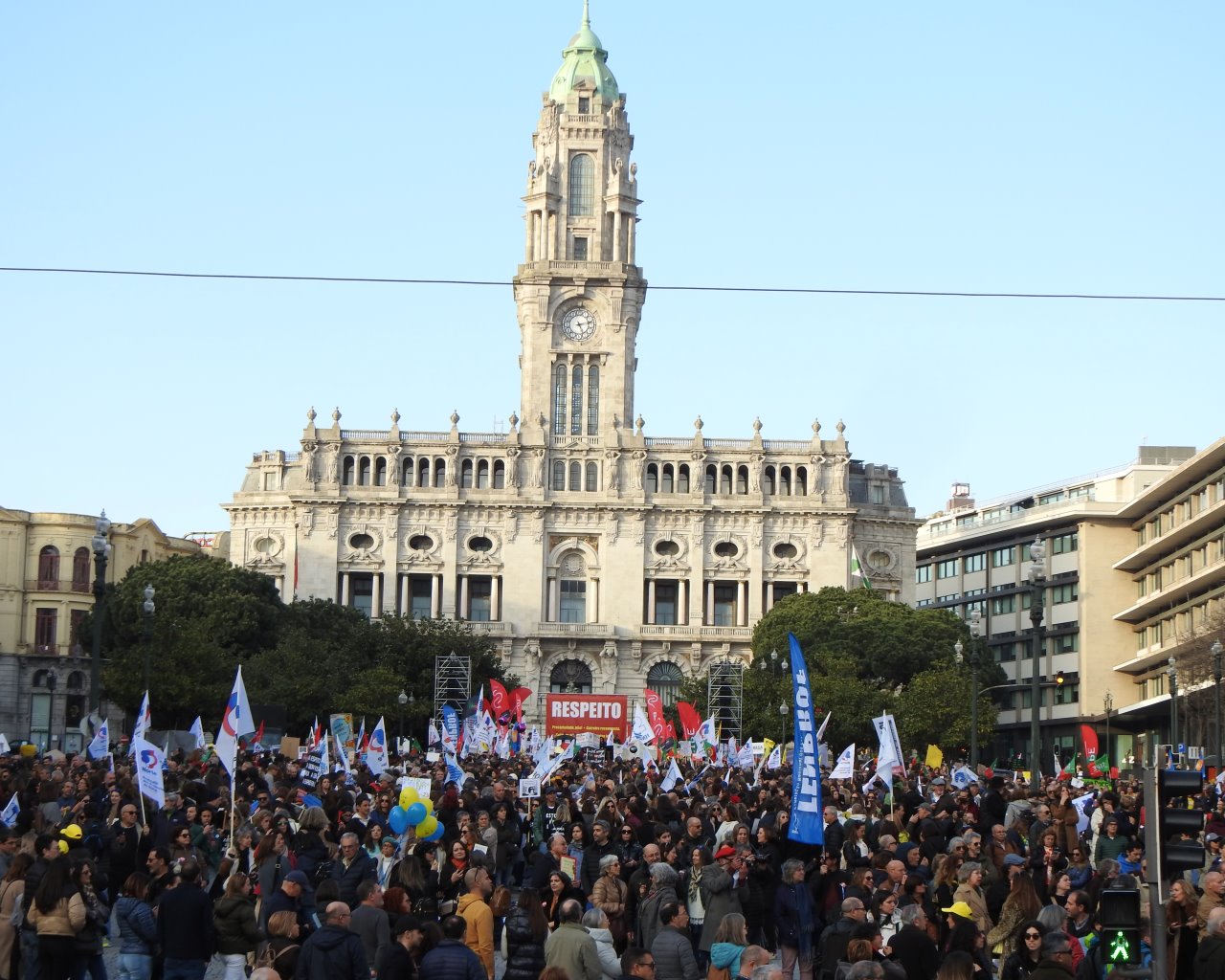 O Secretário-geral adjunto Francisco Gonçalves falou para 45 mil professores e educadores das regiões Norte e Centro do País que desfilaram entre a Praça do Marquês e a Avenida dos Aliados no Porto.