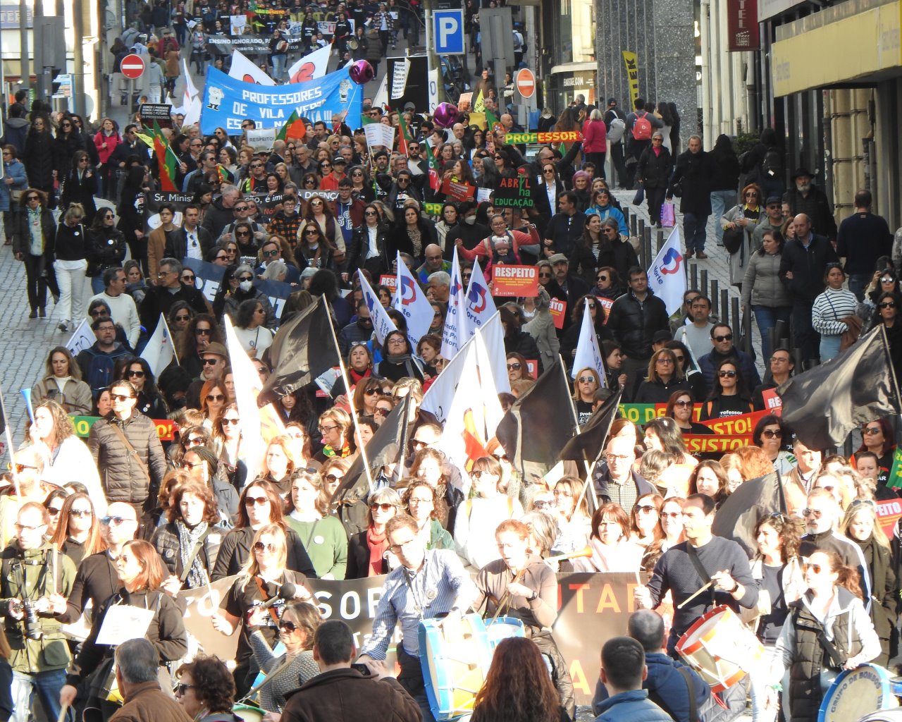40 mil professores e educadores em Lisboa; 45 mil no Porto! Milhares de professores e educadores saíram este sábado às ruas de Lisboa e do Porto para dizerem ao governo que não vão desistir de lutar pelas suas justas reivindicações. Em Lisboa, os professores desfilaram entre a Praça D. Pedro IV (Rossio) e a Assembleia da República. No Porto, o desfile partiu da Praça do Marquês e encheu a Avenida dos Aliados.