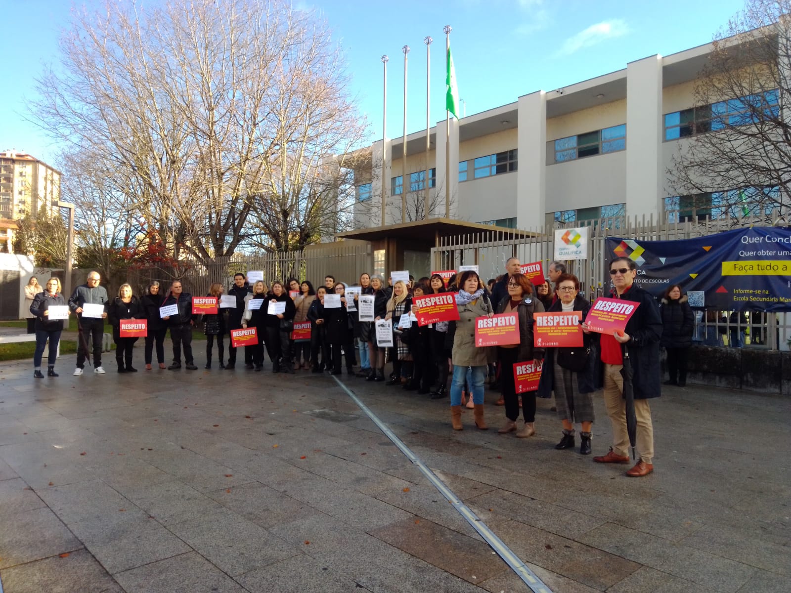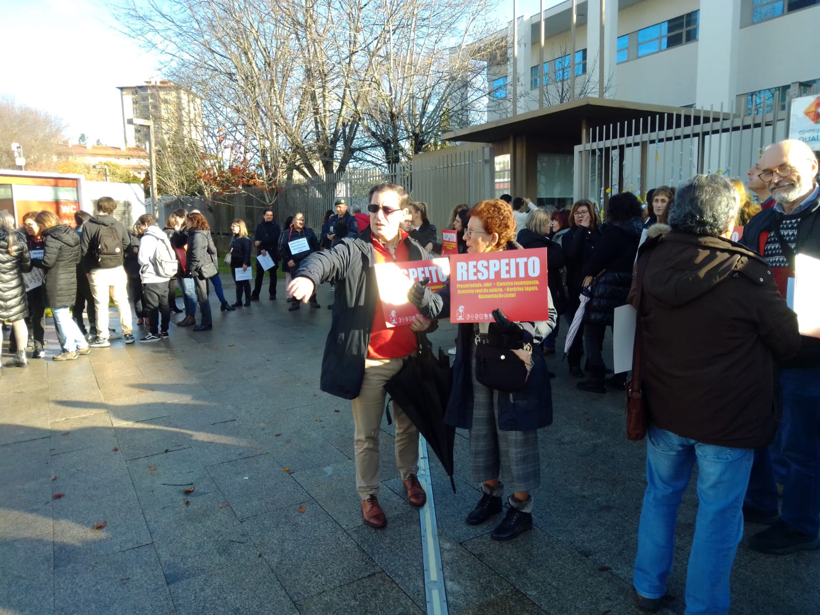 Dezenas de docentes concentraram-se hoje junto à Marques Castilho em Águeda onde afirmaram o seu protesto e exigências em relação à sua profissão. O SPRC/FENPROF esteve presente com professores do concelho. Na concentração, António Morais, dirigente do SPRC e da FENPROF entregou uma carta ao Ministro exigindo o abandono das propostas que o ME tem para o regime de concursos e a abertura de um processo negocial sobre as restantes matérias de resolução urgente (carreira, aposentação, precariedade, horários de trabalho e condições de trabalho).