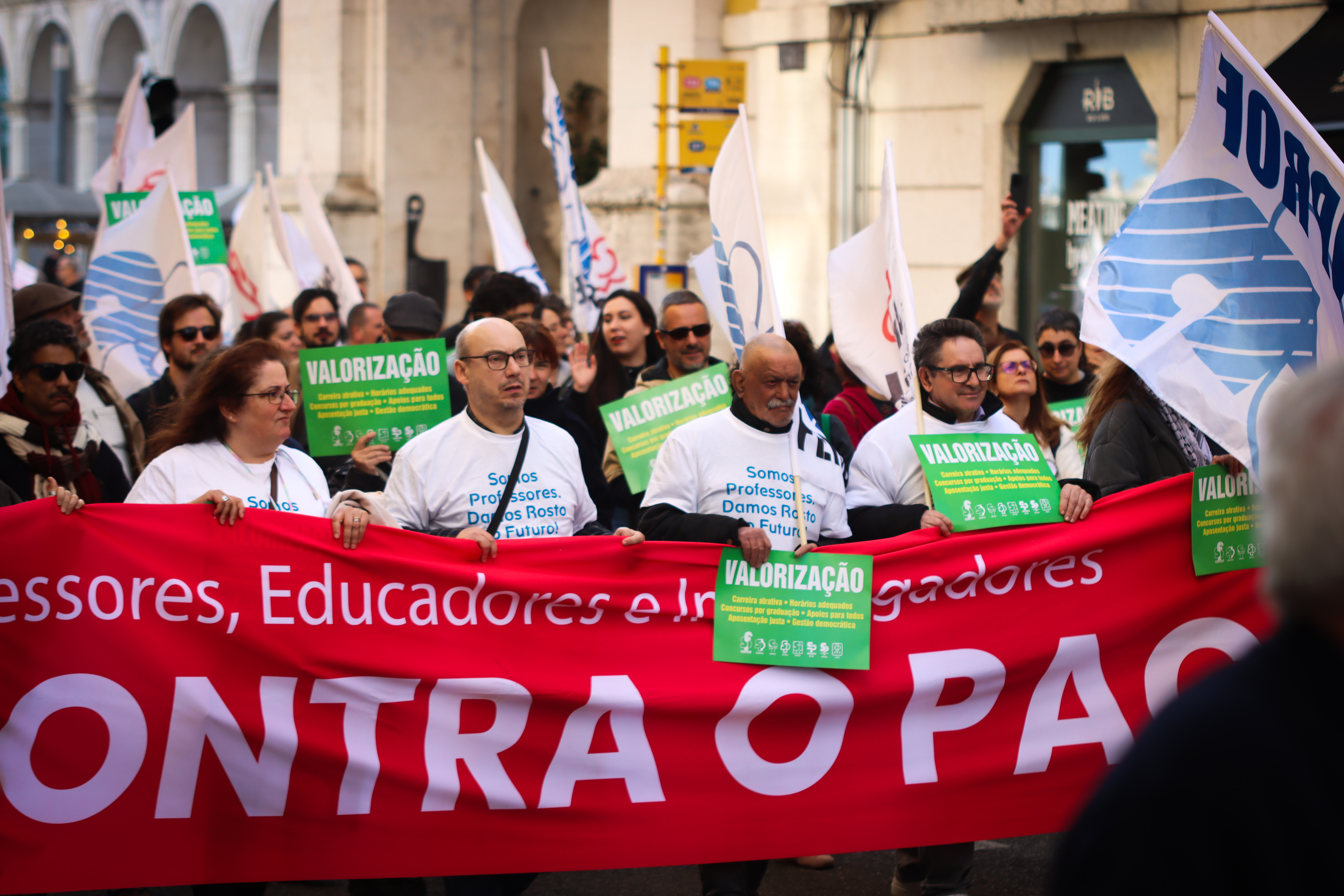Centenas de professores, educadores e investigadores participaram esta sexta-feira, 13 de março, na concentração “Administração Pública em Luta”, realizada na Praça da Figueira em direção ao Ministério das Finanças, em Lisboa. A iniciativa reuniu trabalhadores de vários setores da Administração Pública para manifestar preocupação com as políticas do Governo relativamente aos serviços públicos e funções sociais do Estado.