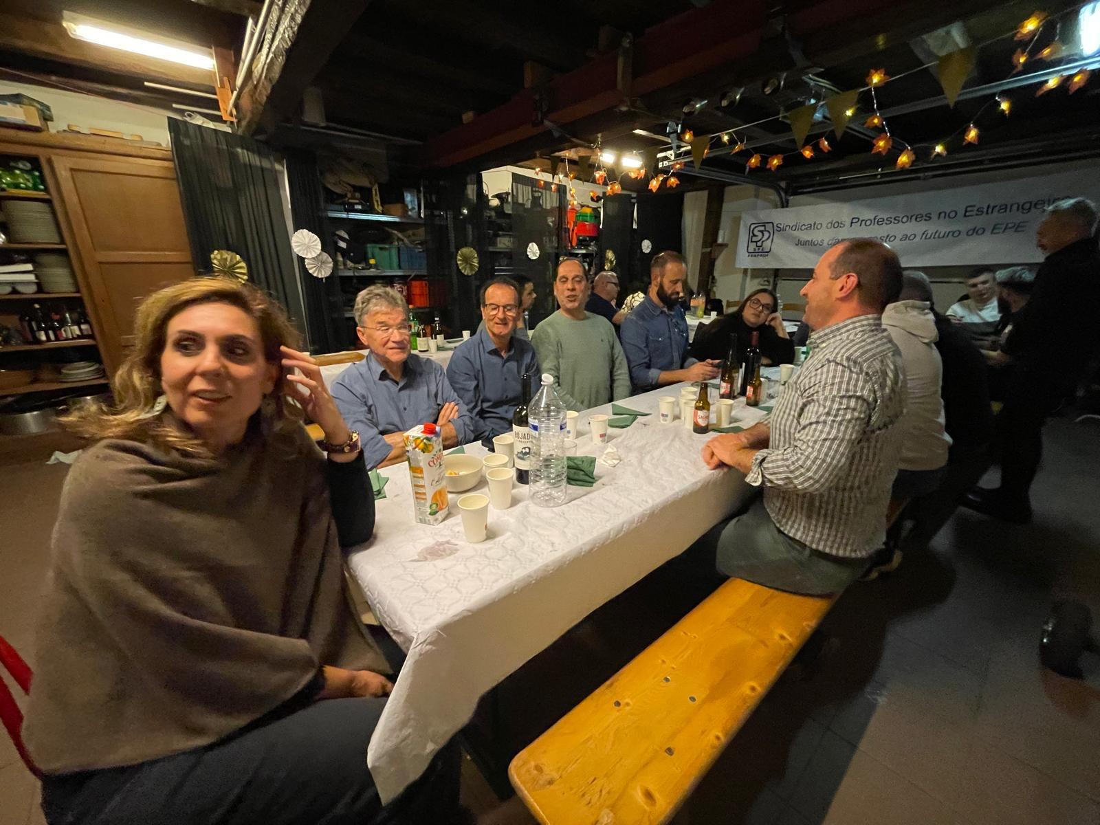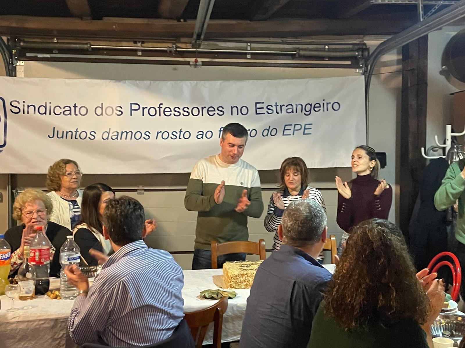 Durante a cerimónia, o Secretário-geral do SPE agradeceu a presença de todos os professores que participaram na comemoração do 45. ° aniversário do sindicato. Destacou a dedicação e o espírito de entreajuda dos membros do Núcleo SPE/Luxemburgo. dinamizadores da comemoração, fundamentais para a concretização do evento, bem como a colaboração de todos os que contribuíram para a sua realização — incluindo a proprietária que cedeu o espaço, a coordenadora de ensino da CEPE/Luxemburgo, cuja colaboração e apoio permitiu integrar o Magusto dos professores do EPE/Luxemburgo na celebração, sem esquecer a presença da secretária central do Departamento dos Imigrantes da OGBL, organização de extrema importância para o trabalho sindical do SPE e dos professores do Núcleo SPE/Luxemburgo.