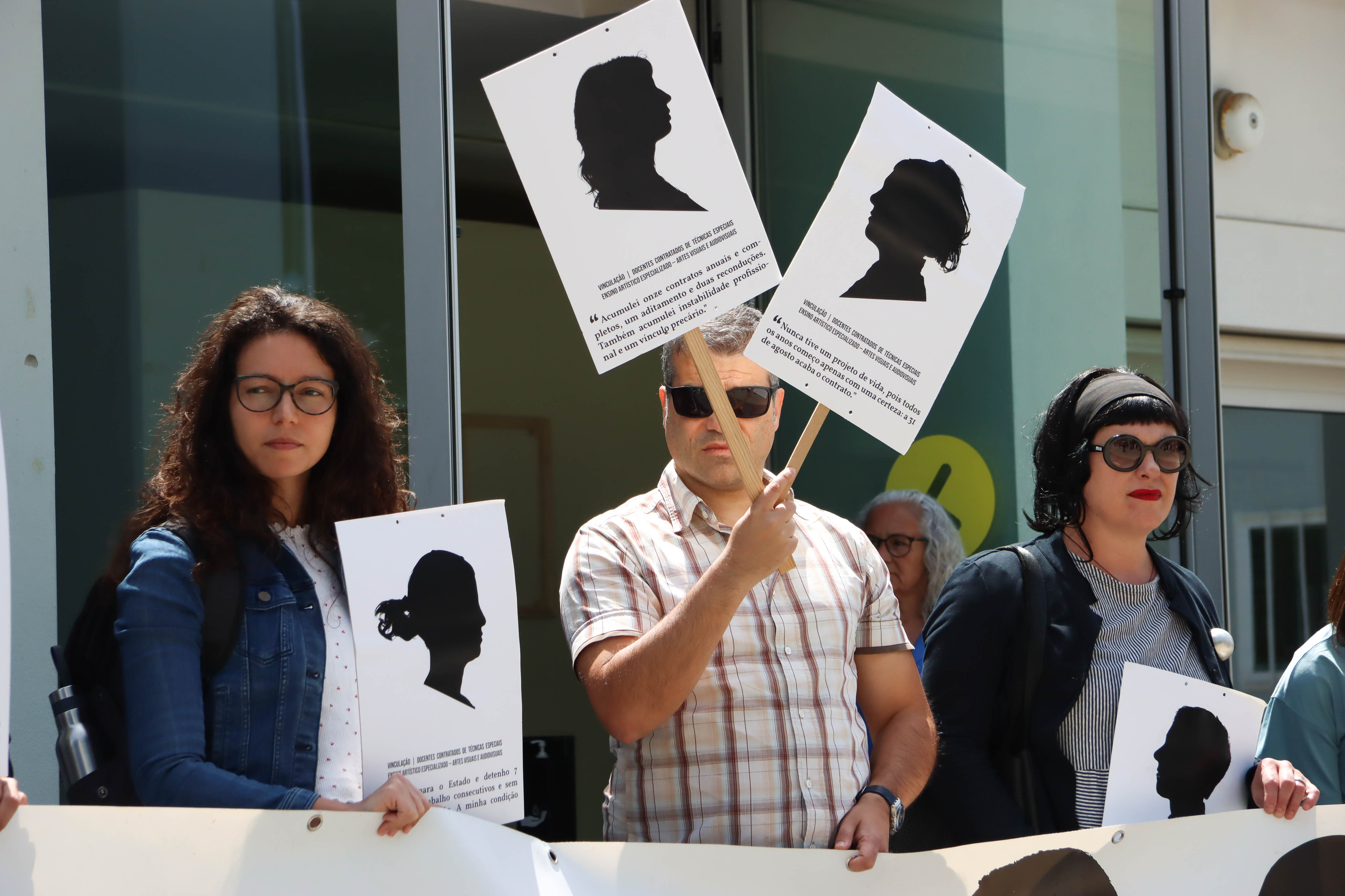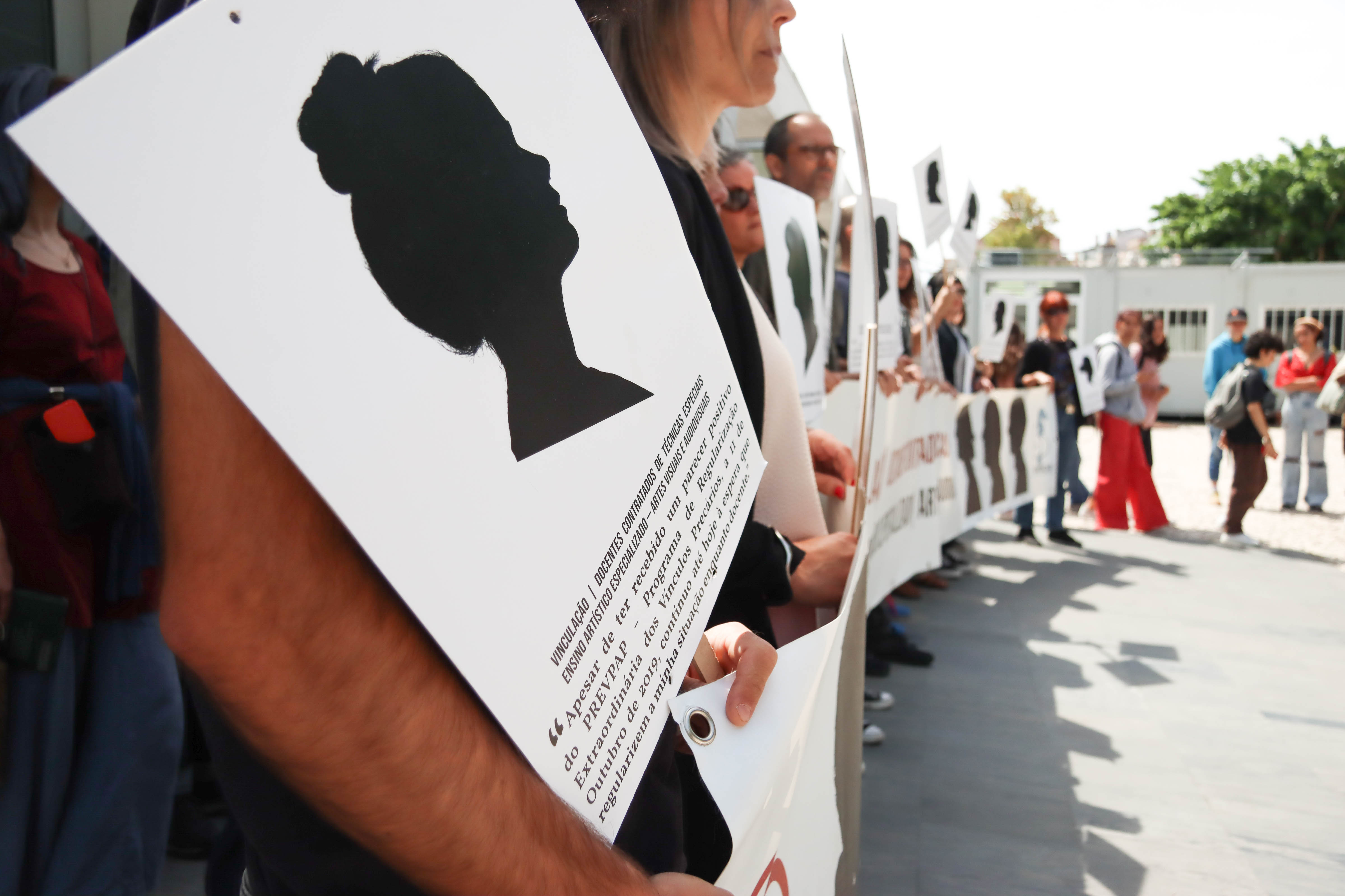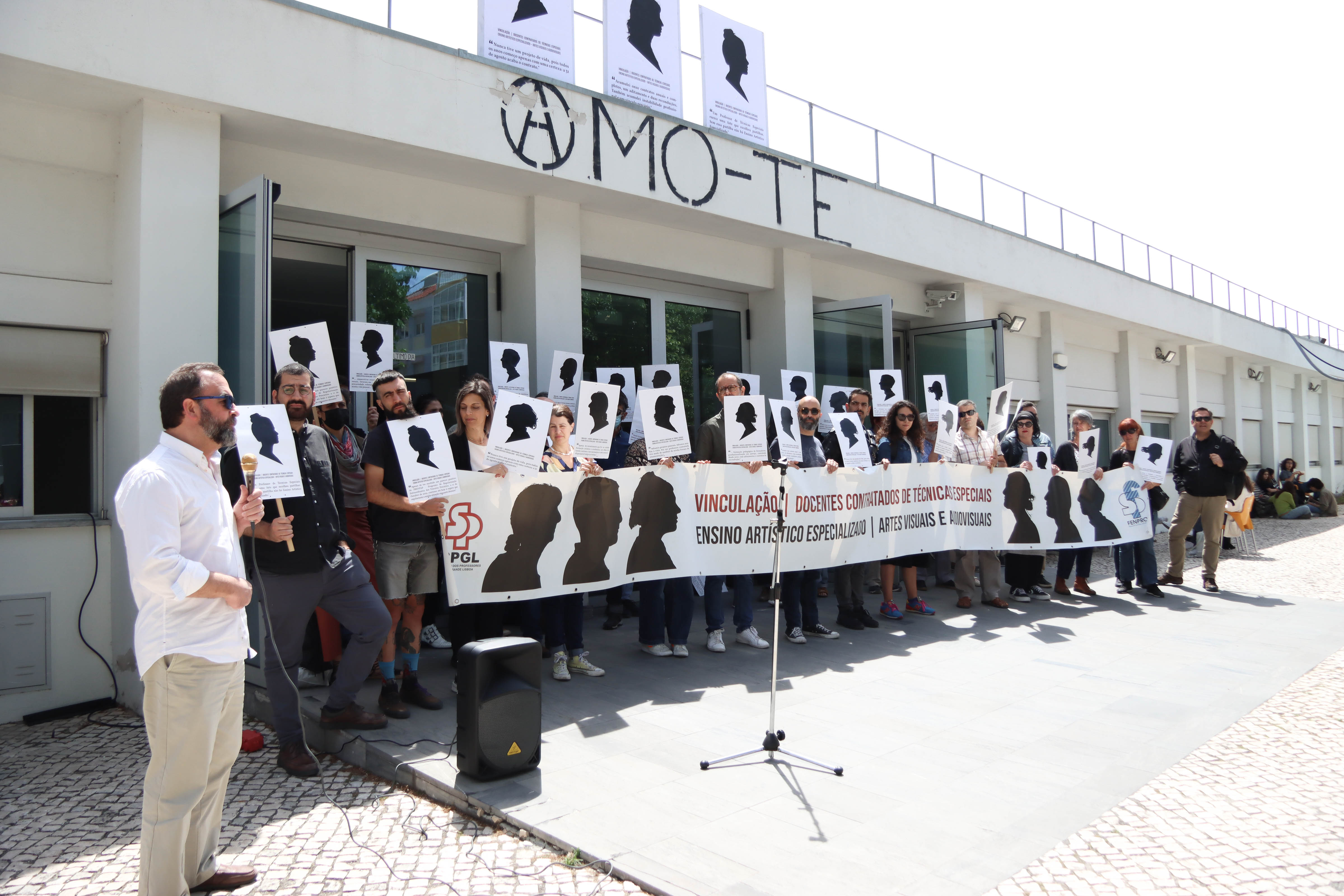 Os docentes das Escolas Artísticas António Arroio (Lisboa) e Soares dos Reis (Porto) concentraram-se em frente às suas escolas para exigir ao governo que cumpra a Lei 46/2021 que permite acabar com a sua situação de precariedade.