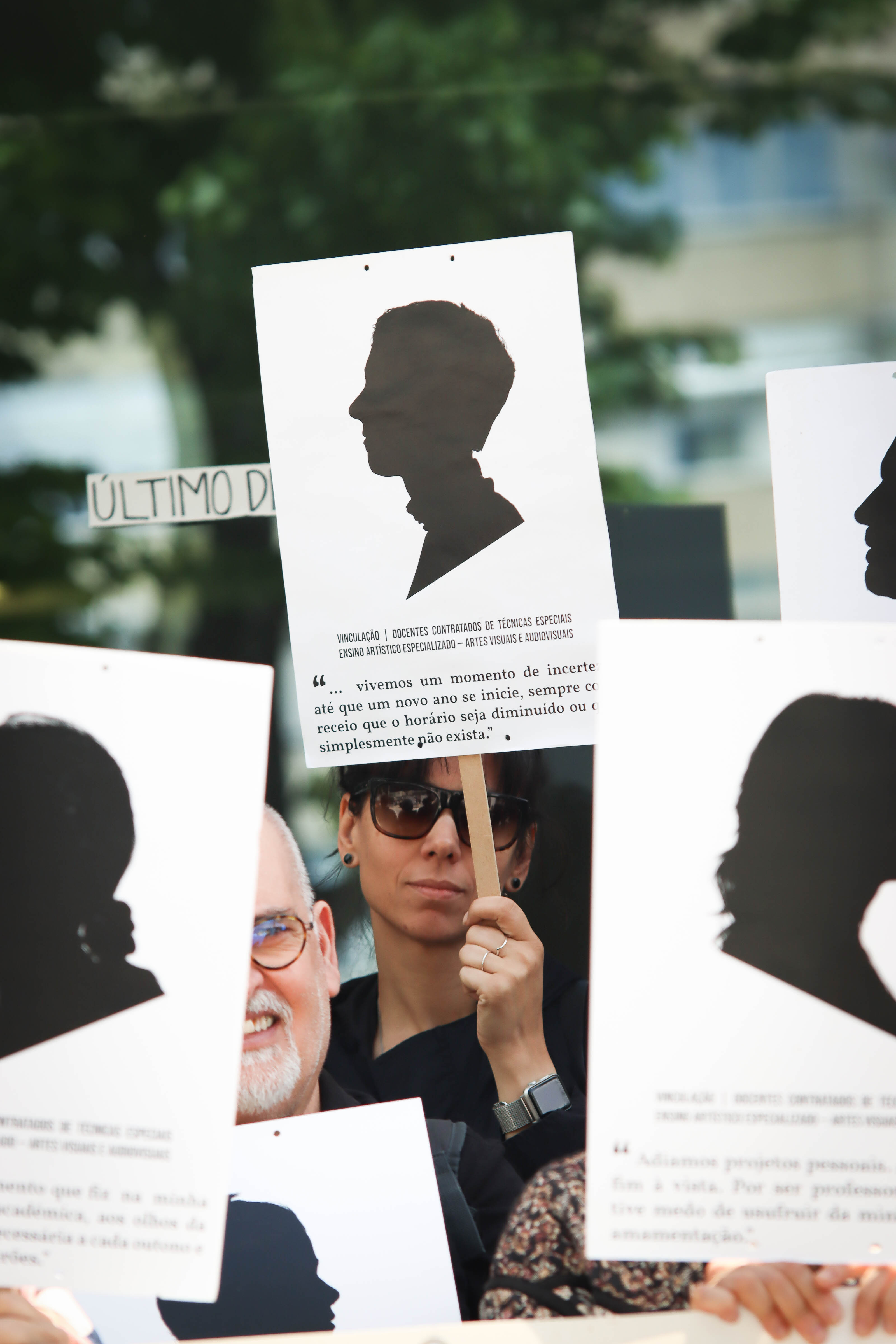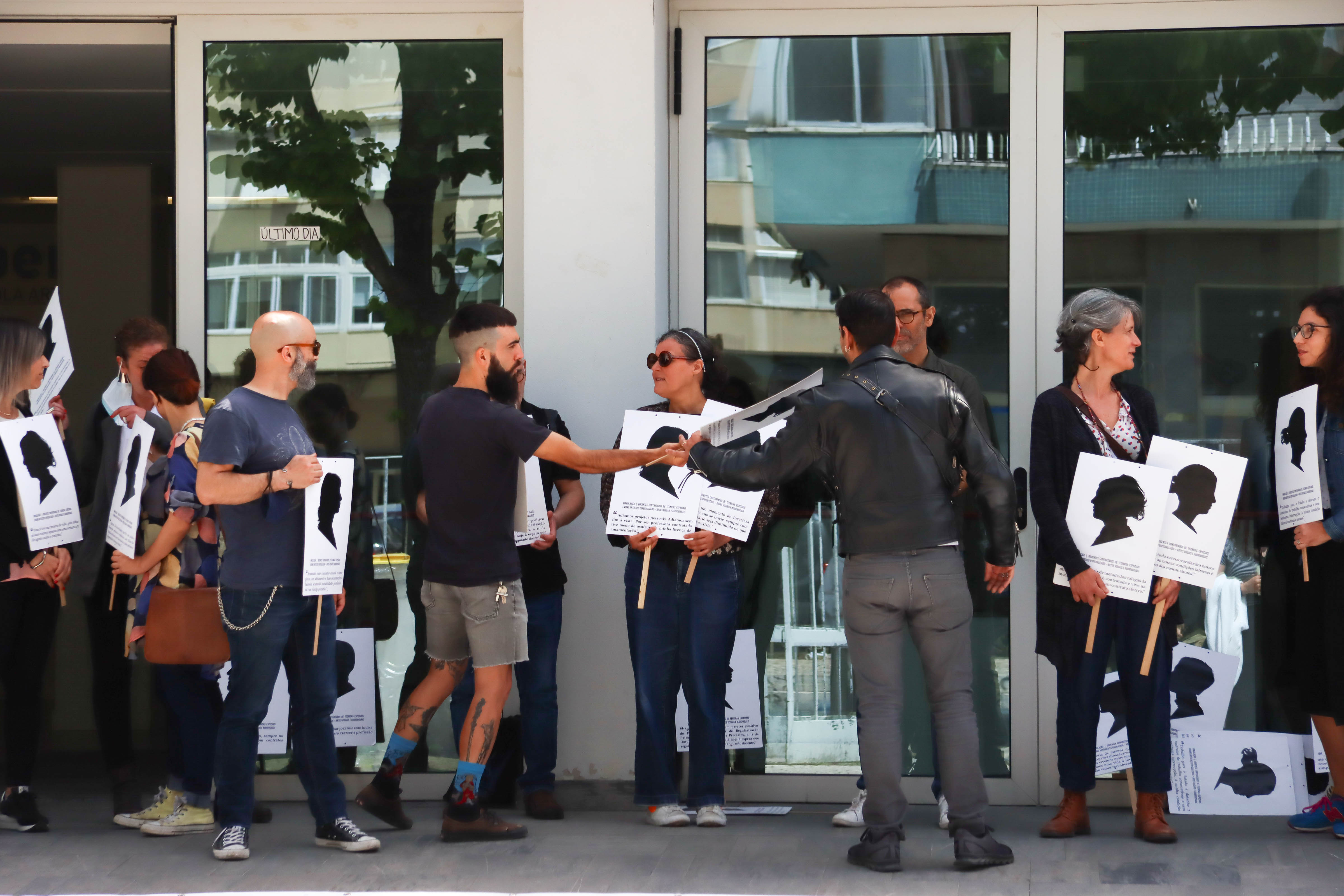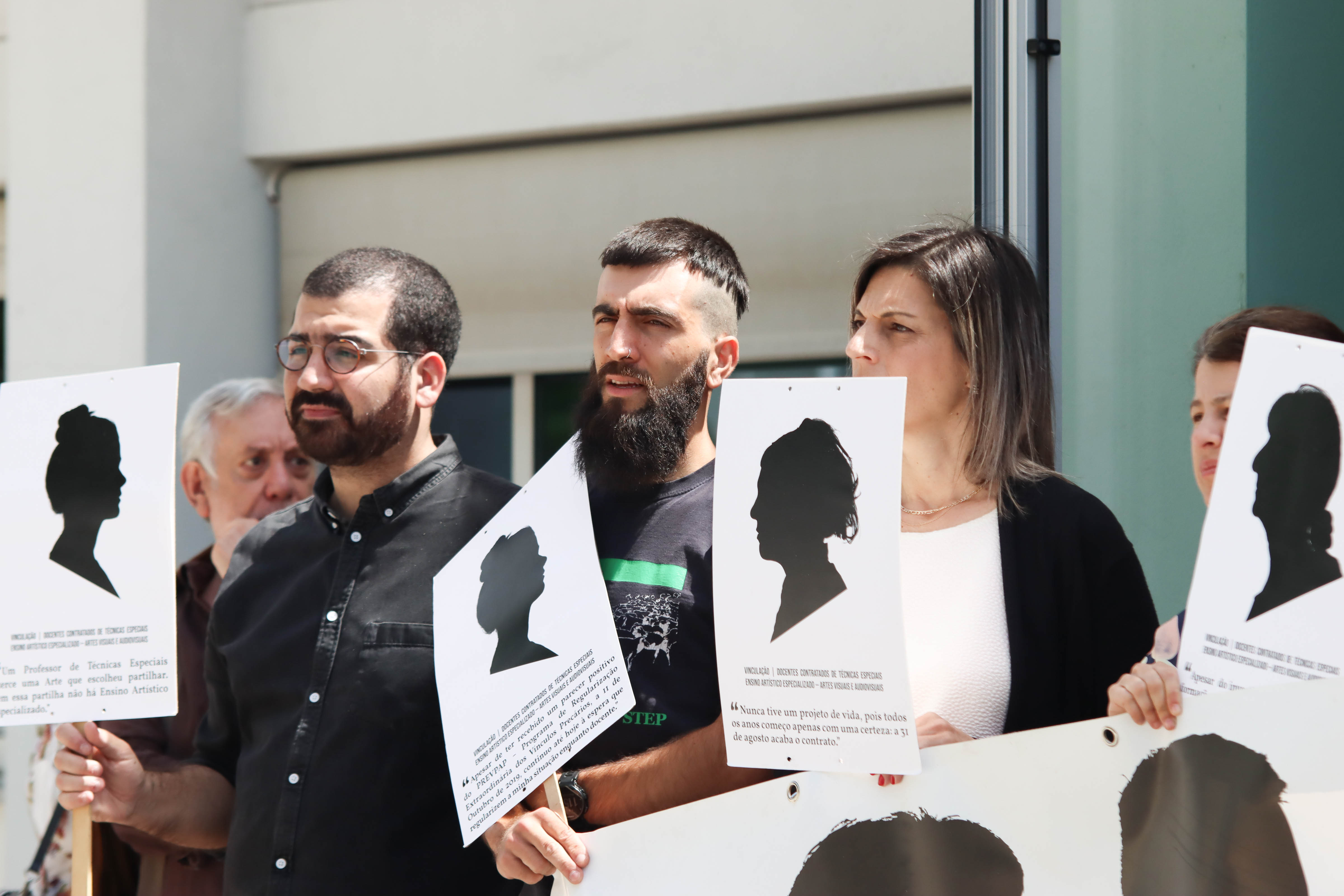 Os docentes das Escolas Artísticas António Arroio (Lisboa) e Soares dos Reis (Porto) concentraram-se em frente às suas escolas para exigir ao governo que cumpra a Lei 46/2021 que permite acabar com a sua situação de precariedade.