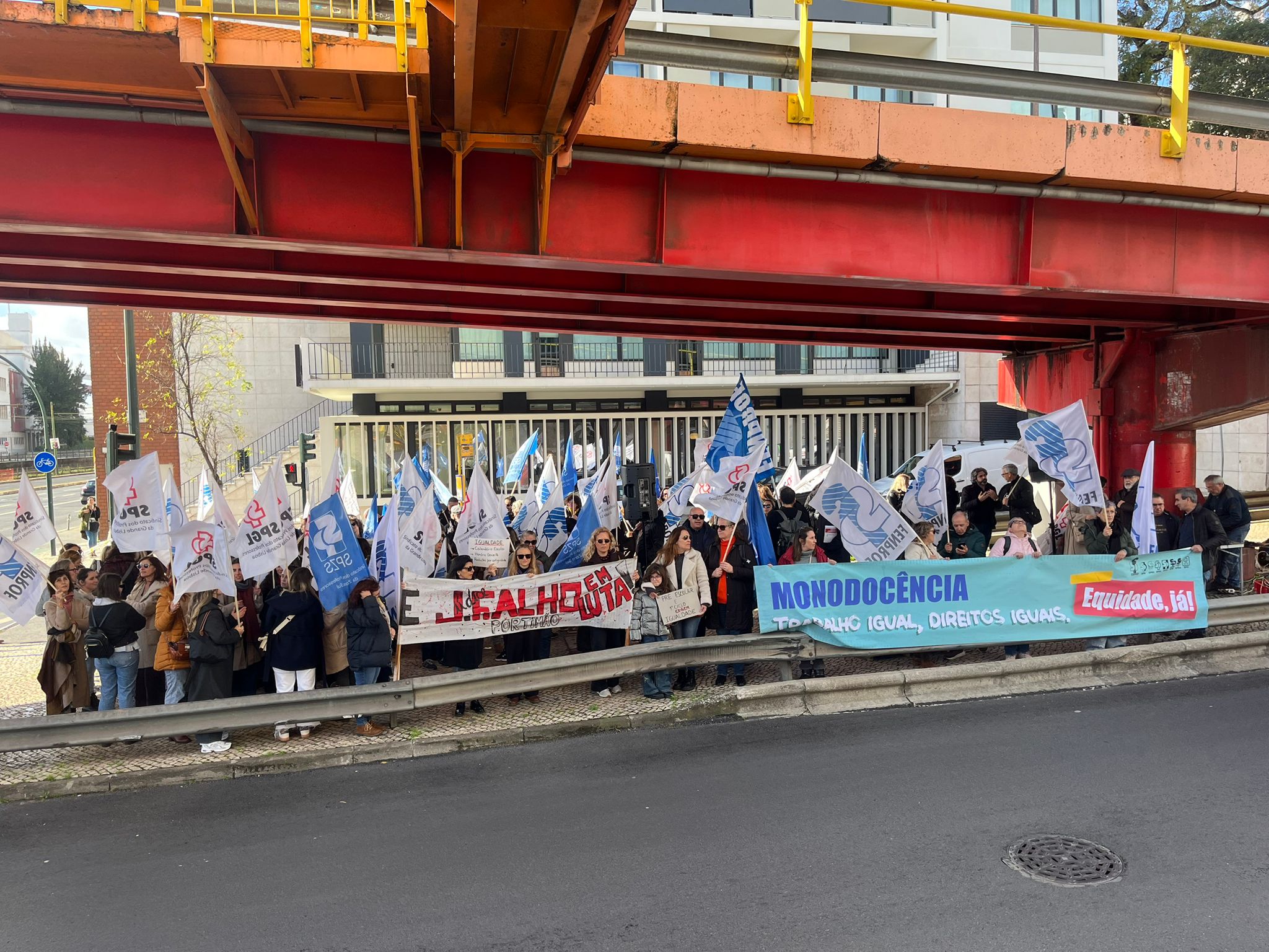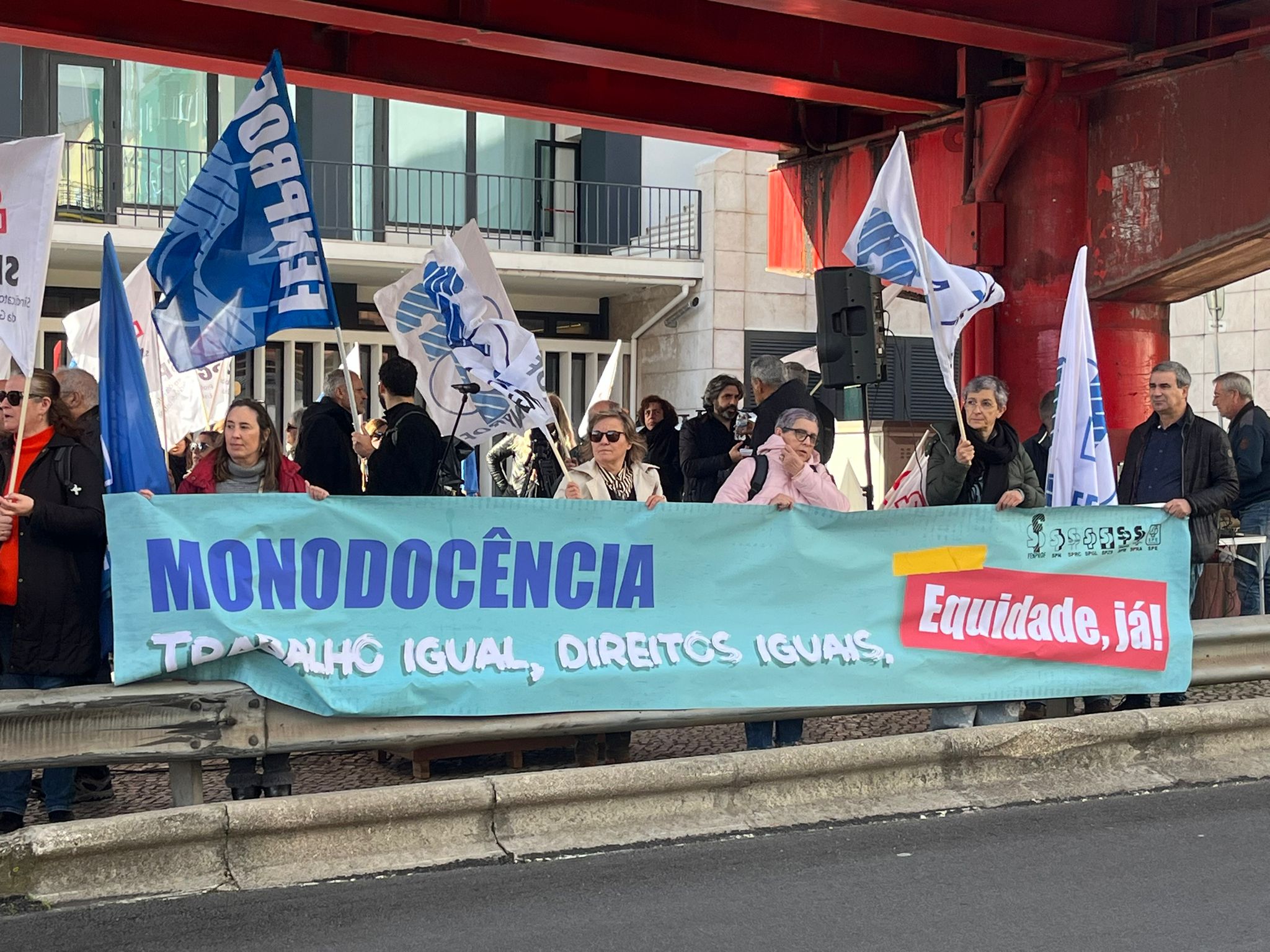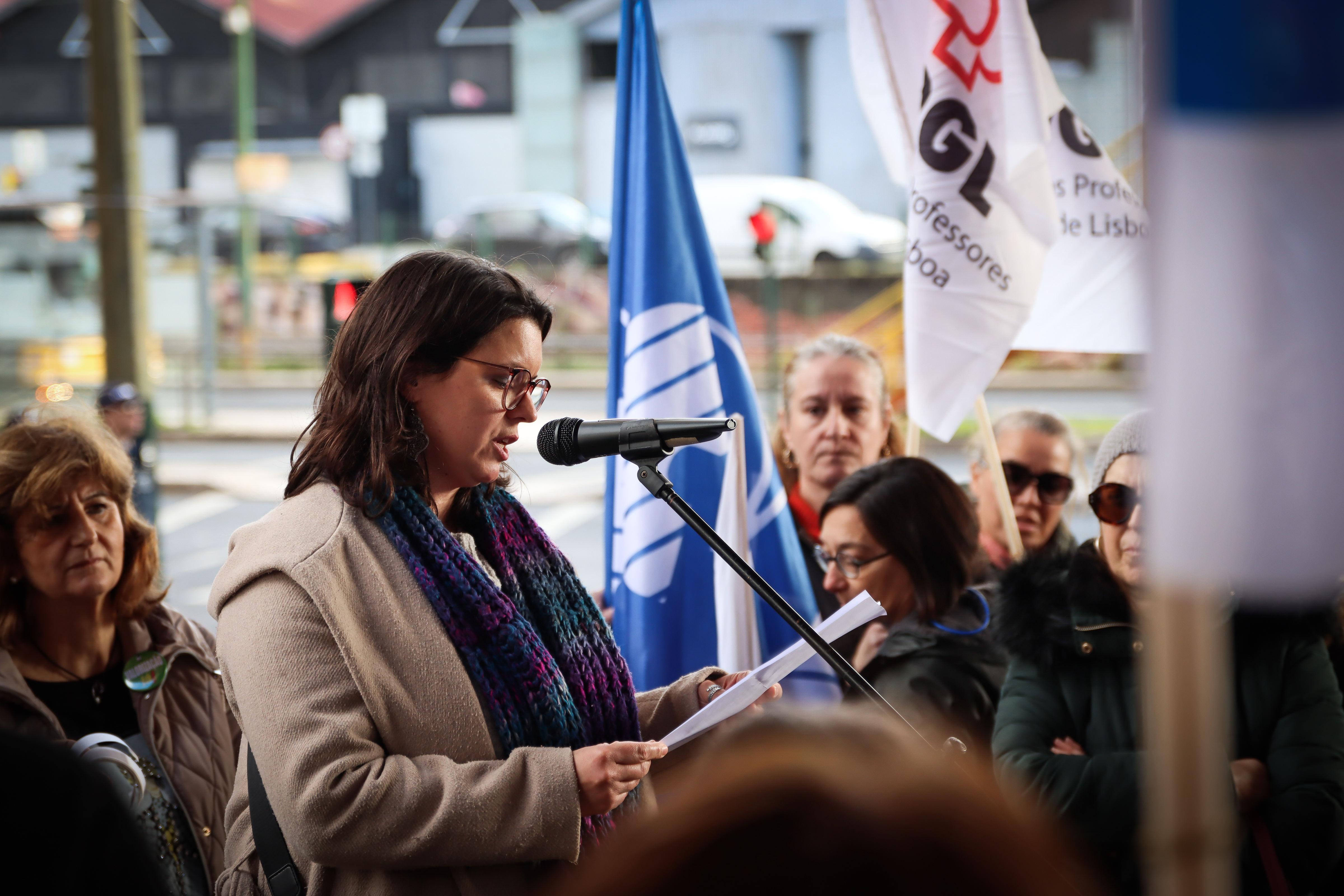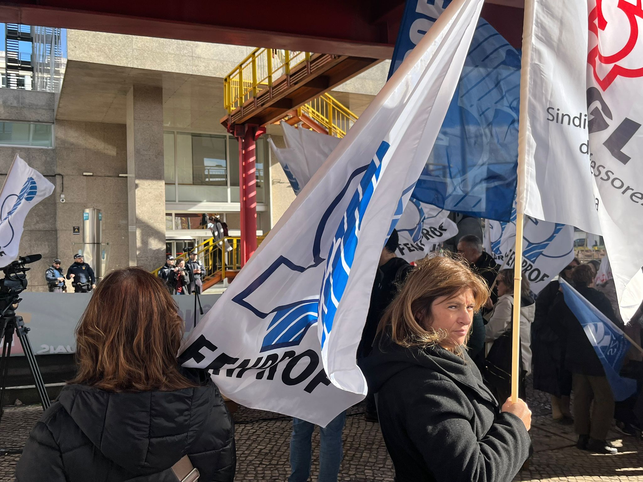 As coordenadoras do 1.º Ciclo do Ensino Básico, Cátia Domingues, e da Educação Pré-Escolar, Catarina Teixeira, lembraram as principais reivindicações dos docentes destes dois setores de ensino, antes de se dirigirem ao MECI para entregarem o abaixo-assinado “Por melhores condições de trabalho”, subscrito por mais de 16 000 docentes, bem como a Carta Reivindicativa da Monodocência, documento que sistematiza as principais exigências destes docentes, confrontados há demasiado tempo com uma crescente intensificação do trabalho, responsabilidades acrescidas e a ausência de respostas adequadas por parte da tutela.