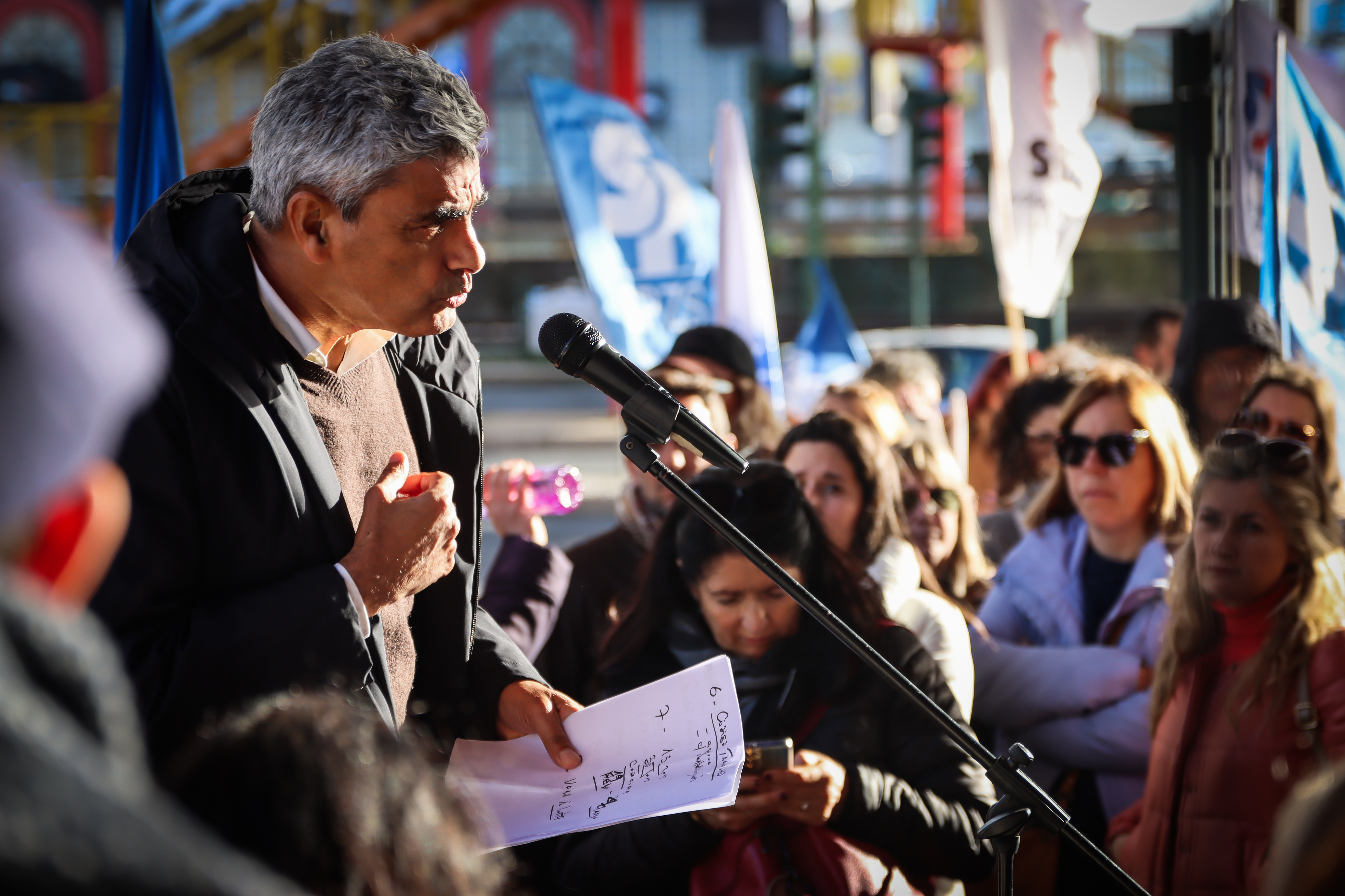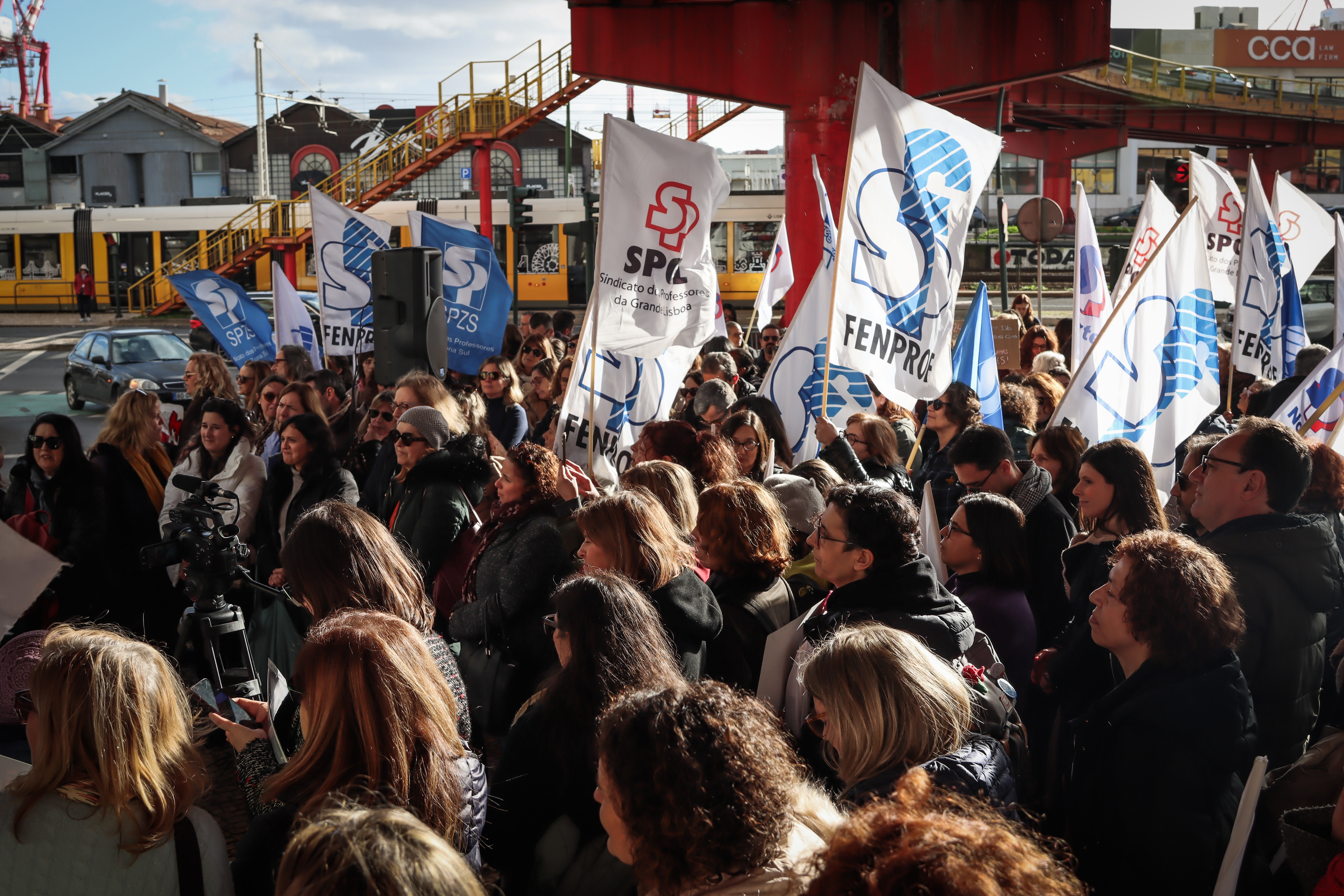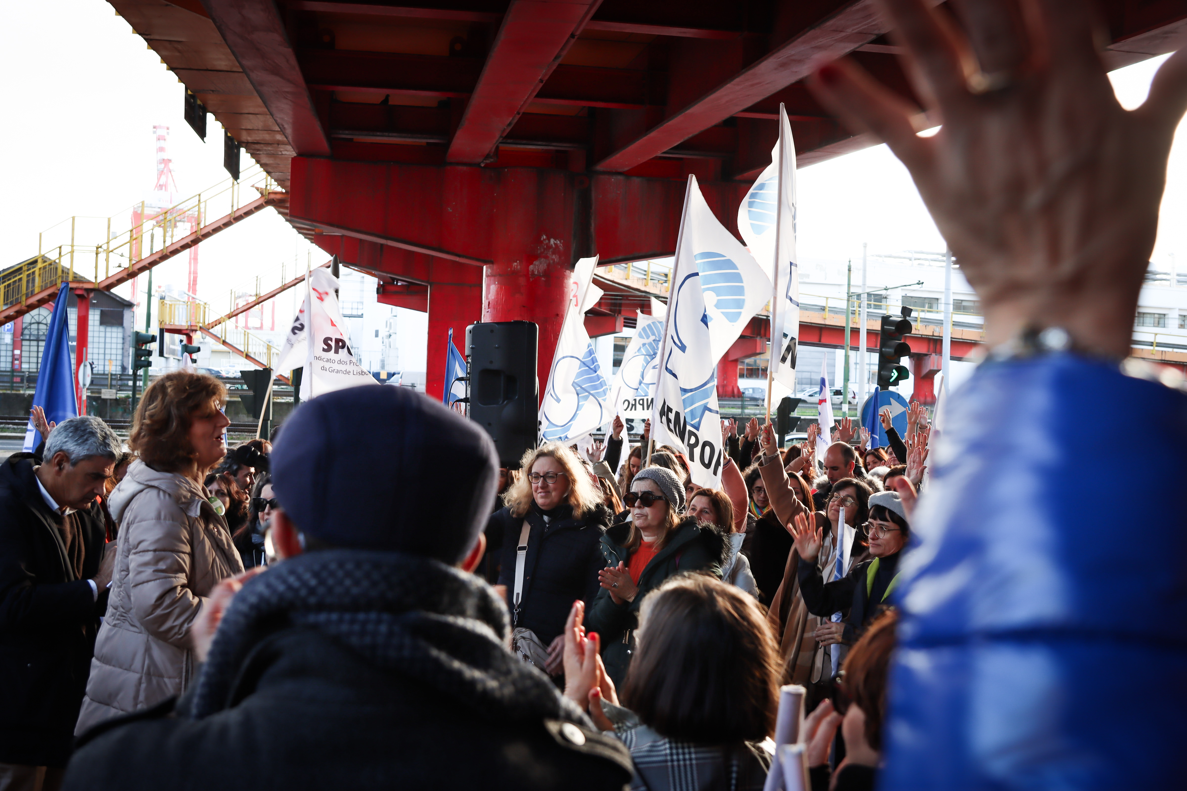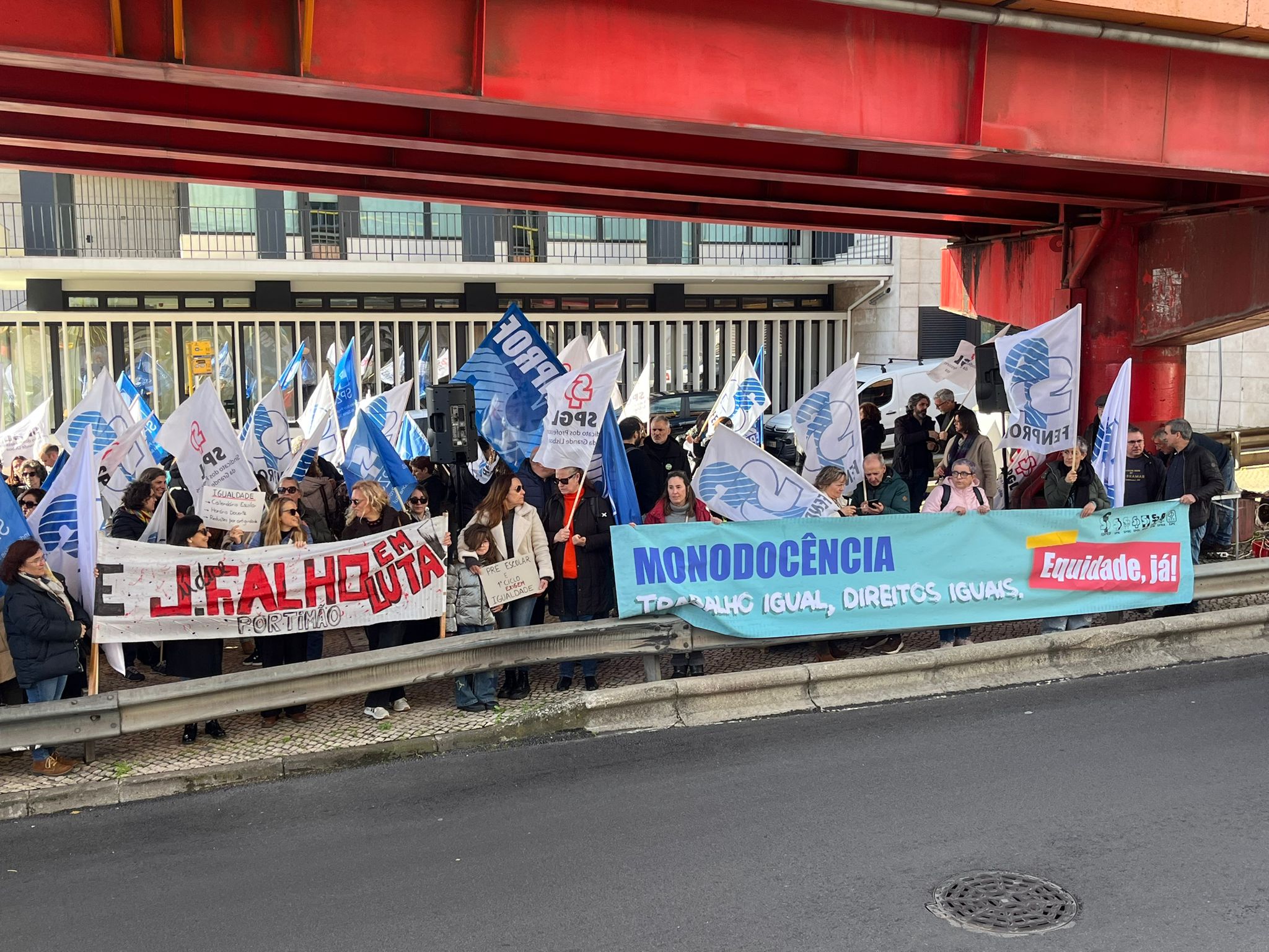 As coordenadoras do 1.º Ciclo do Ensino Básico, Cátia Domingues, e da Educação Pré-Escolar, Catarina Teixeira, lembraram as principais reivindicações dos docentes destes dois setores de ensino, antes de se dirigirem ao MECI para entregarem o abaixo-assinado “Por melhores condições de trabalho”, subscrito por mais de 16 000 docentes, bem como a Carta Reivindicativa da Monodocência, documento que sistematiza as principais exigências destes docentes, confrontados há demasiado tempo com uma crescente intensificação do trabalho, responsabilidades acrescidas e a ausência de respostas adequadas por parte da tutela.