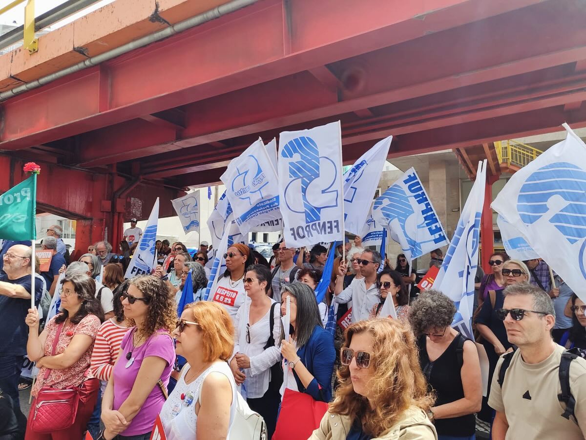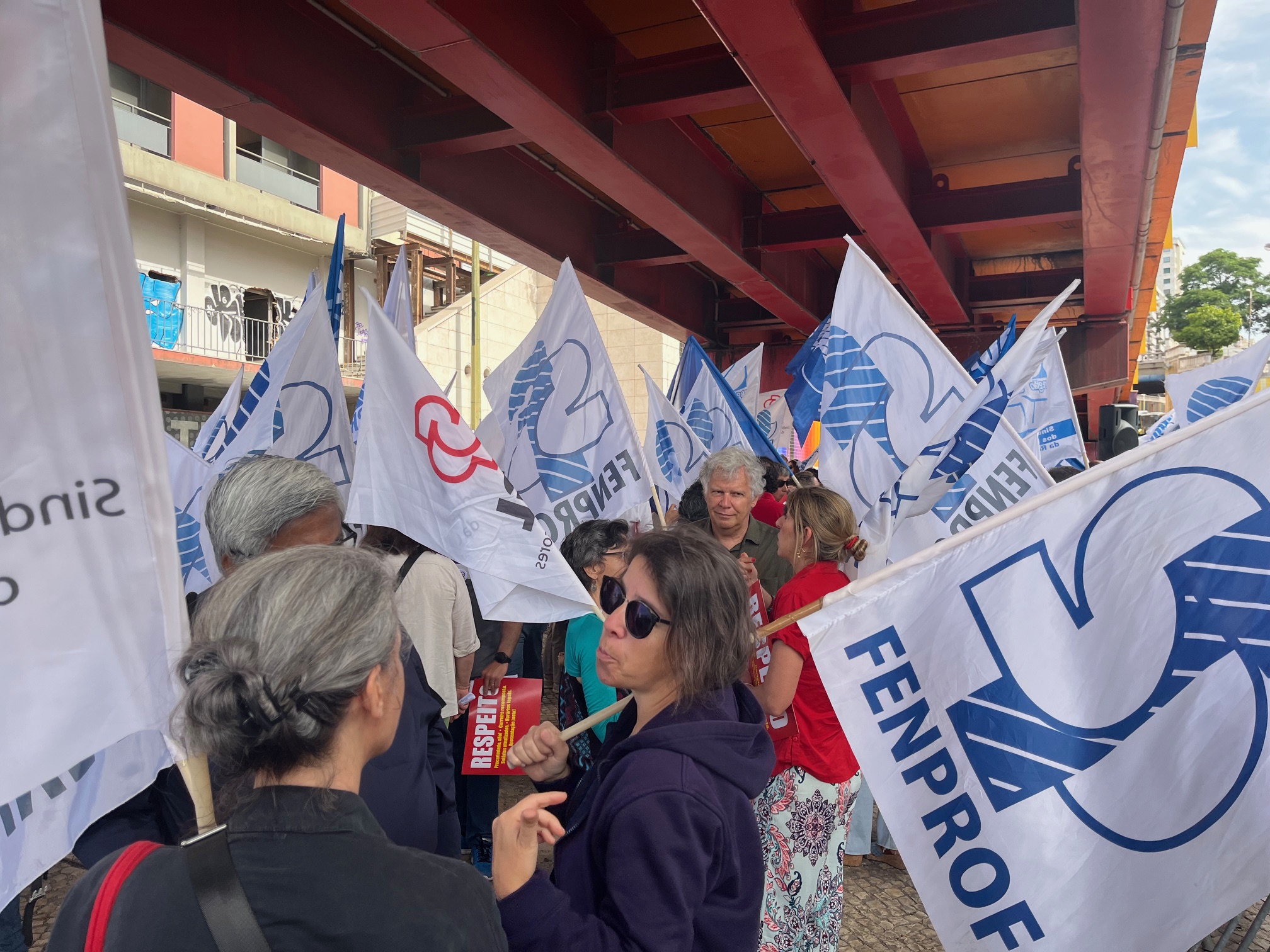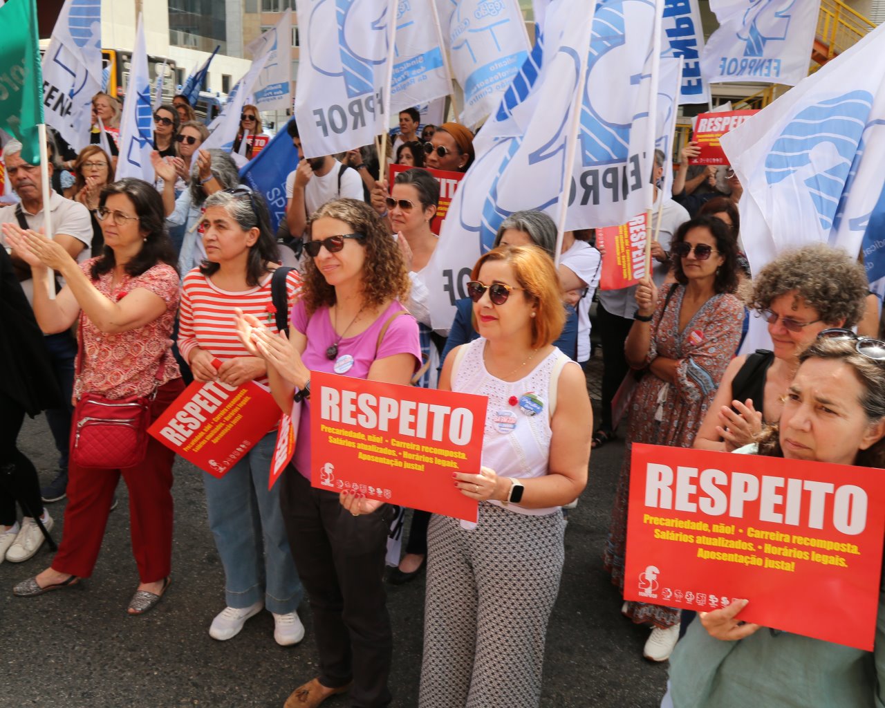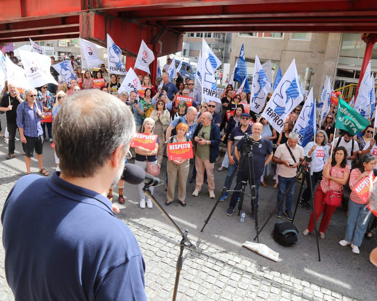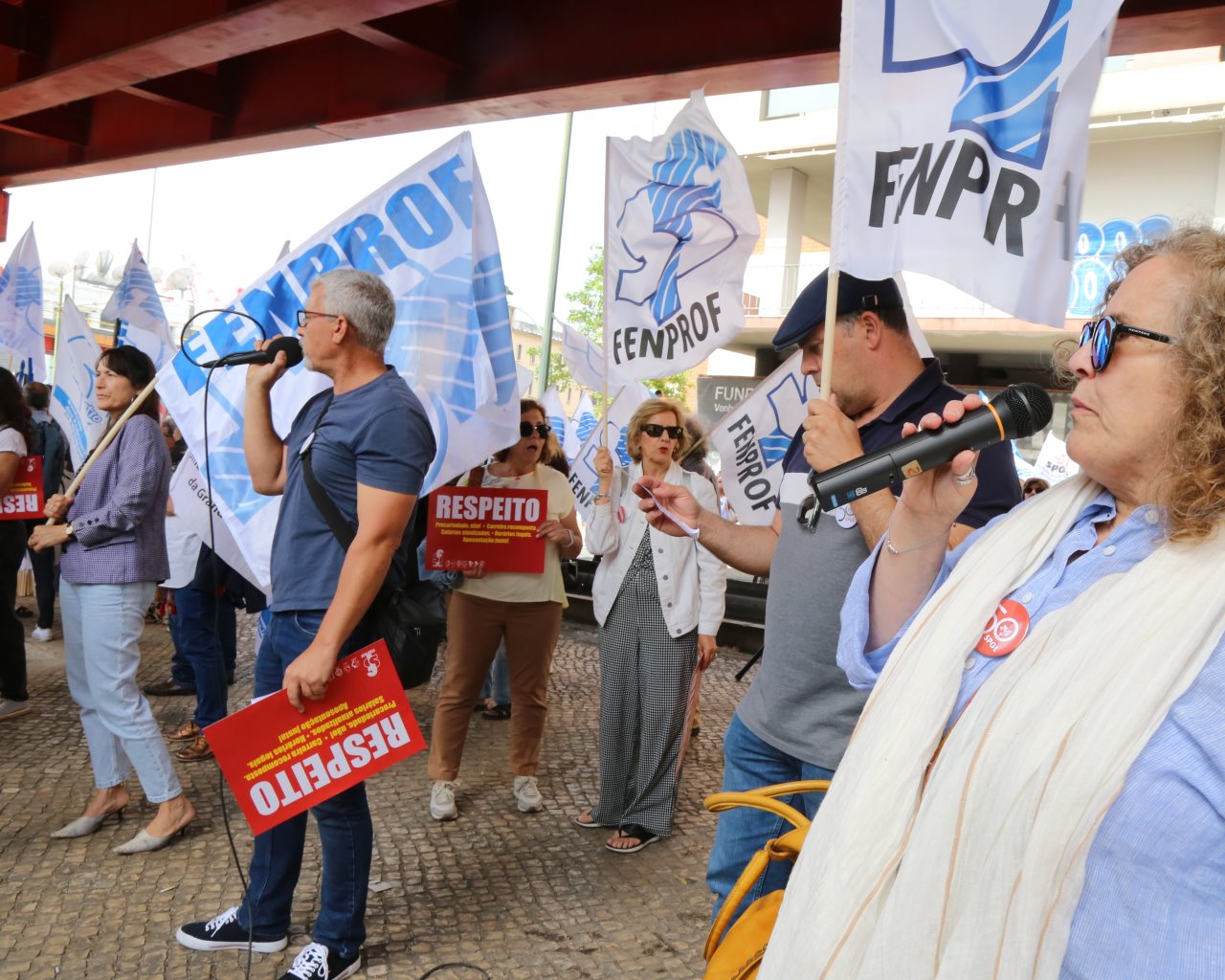 Cumprindo o seu compromisso com o esclarecimento dos professores e educadores sobre o sucedido nas reuniões de negociação com o MECI, a FENPROF realizou um plenário sindical imediatamente após a reunião de negociação suplementar do processo de recuperação do tempo de serviço dos professores e educadores e ainda em frente às instalações do MECI.